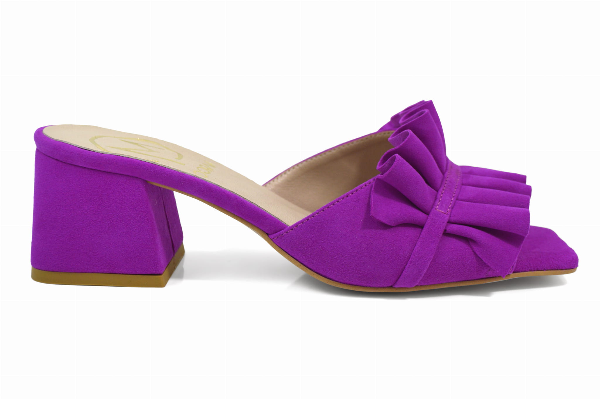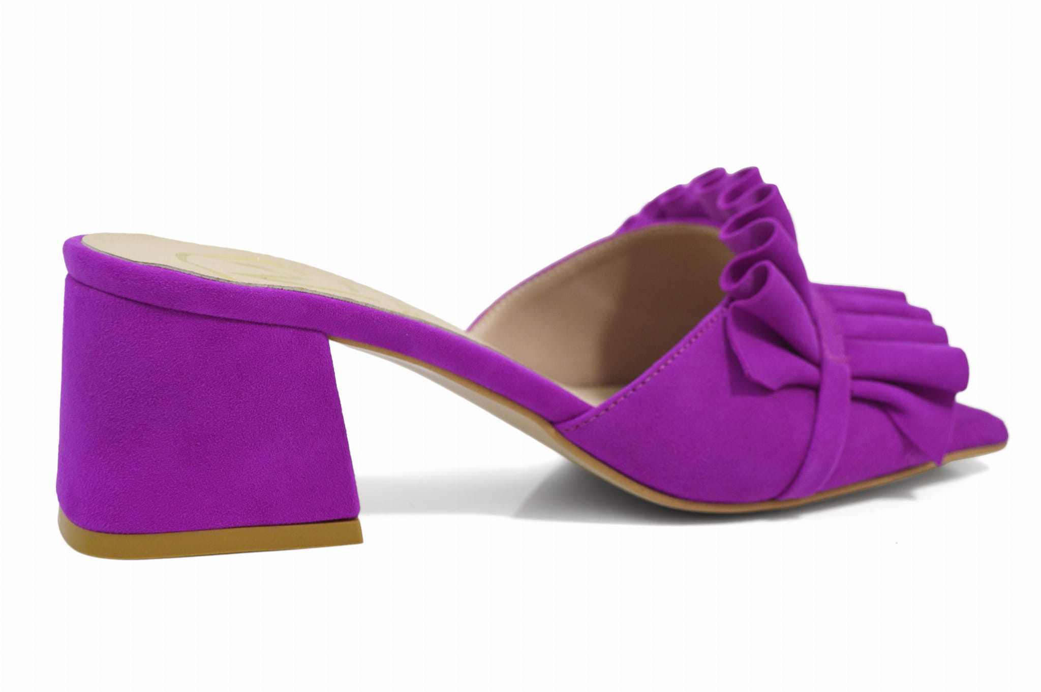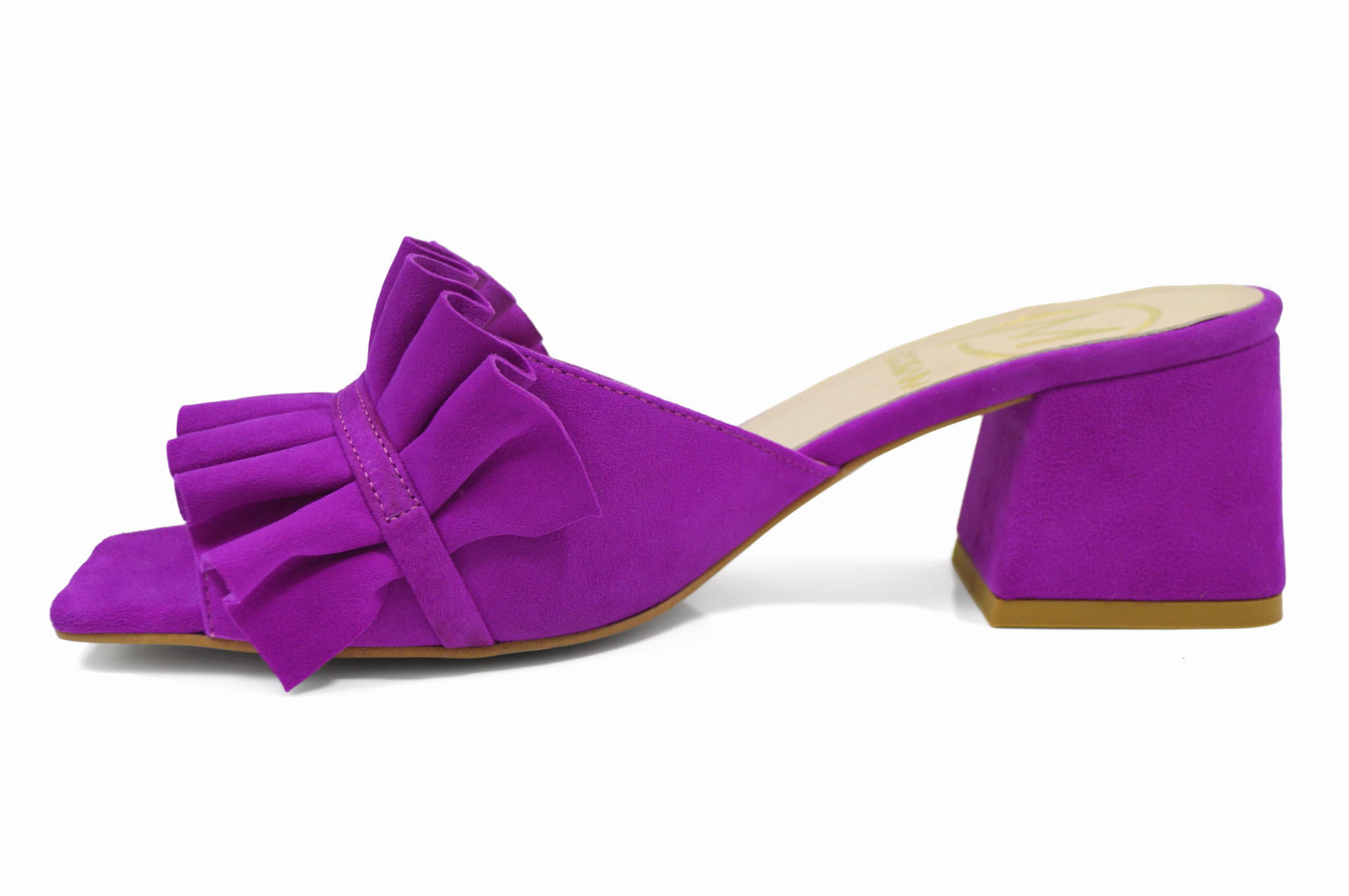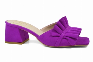 Amarantowe fuksja klapki zamszowe z ozdobą obcas klocek