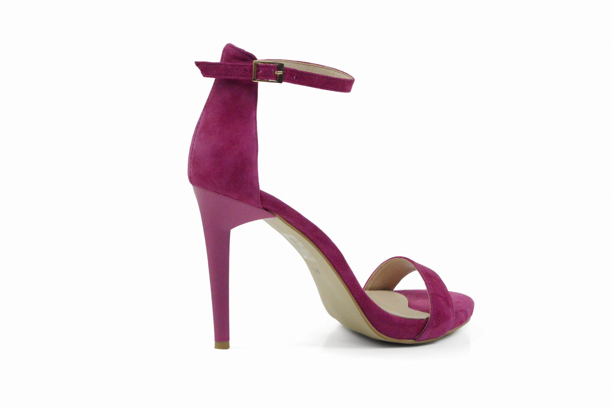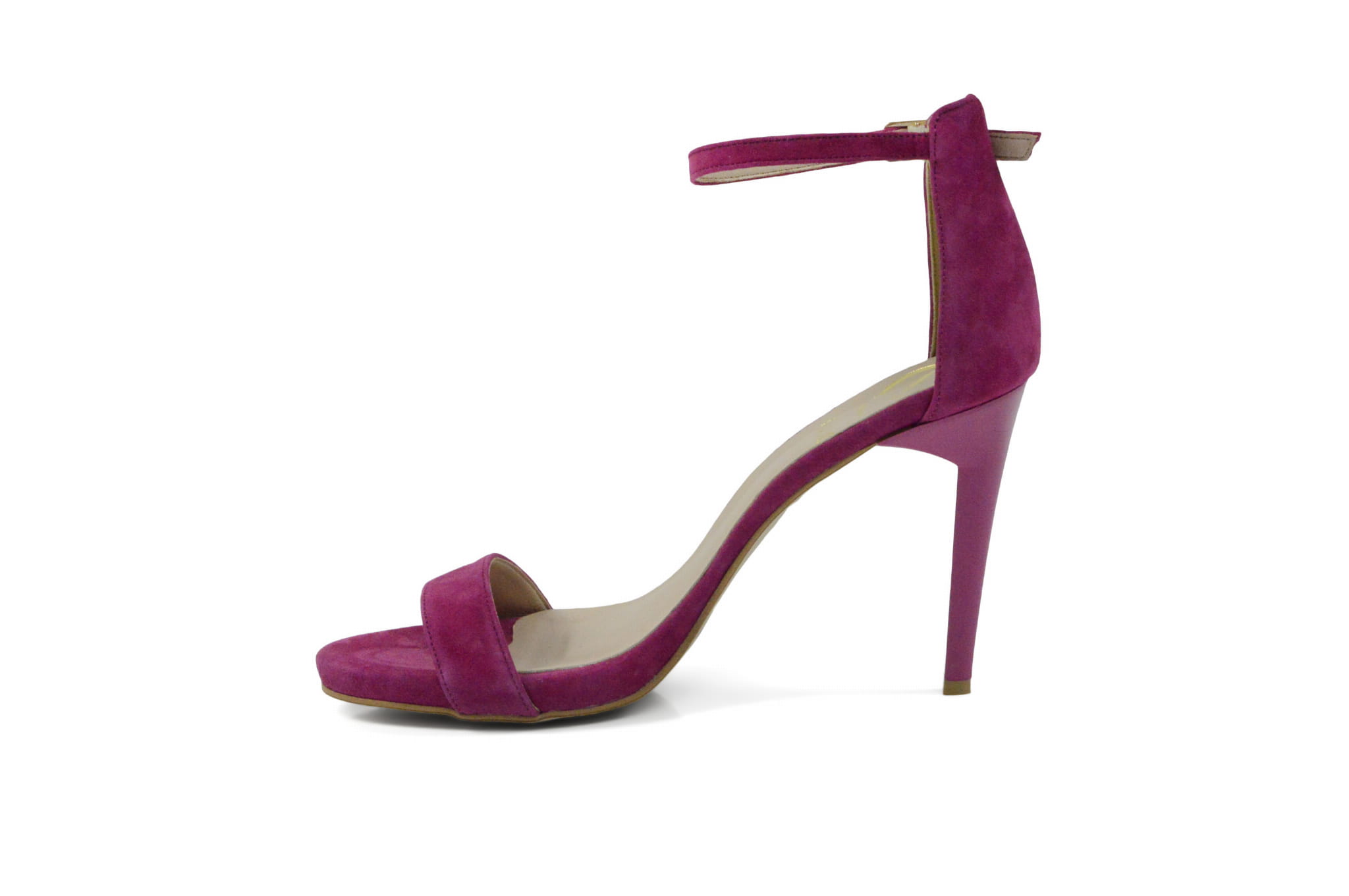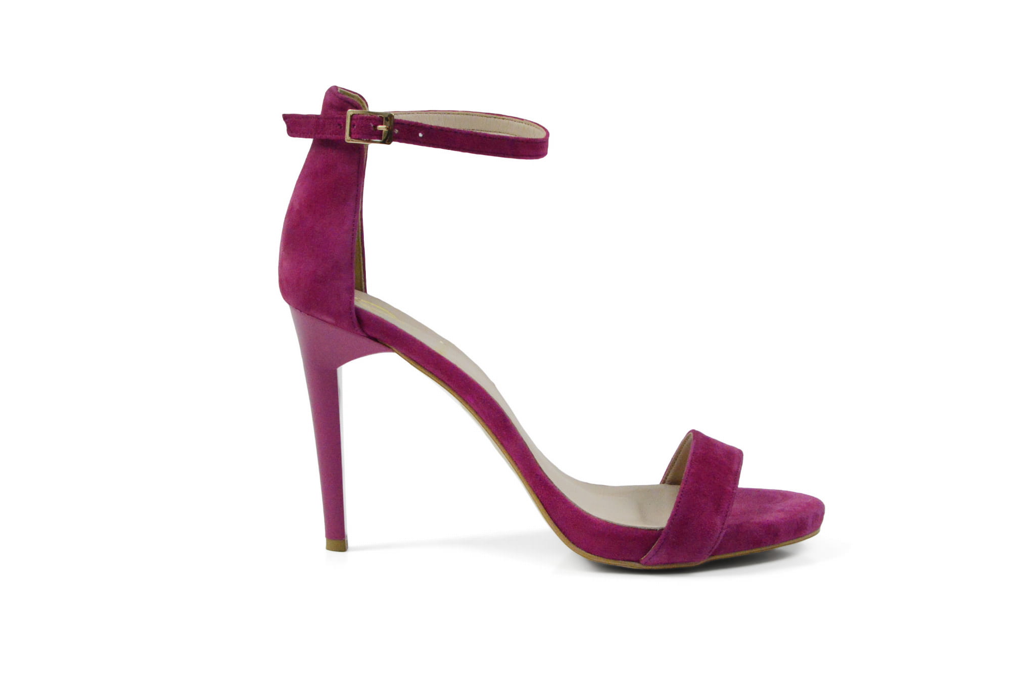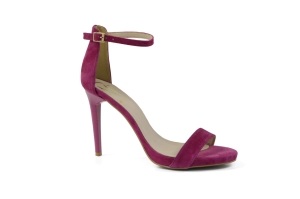 Amarantowe skórzane sandałki damskie polskiej marki MargoShoes, wykonane na smukłym obcasie typu: szpilka. Sandały posiadają delikatne podwyższenie na platformie. Zapinane wokół kostki klamerką