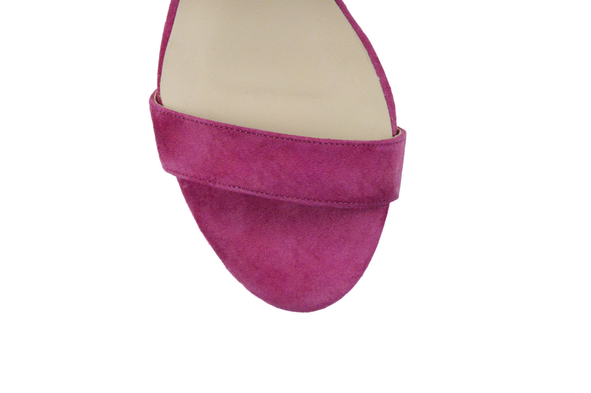 Amarantowe fuksja sandałki na szpilce delikatnej platformie zapinane wokół kostki skóra naturalna zamsz