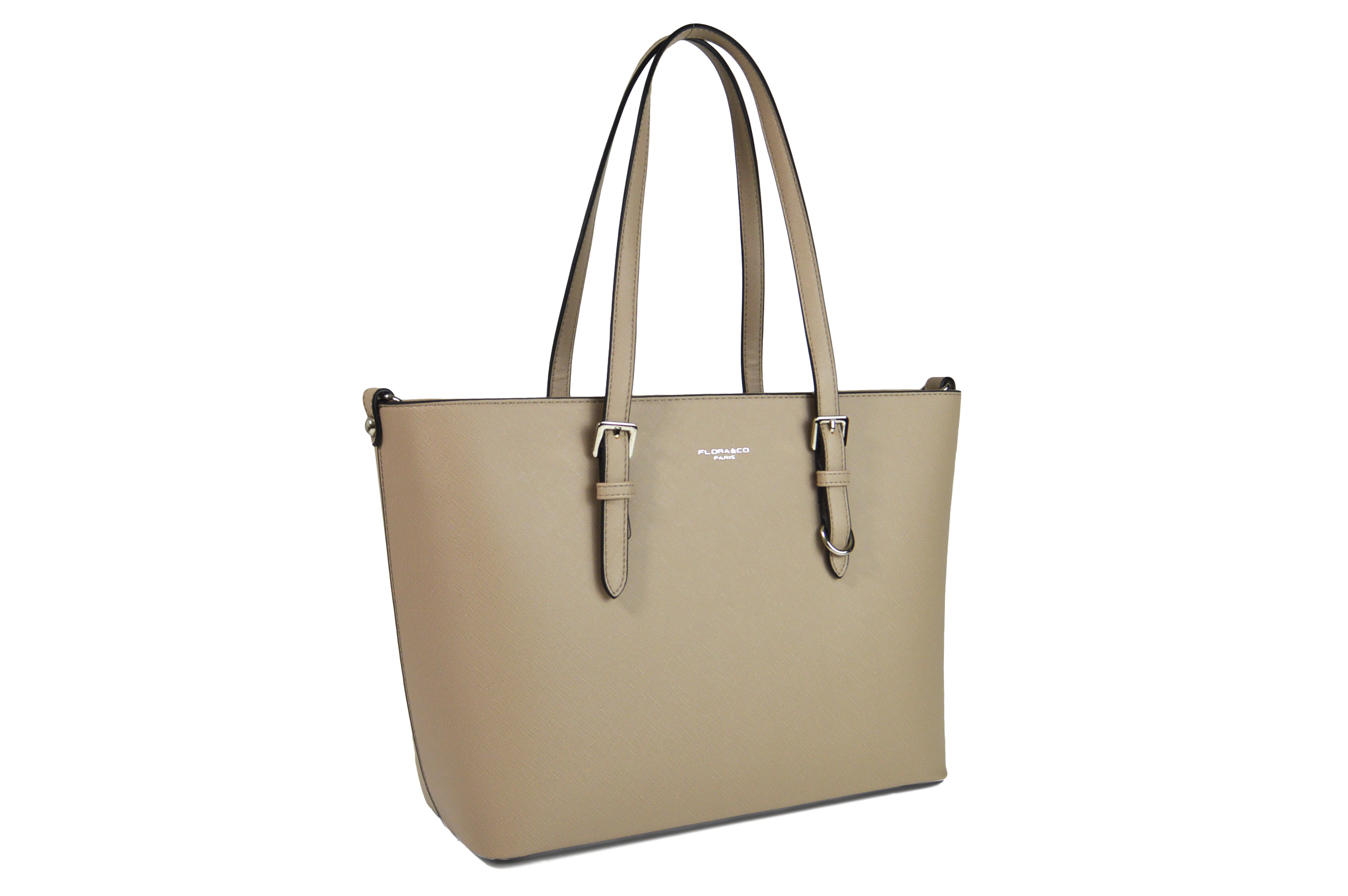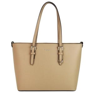 Beżowa duża torebka shopper bag ze srebrnymi okuciami