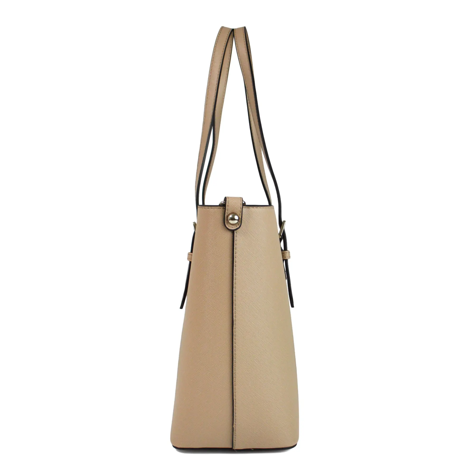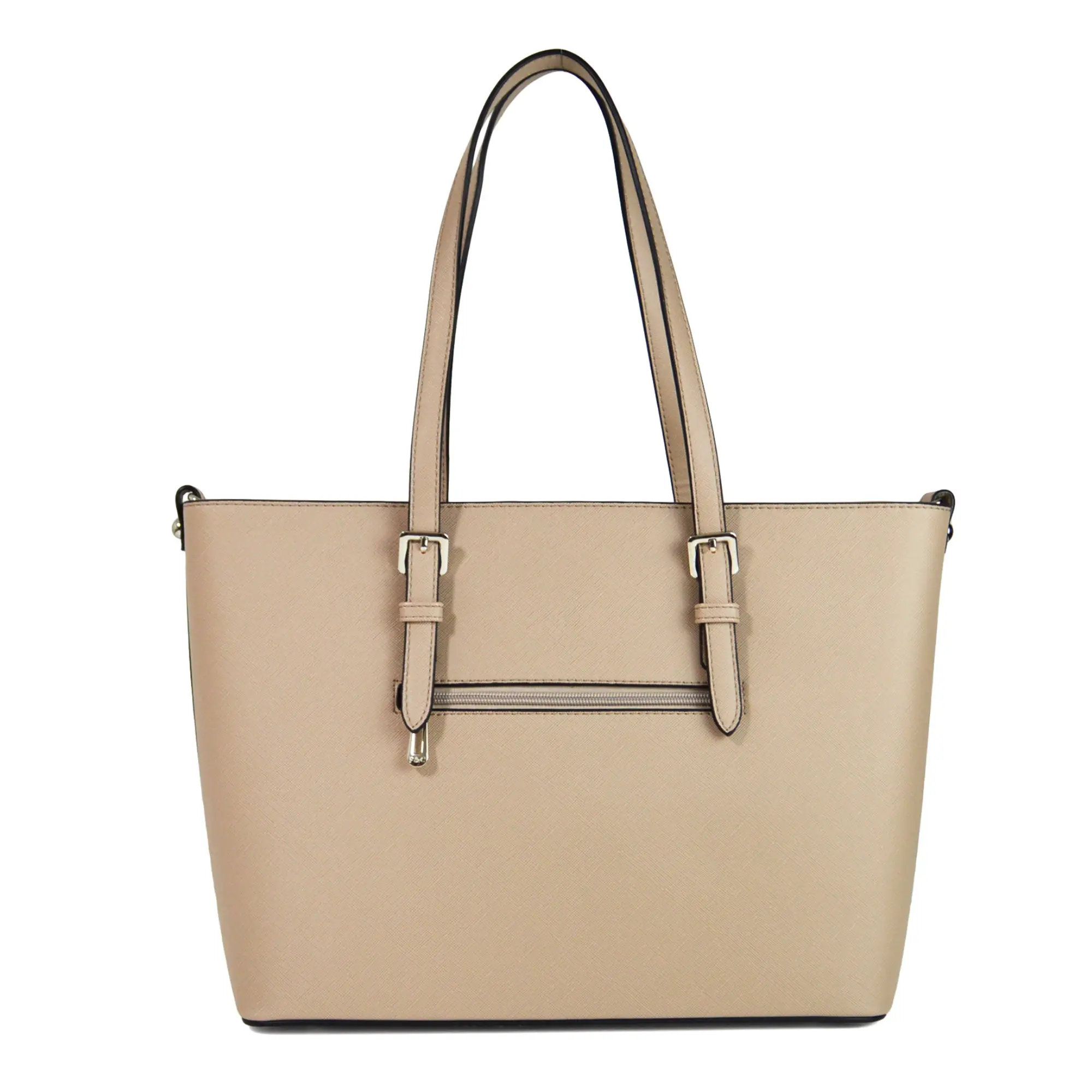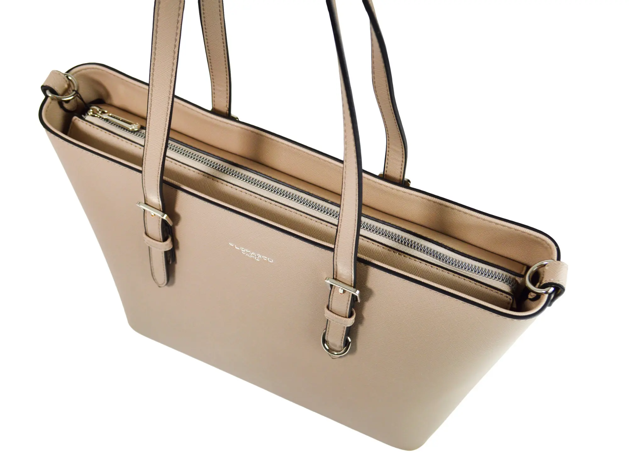 Odkryj prawdziwą kwintesencję elegancji w naszej beżowej dużej torebce ze srebrnymi okuciami. Stworzona z wysokiej jakości materiałów, ta torebka łączy w sobie doskonałe wykonanie z funkcjonalnością. Jej delikatny beżowy kolor nadaje jej uniwersalnego charakteru, który pasuje do każdej okazji i stylizacji. Srebrne okucia dodają subtelnego blasku, podkreślając wyjątkowy design tego dodatku. Wyposażona w dwie komory, oddzielną kieszeń na zamek oraz dodatkowe kieszonki zarówno z przodu, jak i wewnątrz, ta torebka umożliwia skuteczną organizację Twoich osobistych przedmiotów. Regulowany szeroki pasek w kolorze torebki zapewnia wygodne noszenie, dostosowane do Twoich preferencji. Z wymiarami 27 cm wysokości, 40 cm szerokości i 14 cm głębokości, jest idealnym rozwiązaniem na co dzień, niezależnie od okoliczności. Dla kobiet ceniących styl i funkcjonalność, nasza beżowa torebka z pewnością spełni wszystkie oczekiwania!