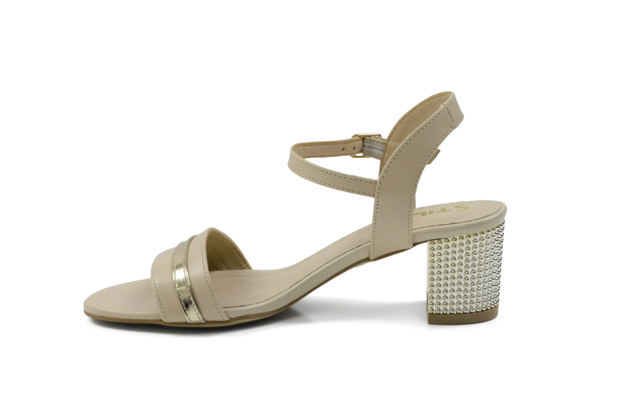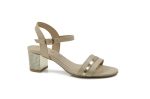 Beżowe sandałki skórzane niski złoty obcas