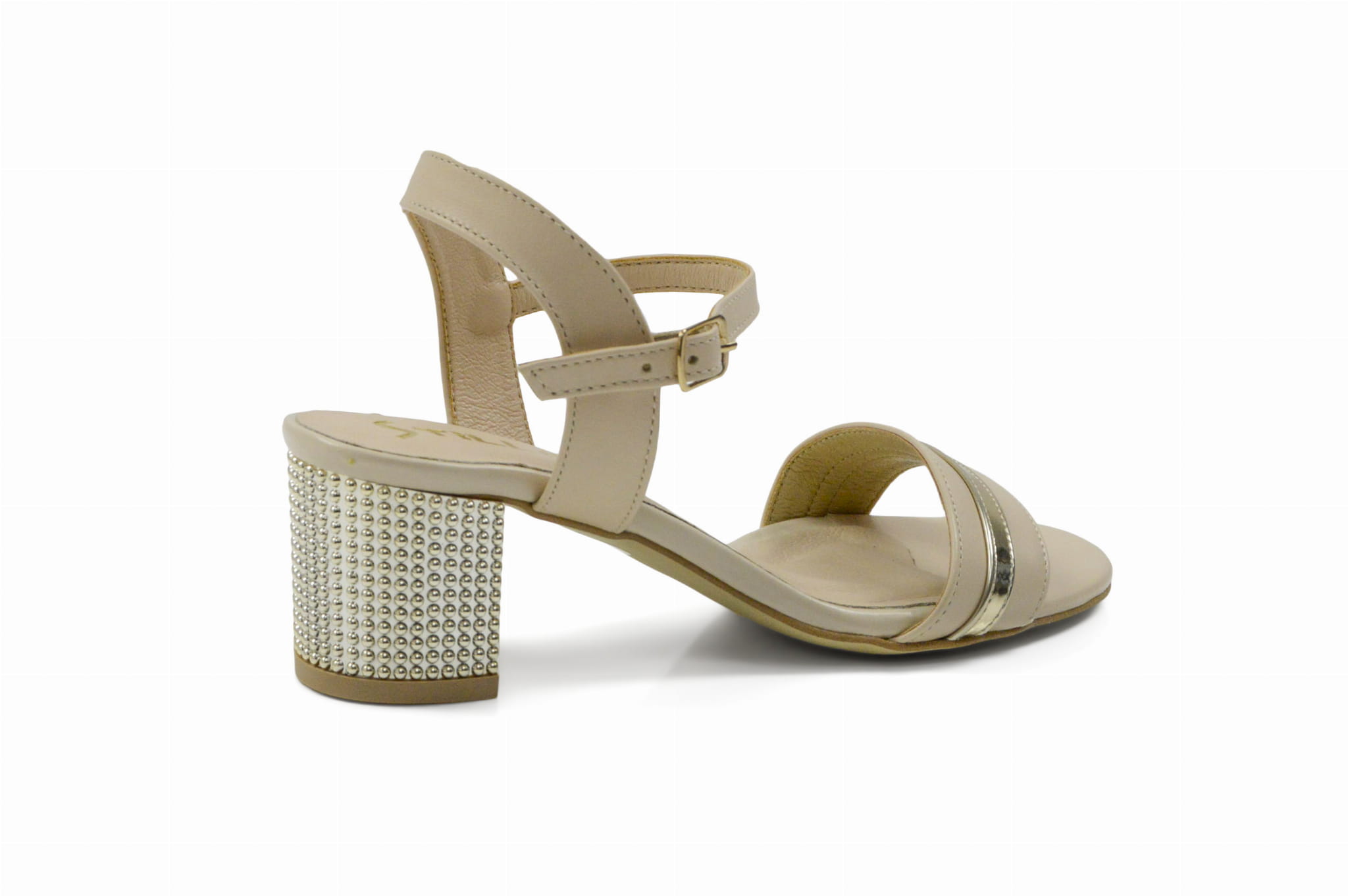 Beżowe sandałki damskie z odkrytą piętą, polskiej marki MargoShoes, wykonane z naturalnej skóry licowej. Sandały na niskim stabilnym obcasie typu klocek w kolorze złotym. Zapinane wokół kostki na klamerkę. Sandałki w kolorze beżowym to świetne rozwiązanie dla Pań, które cenią sobie elegancję! Obuwie tak wygodne i stabilne będzie gustownym dopełnieniem każdej stylizacji! Idealnie sprawdzi się na takie okoliczności jak wesela, chrzty czy komunie.