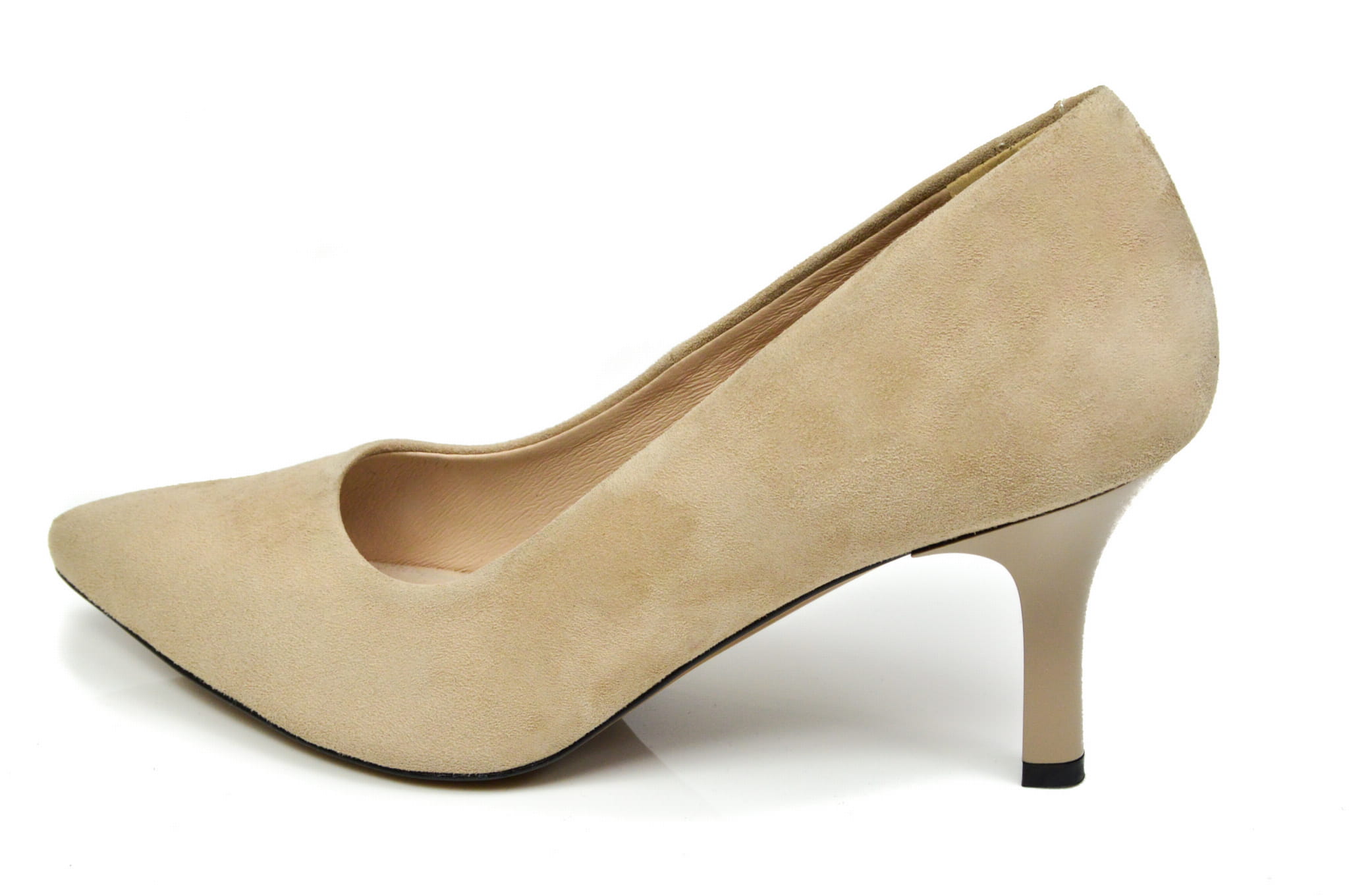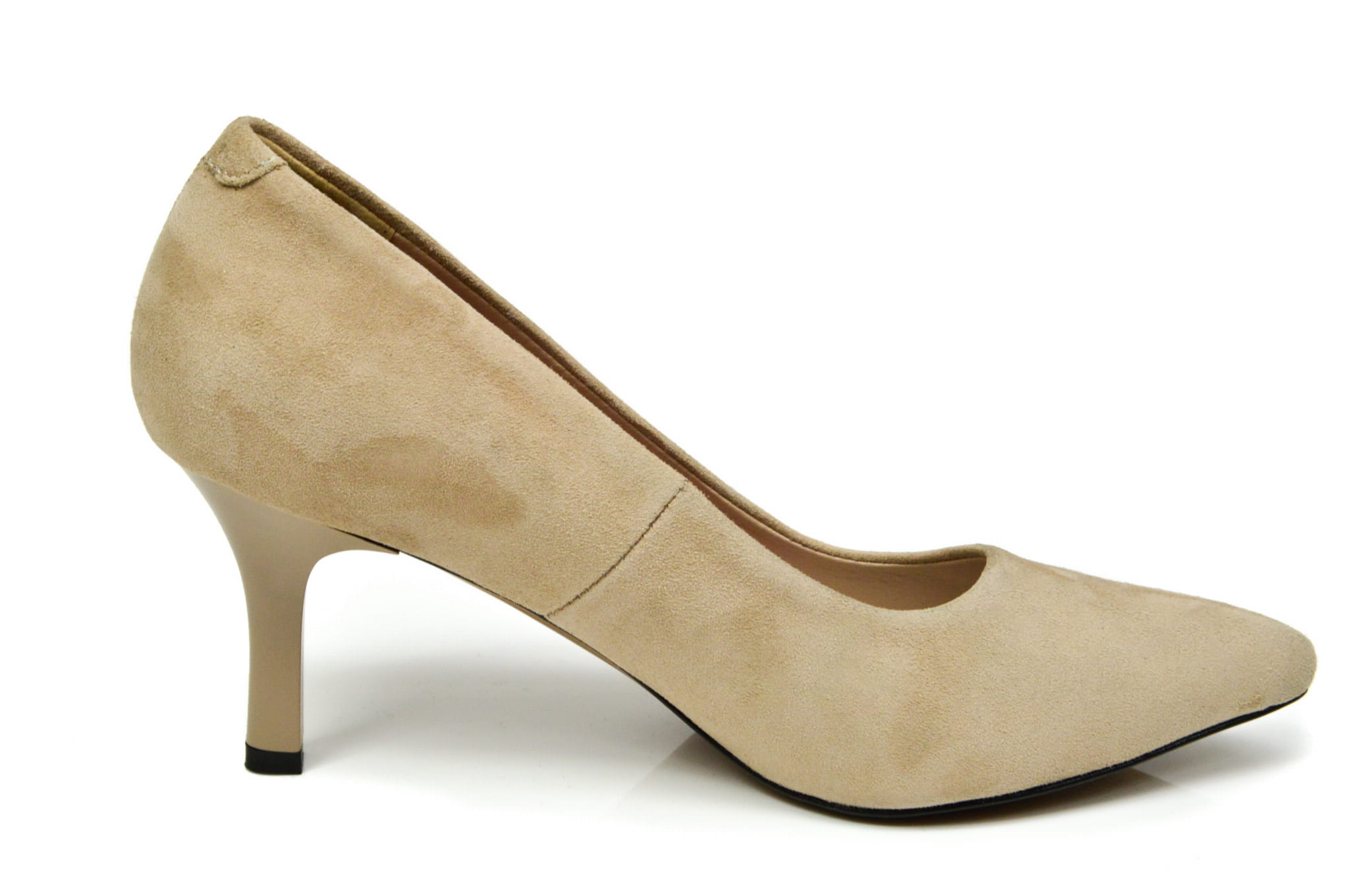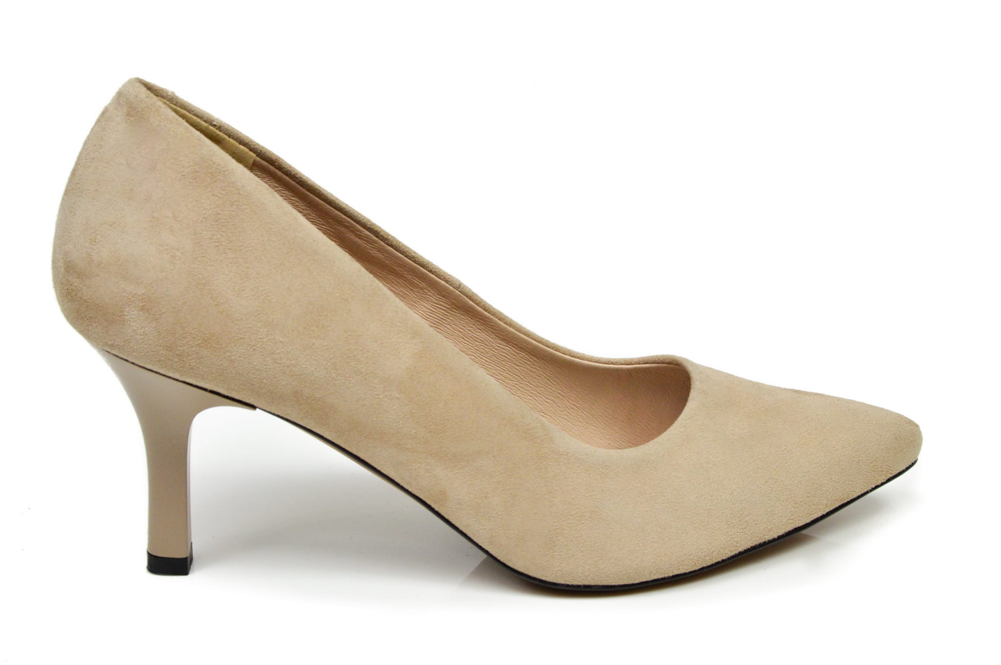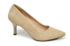 Beżowe szpilki czółenka damskie z zamszowej skóry naturalnej obcas 7 cm