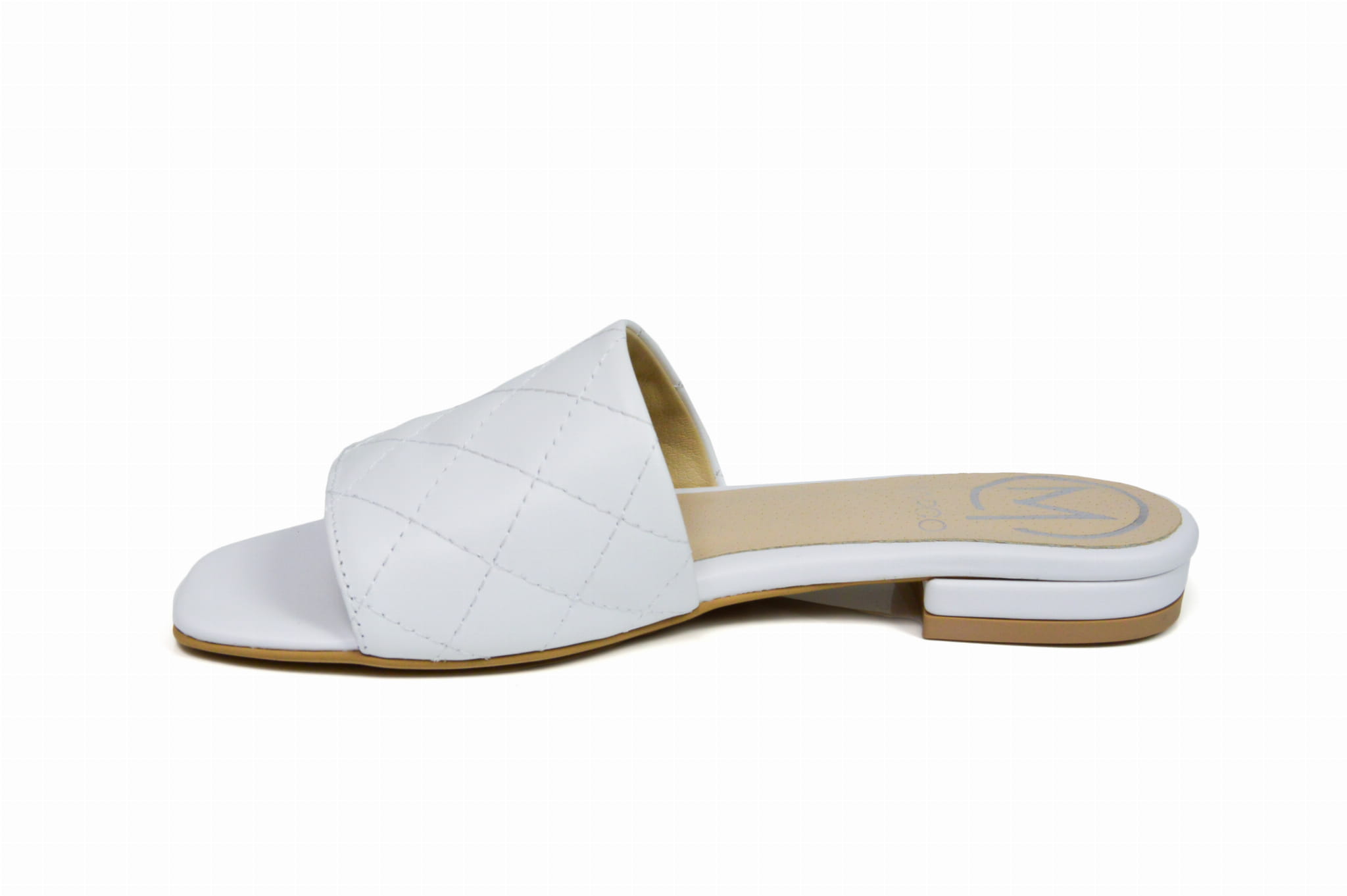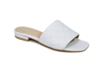 Białe pikowane klapki damskie płaska podeszwa niski obcas - skóra naturalna