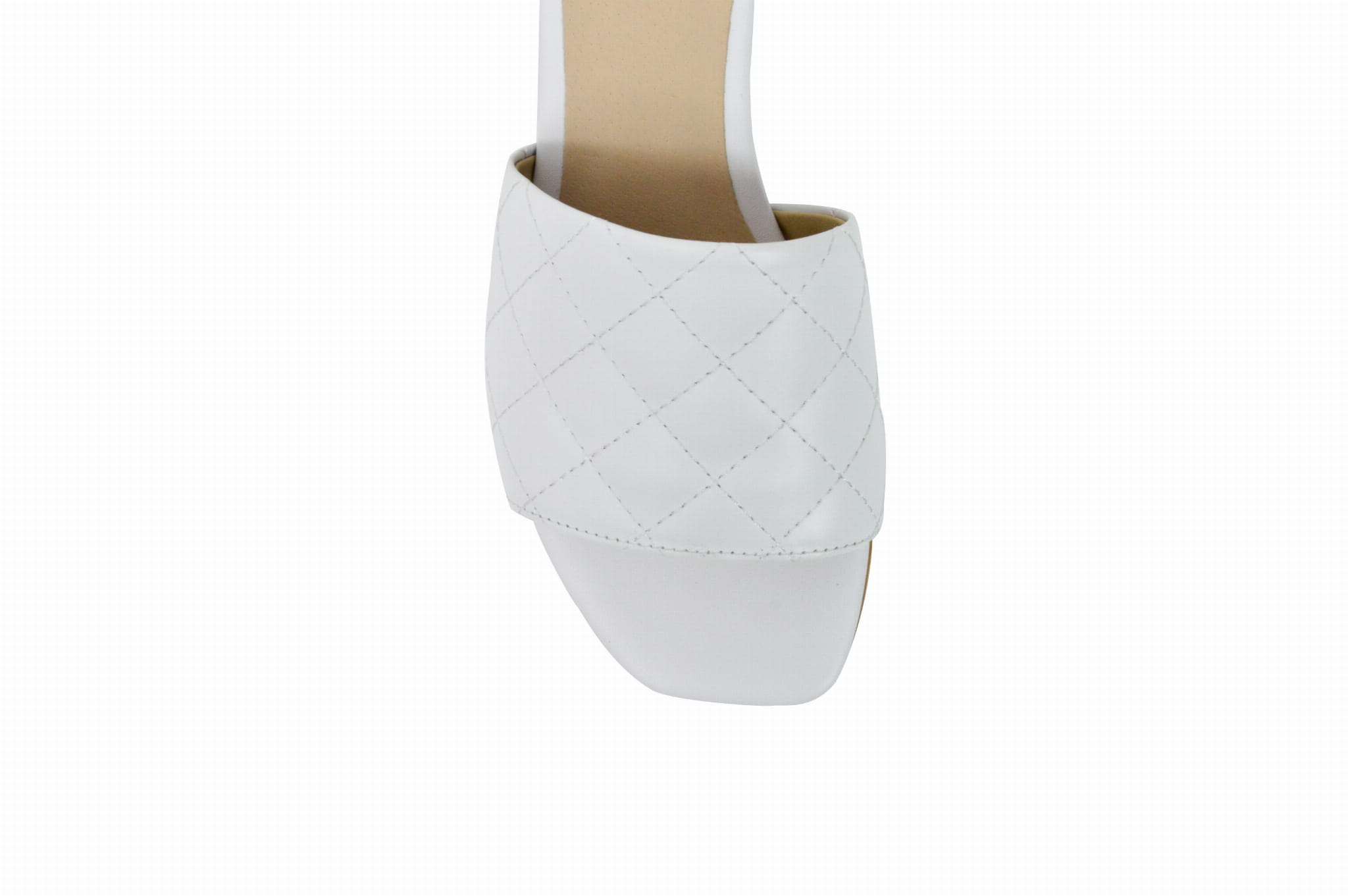 Płaskie klapki z pikowaną cholewką w kolorze białym, na niskim obcasie to świetne rozwiązanie dla Pań, które cenią sobie wygodę.