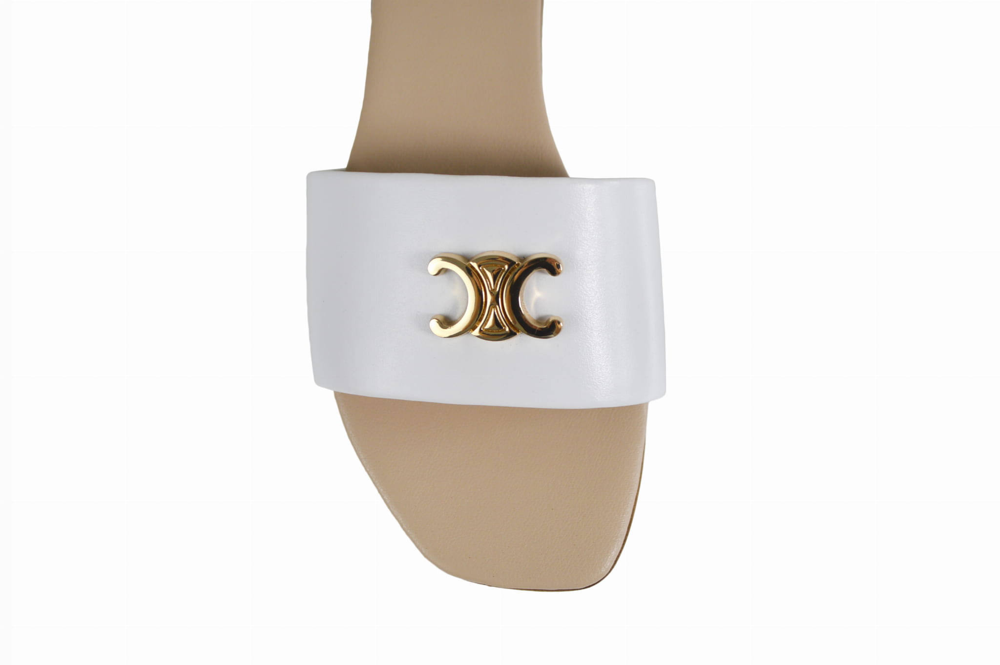 Białe skórzane klapki na platformie z ozdobą