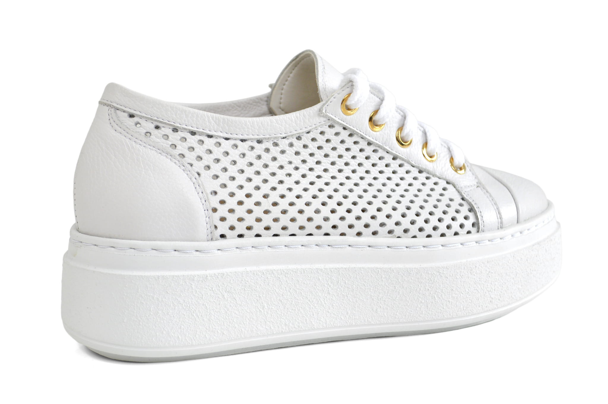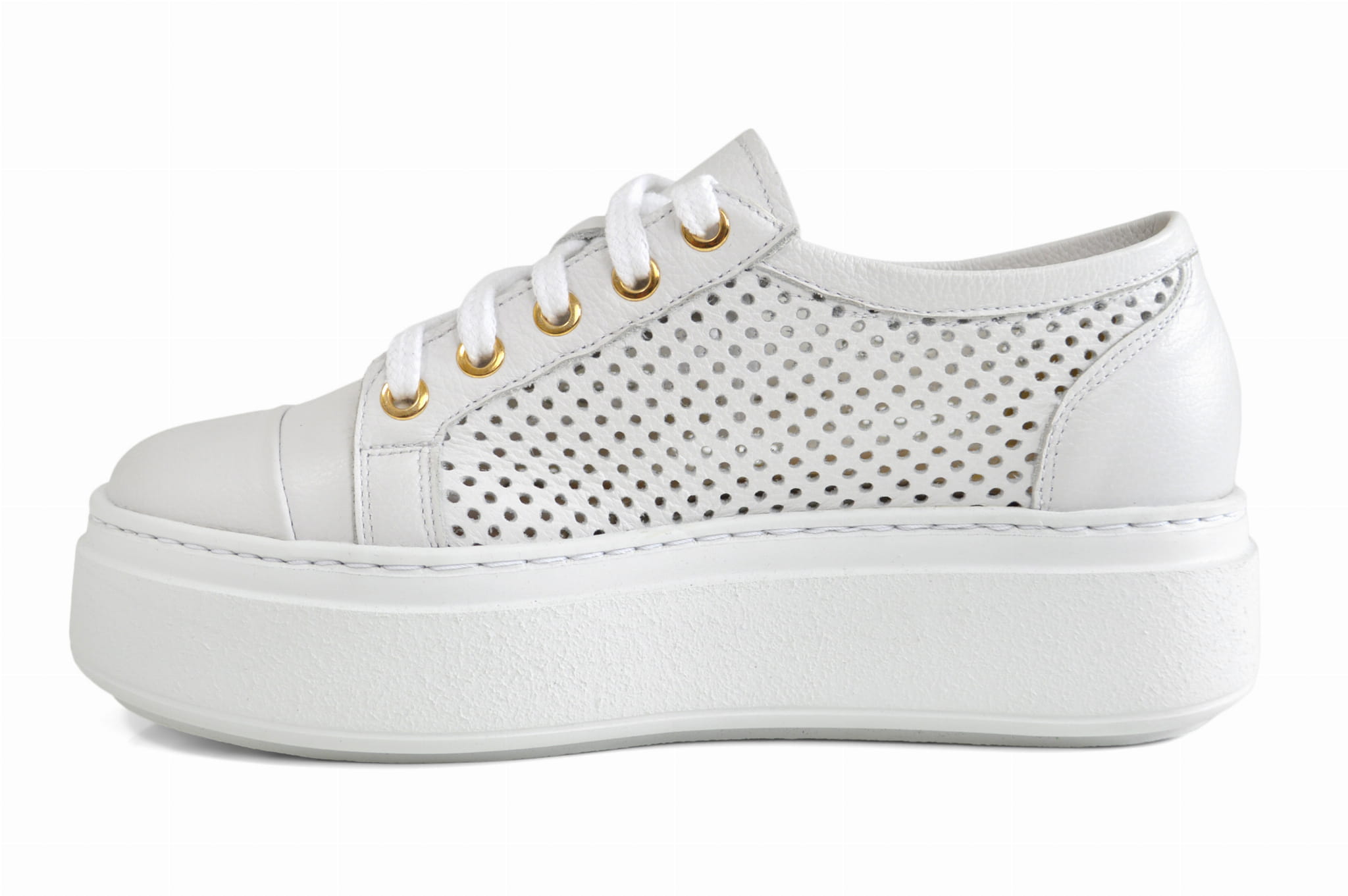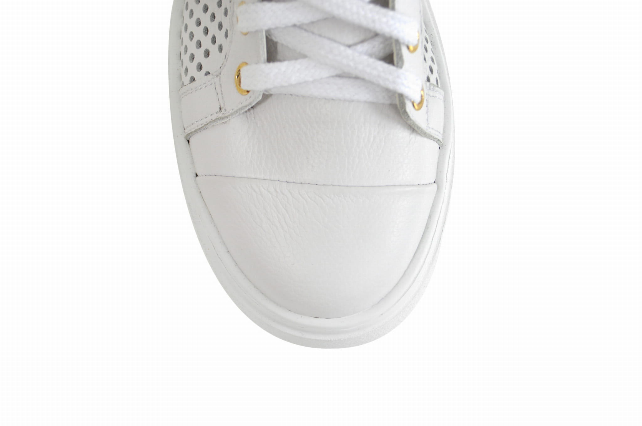 Białe sneakersy skórzane licowe z perforacją to wyraz Twojego nowoczesnego stylu, a także praktyczne rozwiązanie dla aktywnego trybu życia. Perforowana cholewka zapewnia doskonałą cyrkulację powietrza, co oznacza, że Twoja stopa będzie utrzymywać odpowiednią temperaturę nawet podczas gorących dni. Dodatkowo, perforacje dodają butom lekkości i unikatowego charakteru sprawiając, że są nie tylko wygodne, ale także stylowe. Ręczna produkcja w Polsce gwarantuje najwyższą jakość wykonania, co sprawia, że sneakersy MargoShoes są nie tylko modne, ale także trwałe. Dodaj je do swojej letniej garderoby i ciesz się wygodą i stylem w każdej sytuacji.