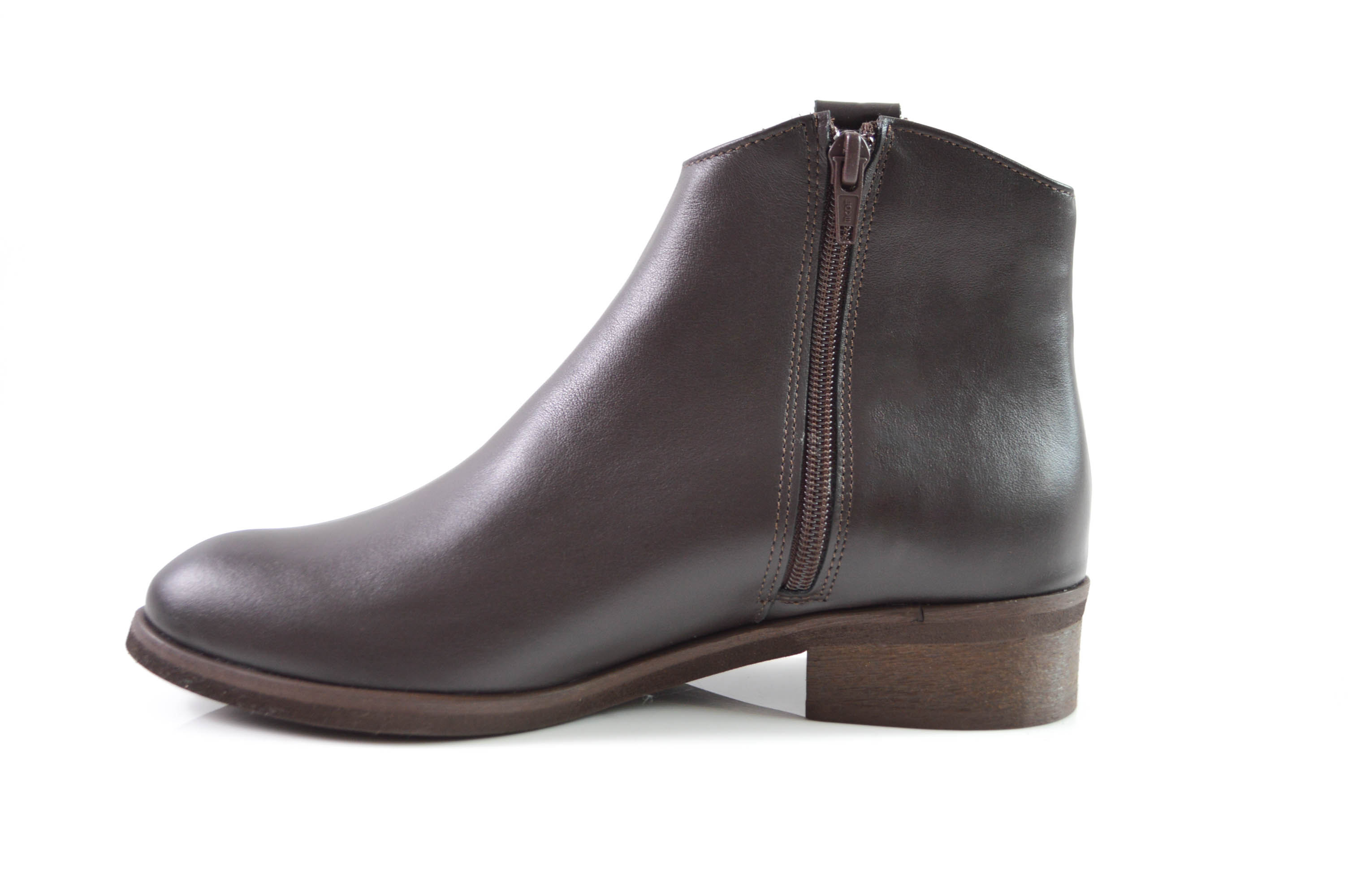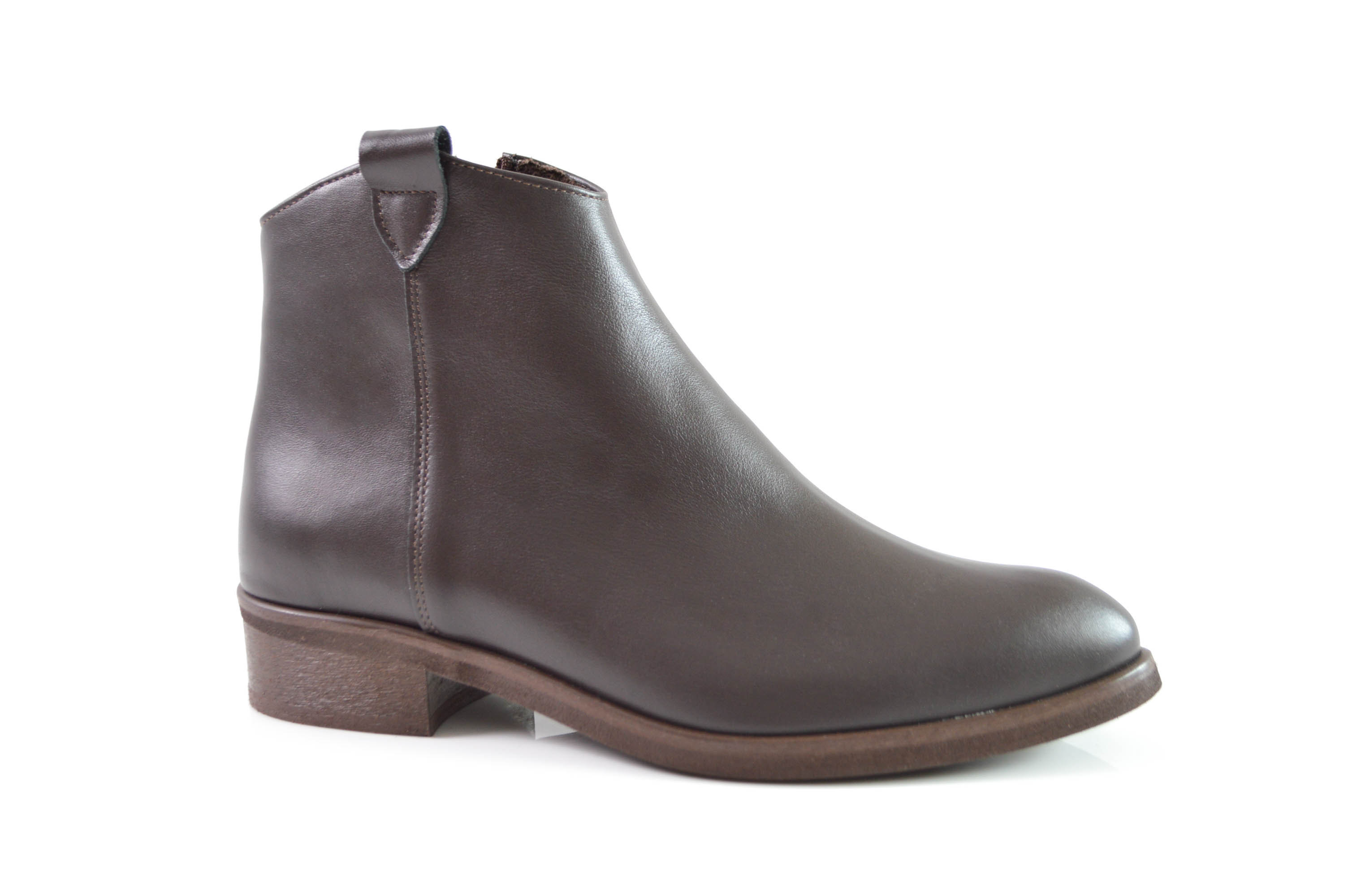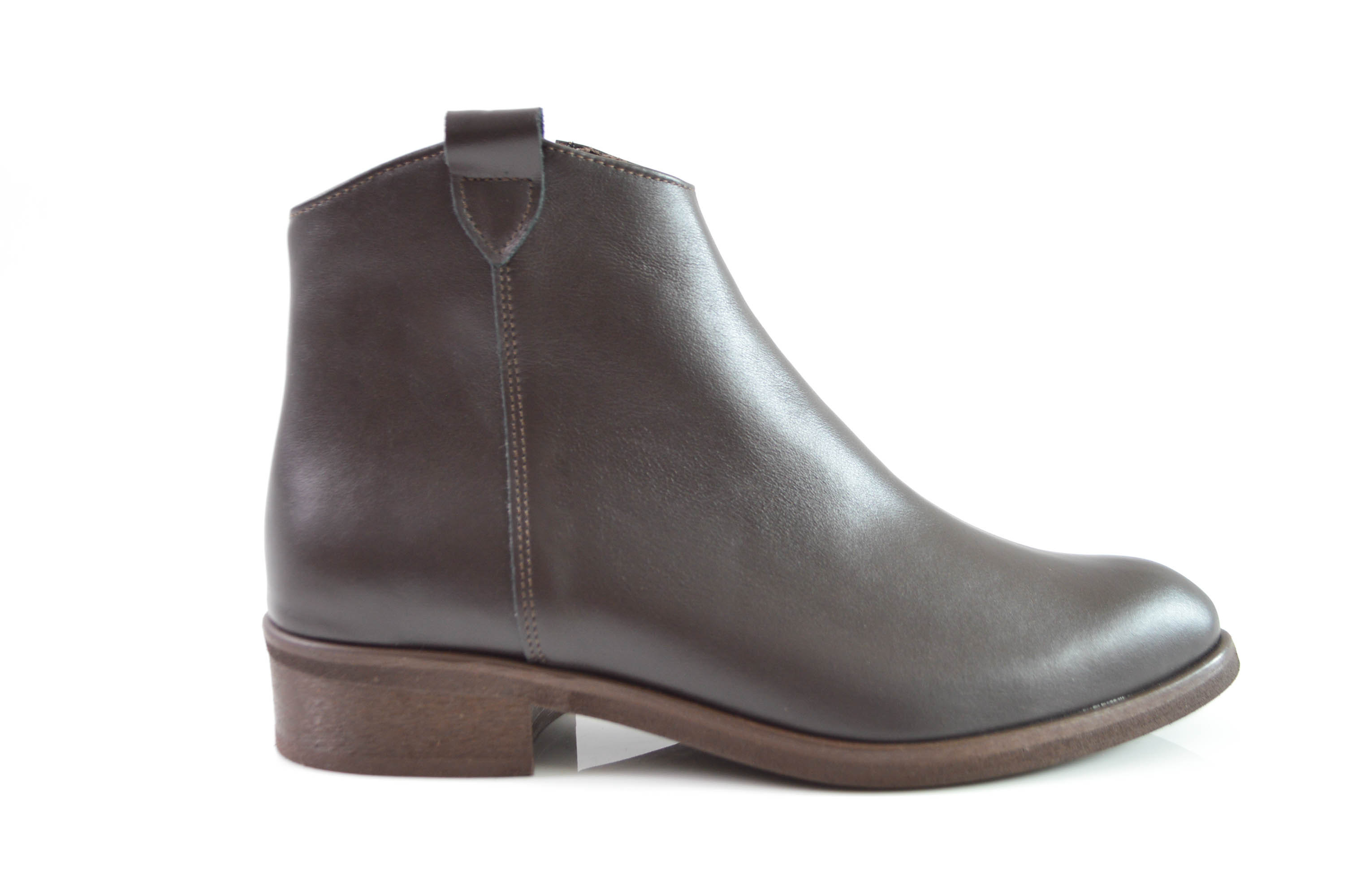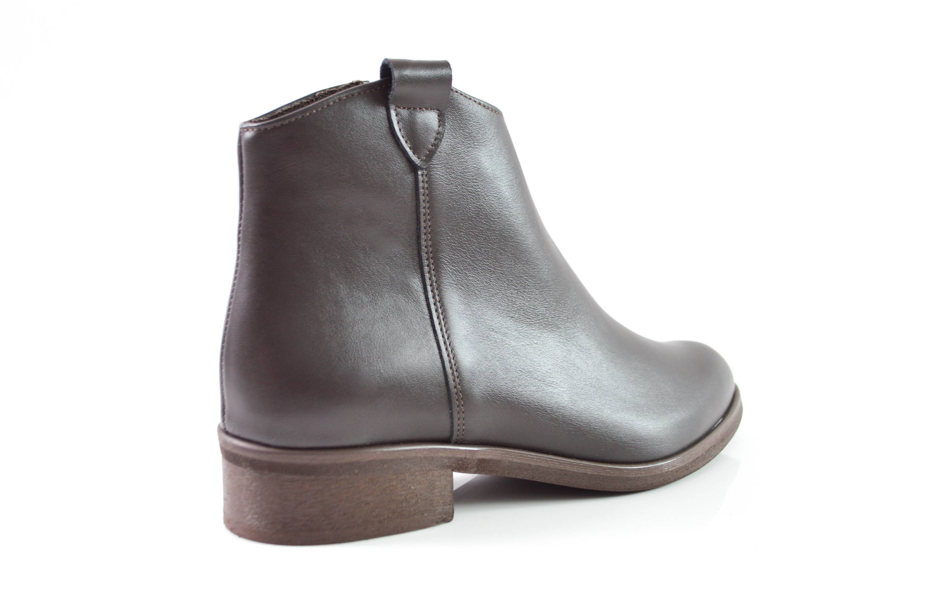 Brązowe botki ze skóry naturalnej licowej odcień czekolady