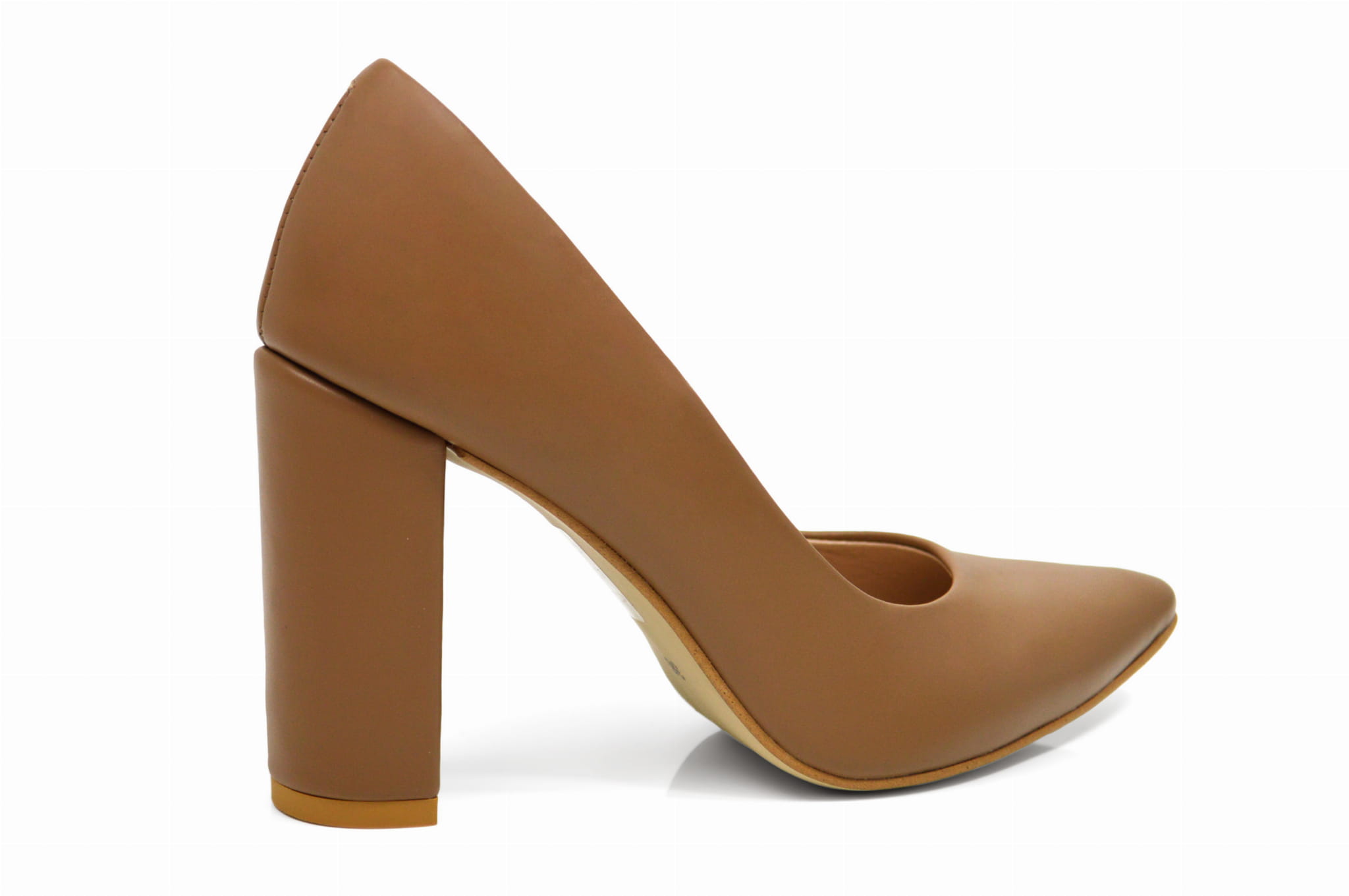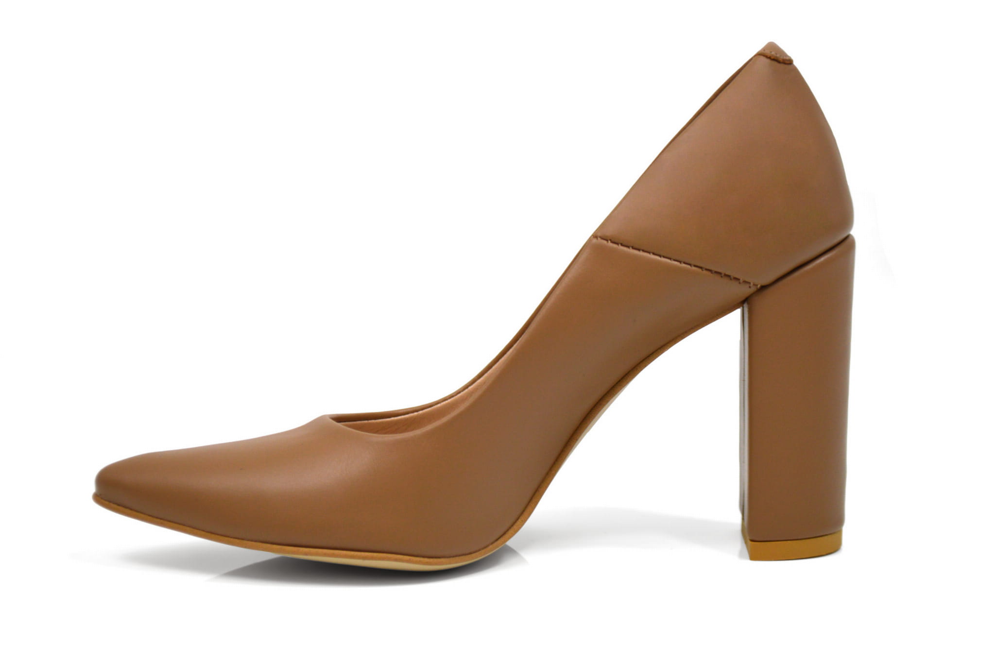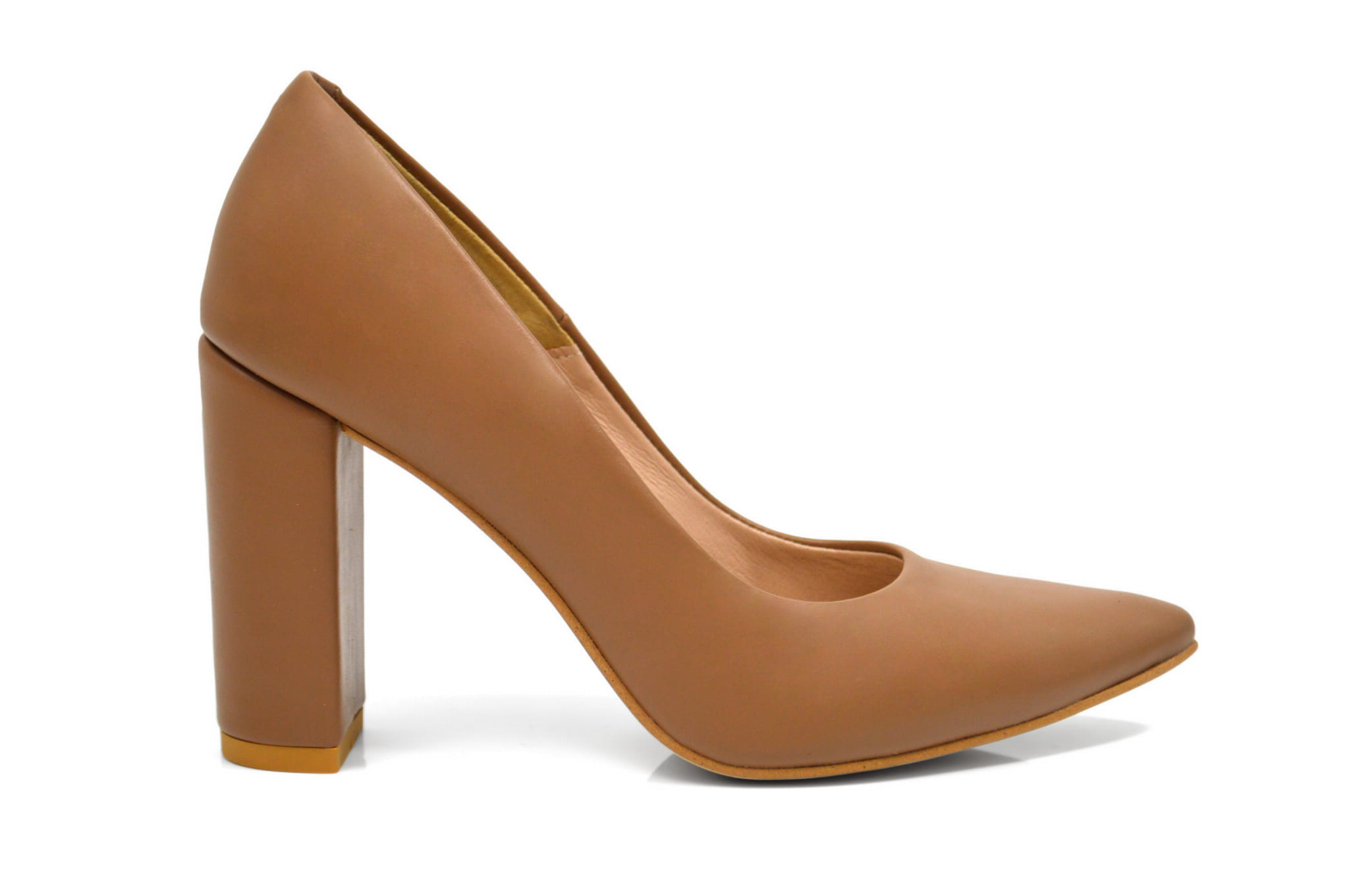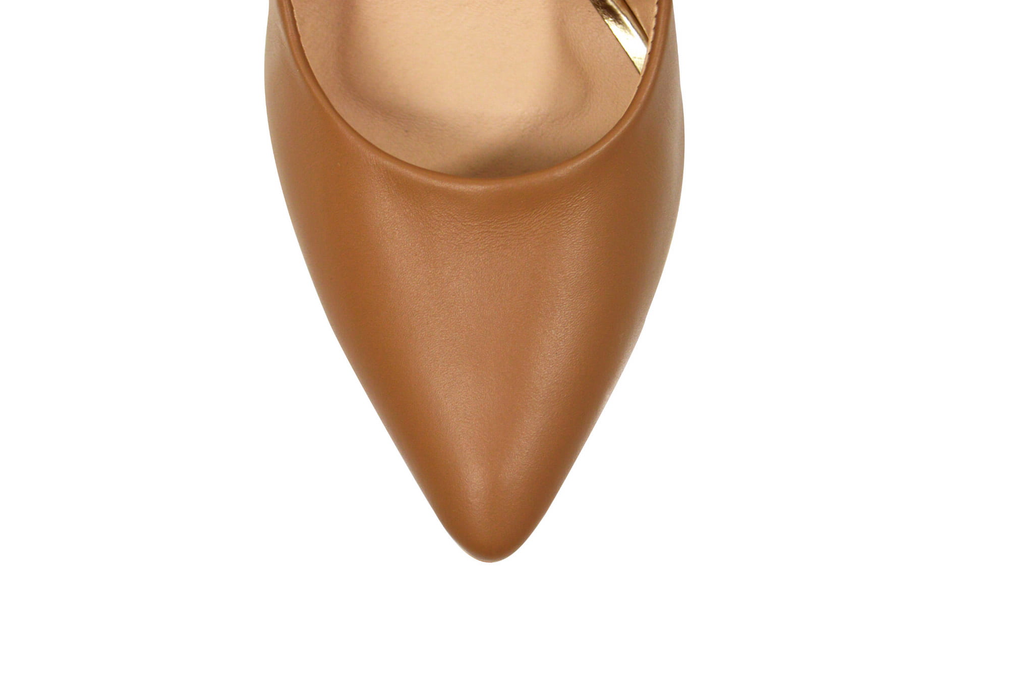 Brązowe ciemne czółenka skórzane licowe na słupku