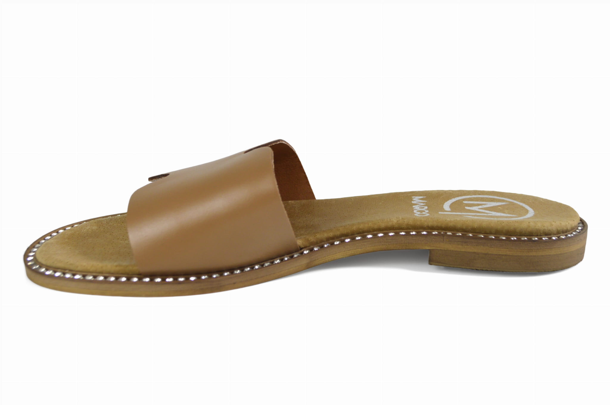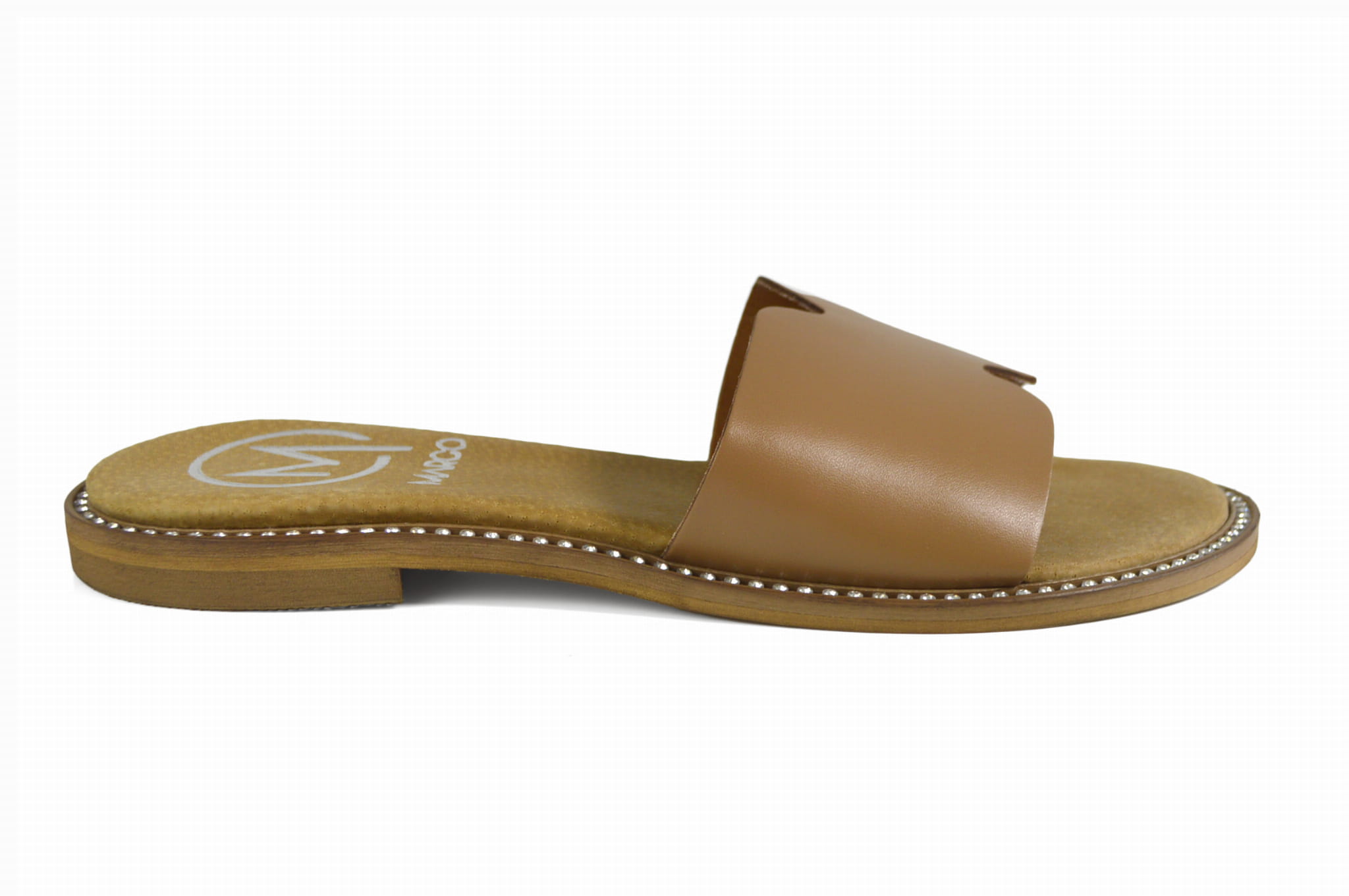 Brązowe klapki skórzane z ozdobnym spodem
