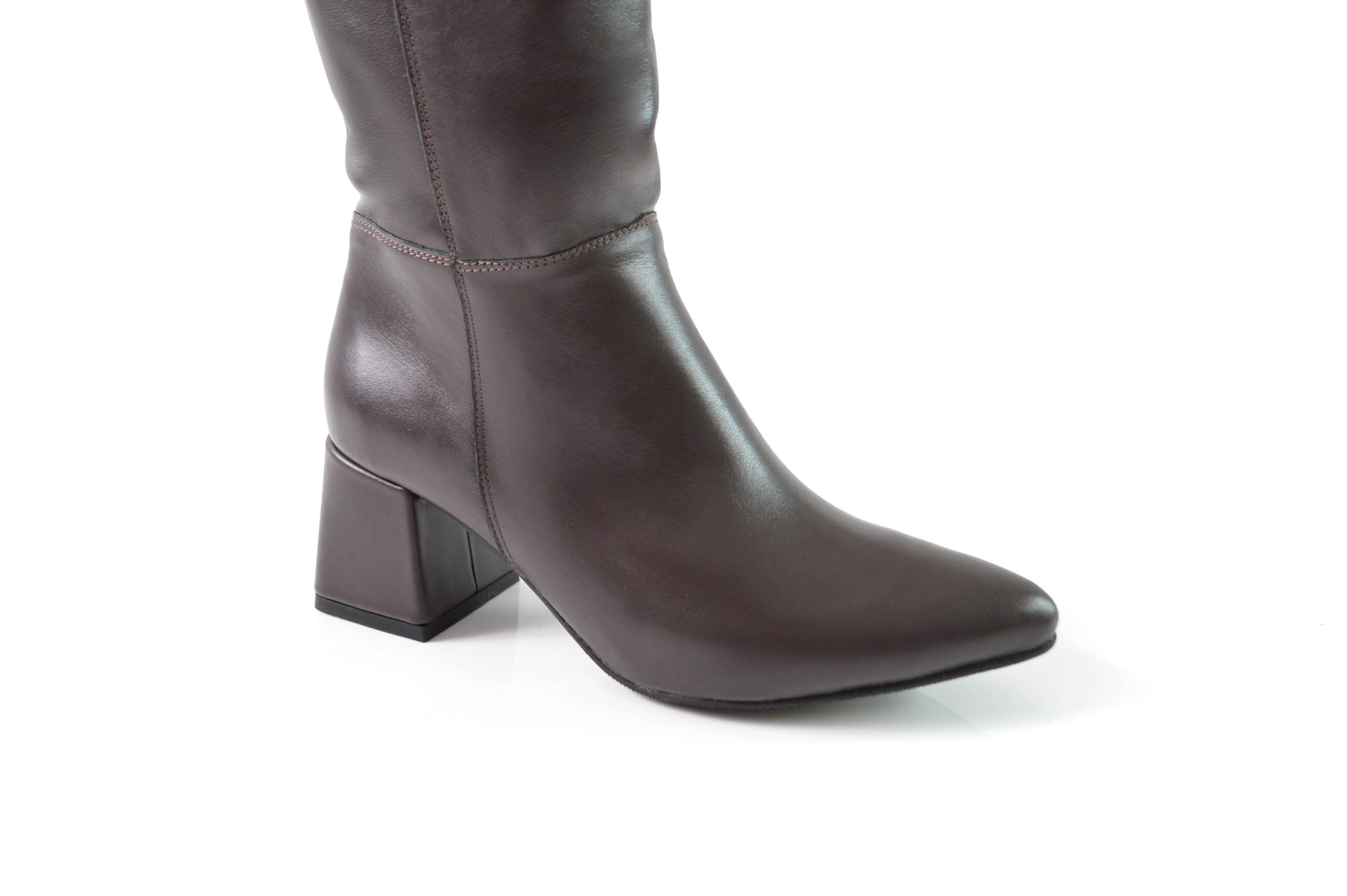 Te brązowe kozaki w głębokim, czekoladowym odcieniu to synonim klasy, jakości i świadomego stylu. Wykonane z najwyższej jakości naturalnej skóry licowej, zachwycają gładką powierzchnią, szlachetnym wykończeniem i elegancką formą, która nigdy nie wychodzi z mody. To model stworzony z myślą o kobietach, które cenią wyrafinowaną prostotę i komfort w codziennym użytkowaniu.