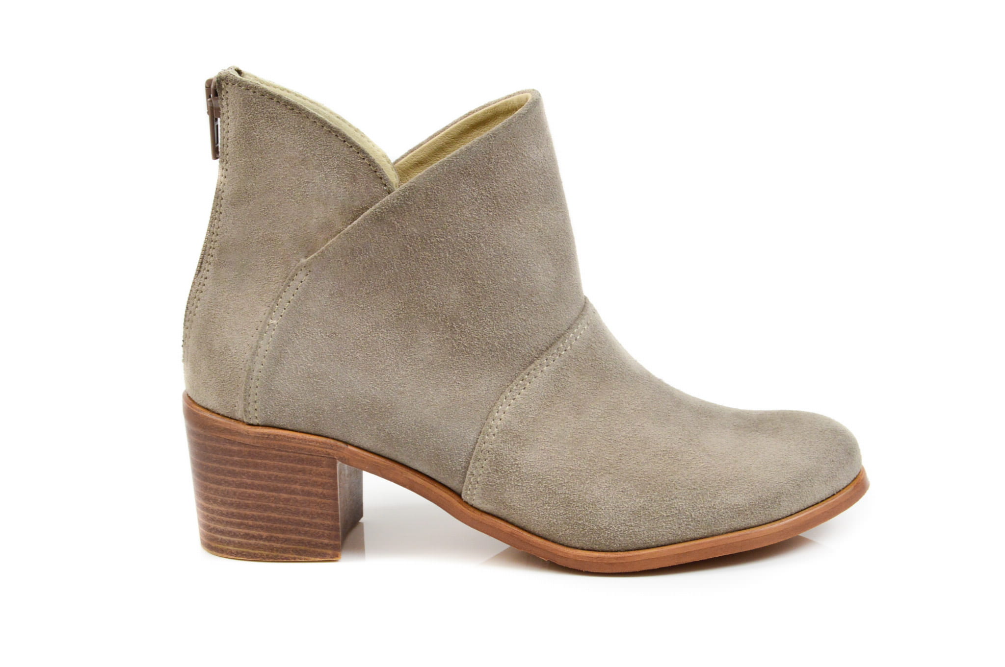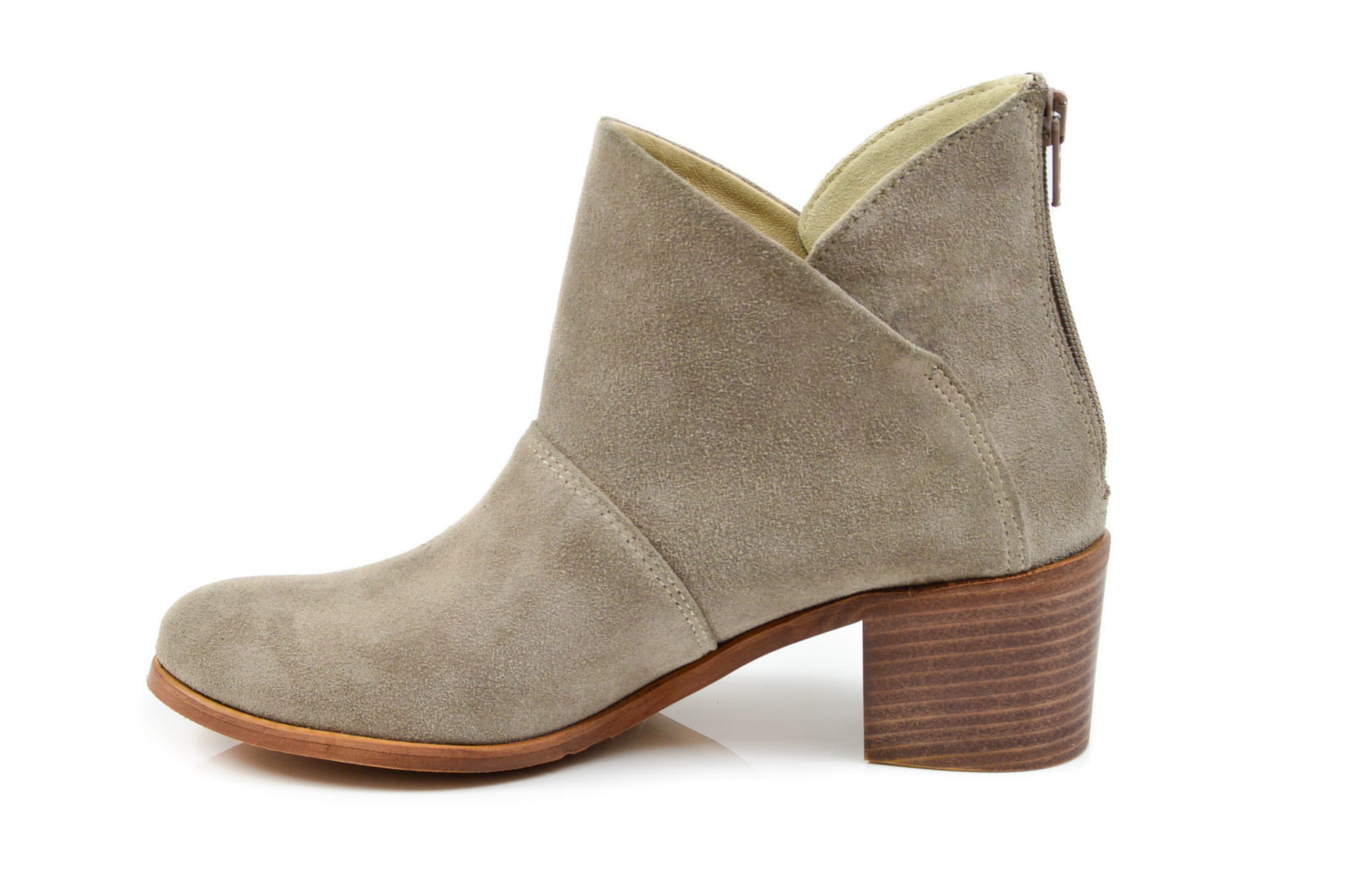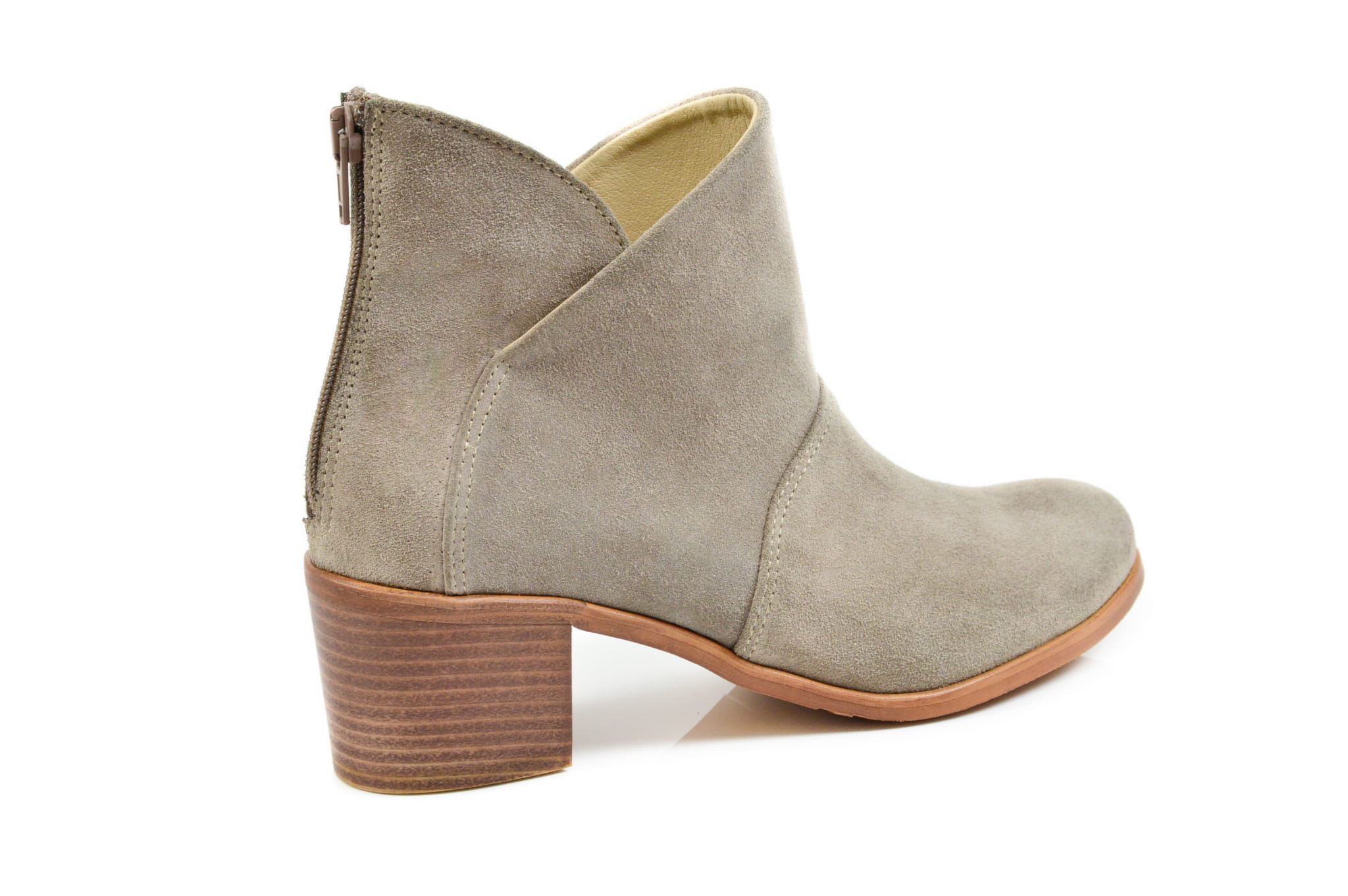 Cappuccino popielate botki na niskim obcasie skóra naturalna