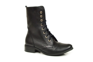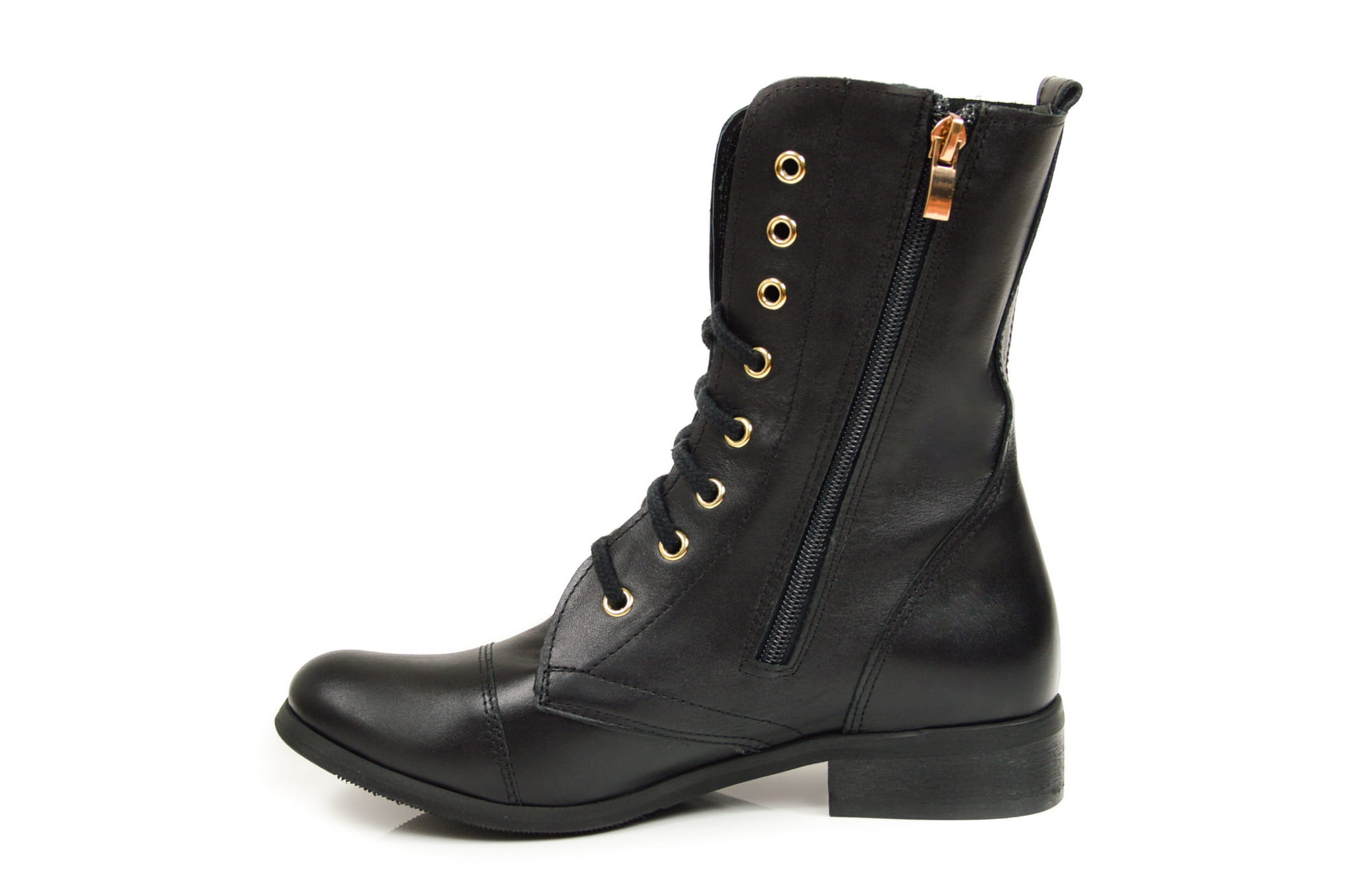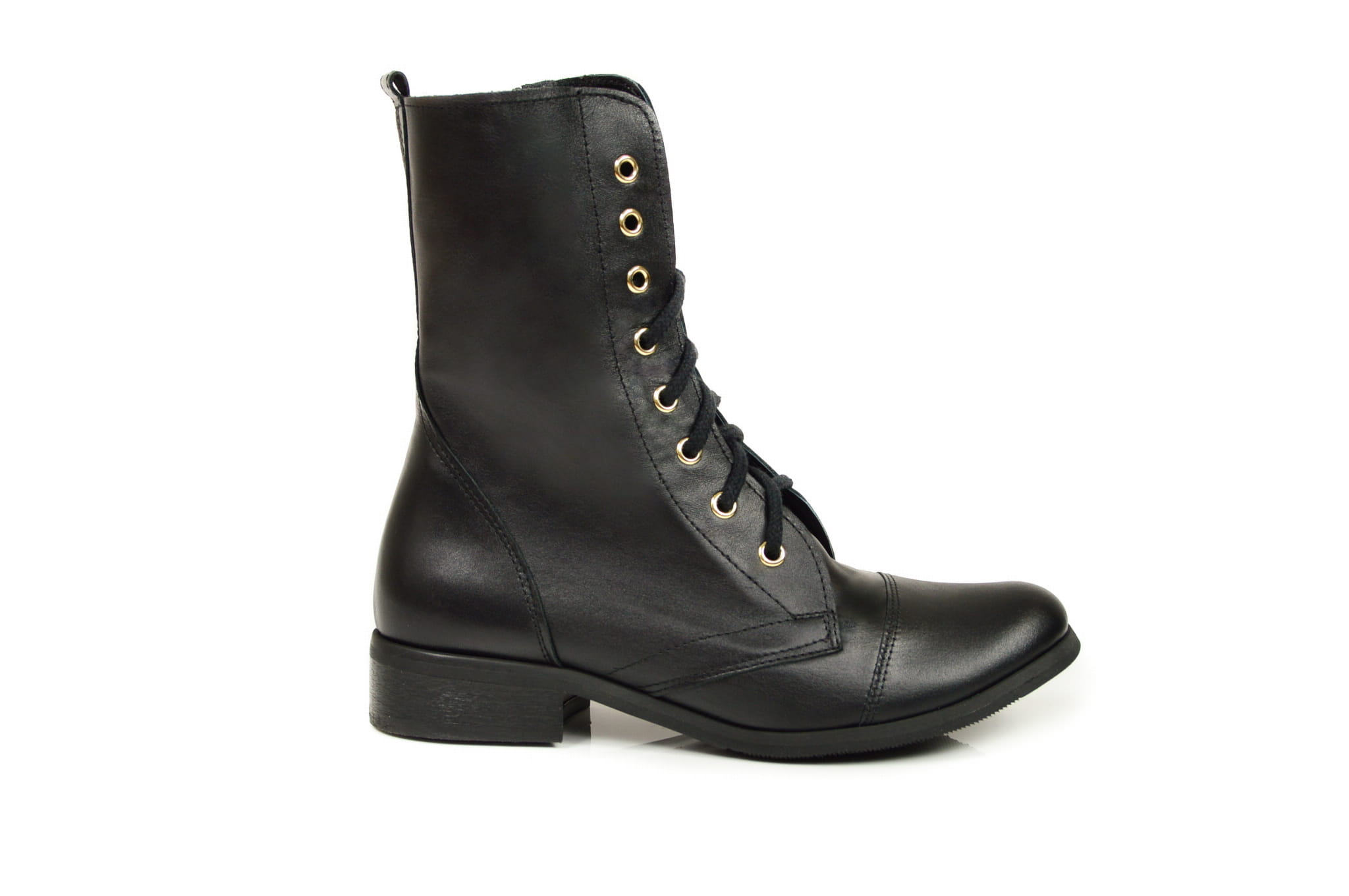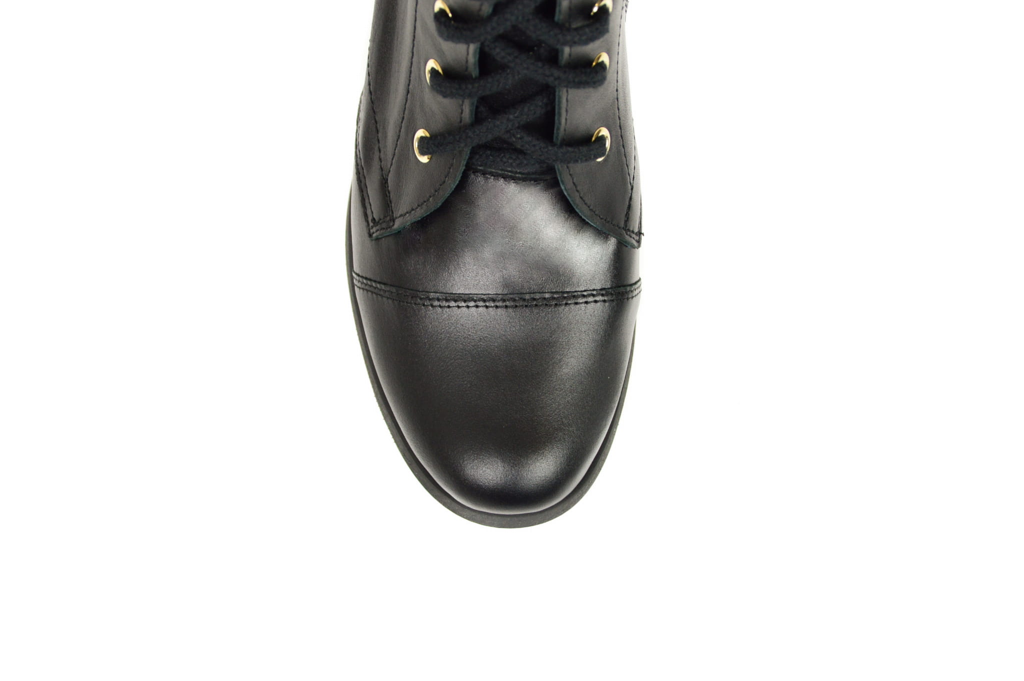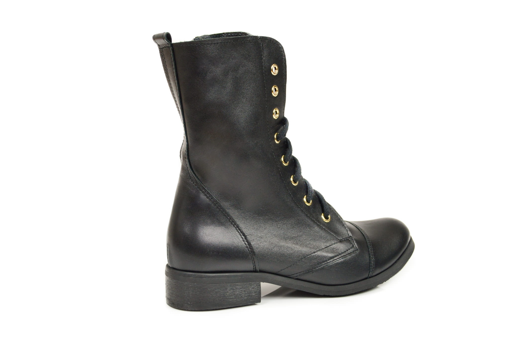 Czarne botki workery damskie ze złotymi oczkami sznurowane skóra naturalna licowa