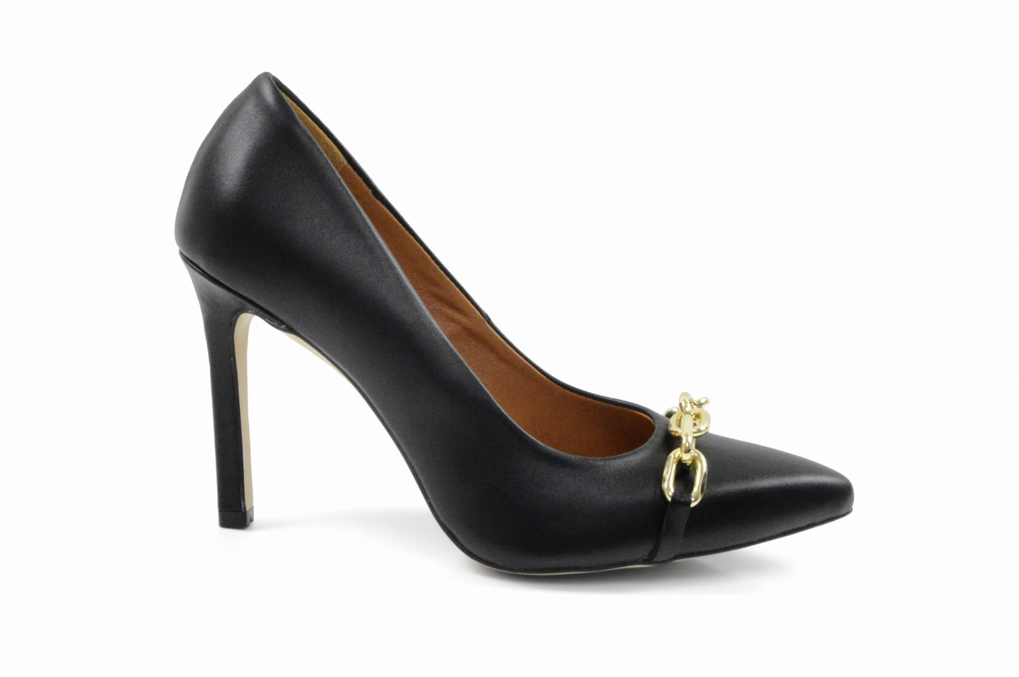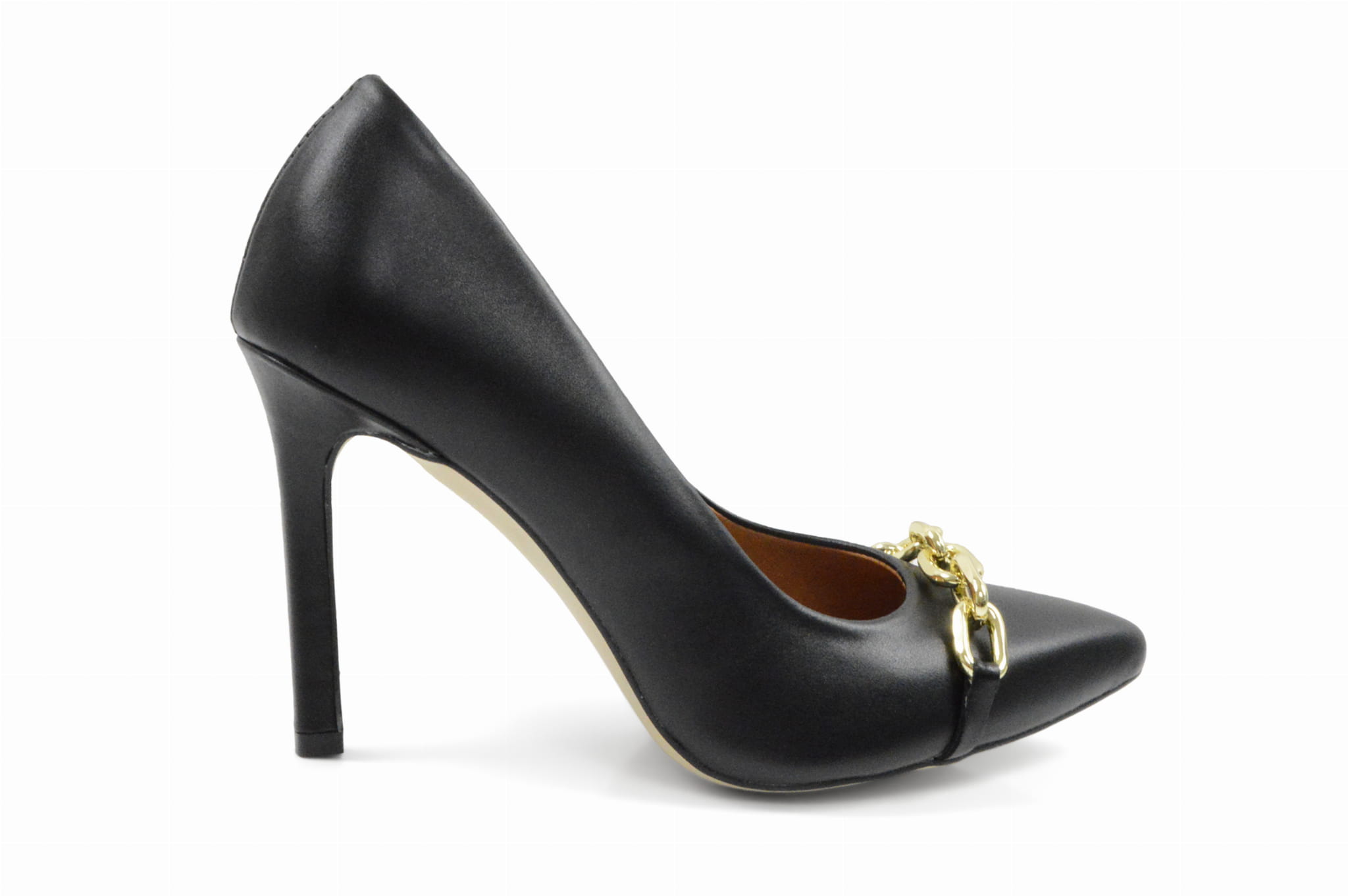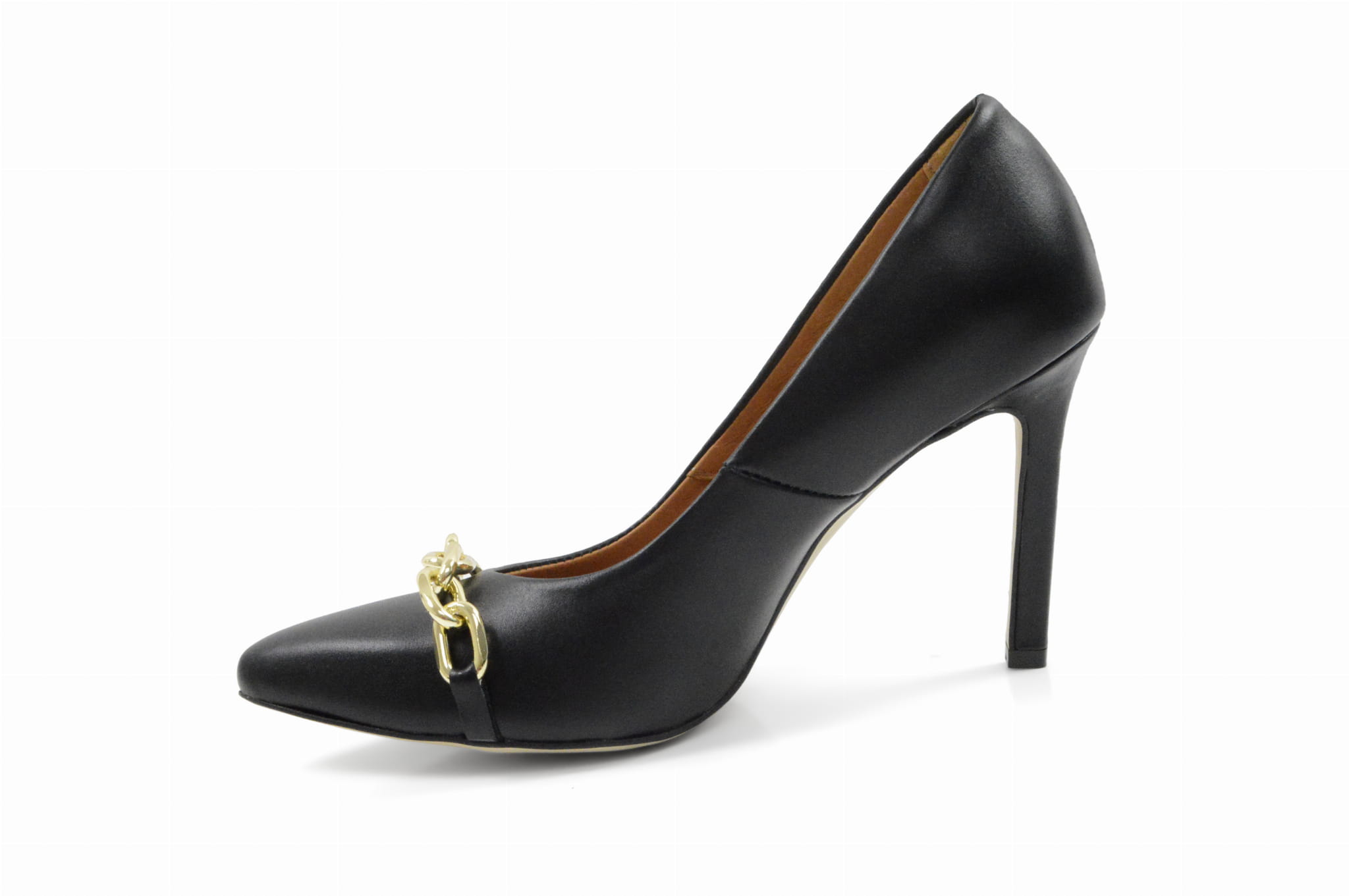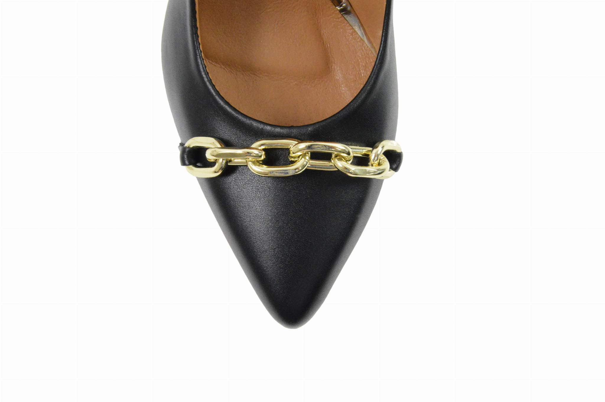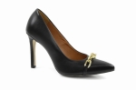 Czarne czółenka skórzane licowe z łańcuchem