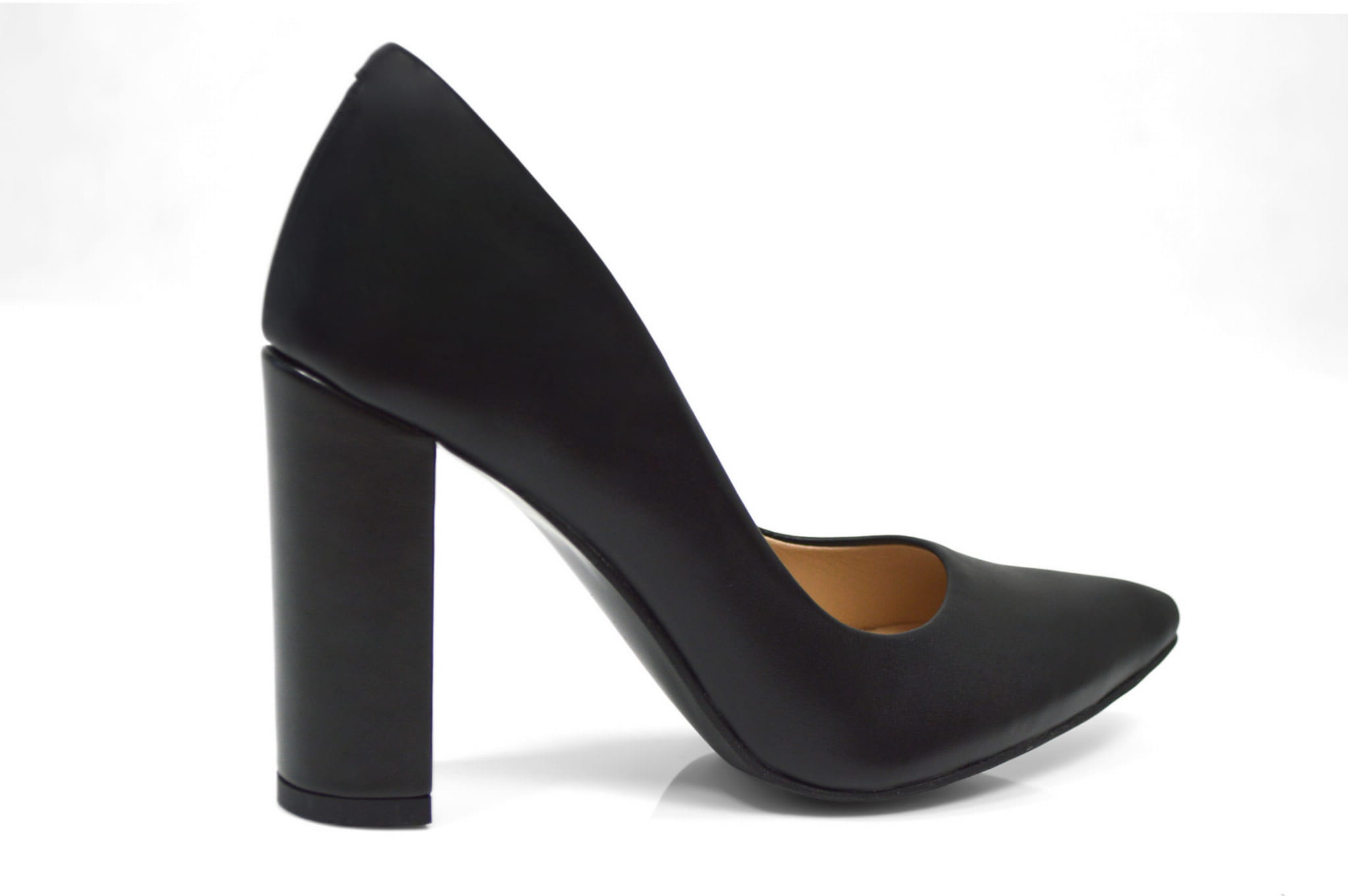 Czarne czółenka ze skóry licowej na słupku