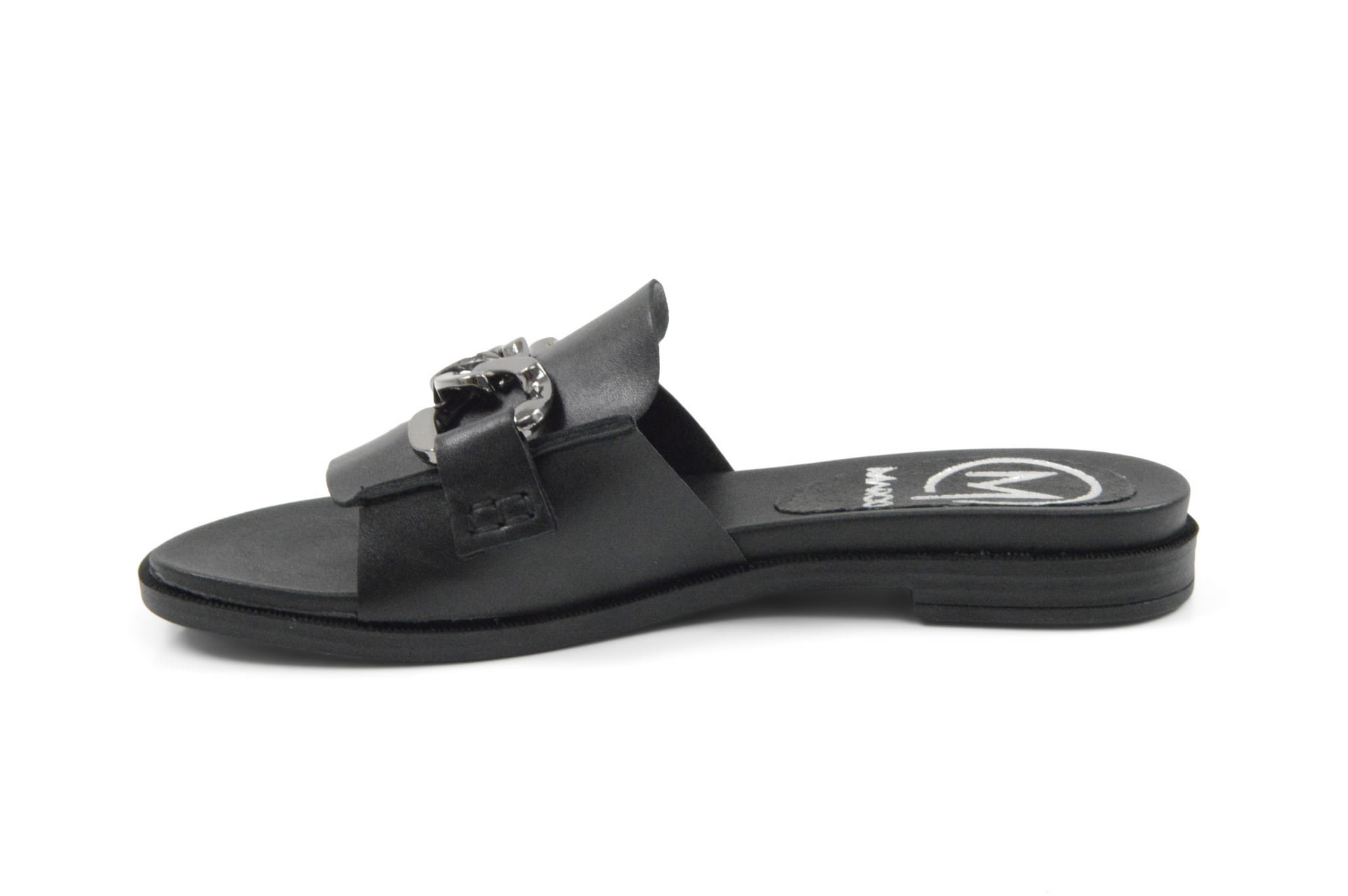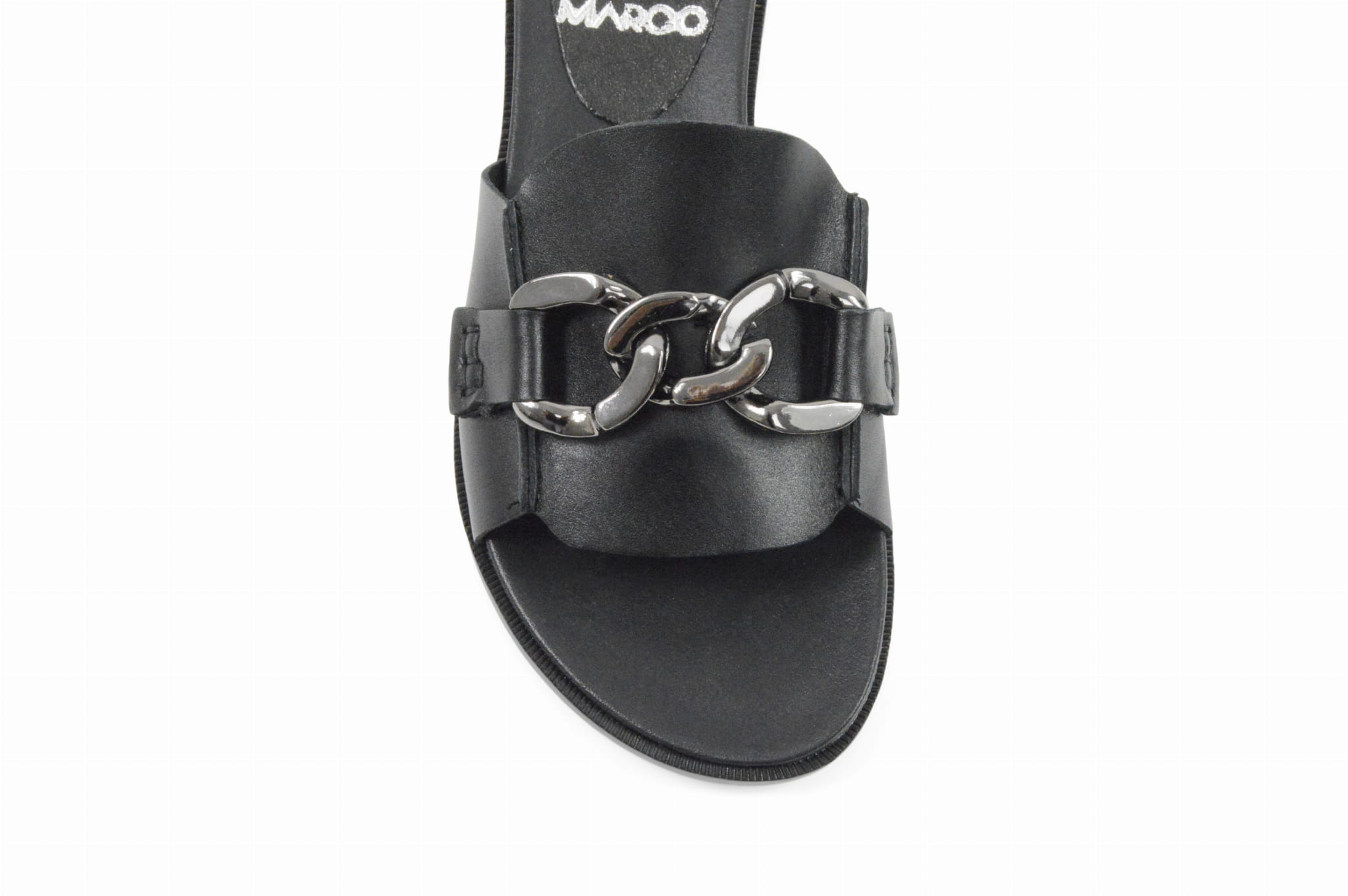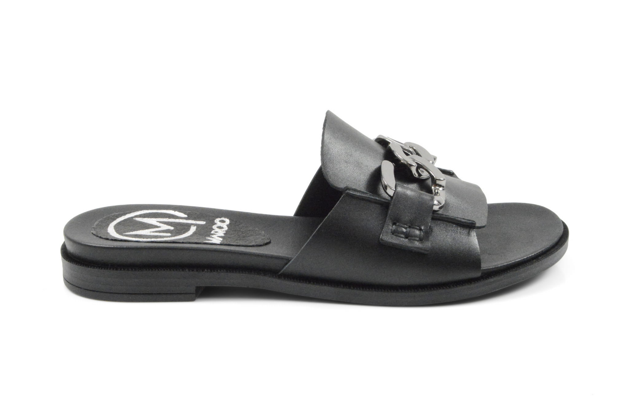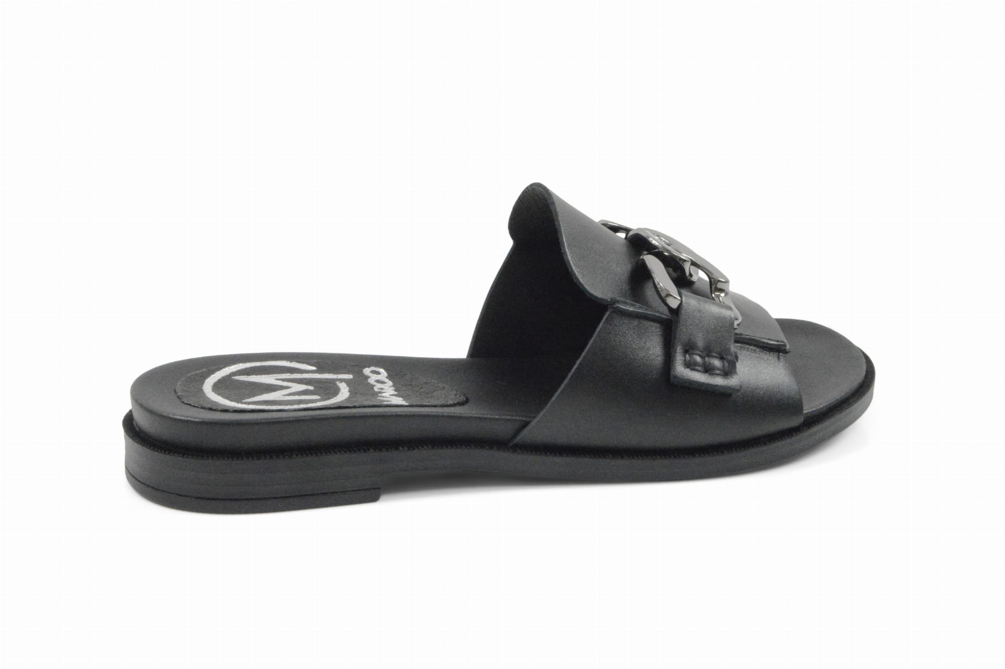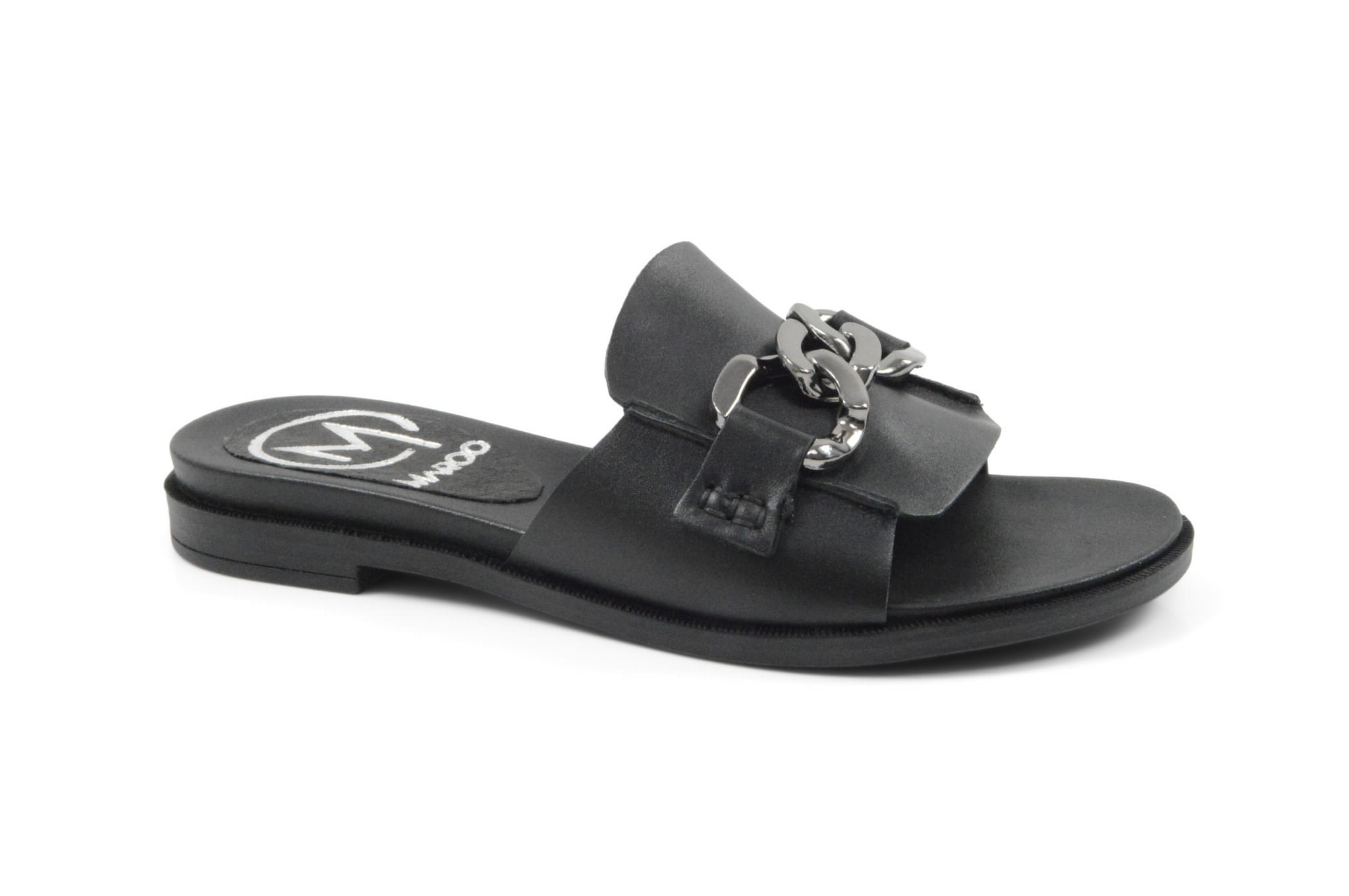 Czarne klapki skórzane z ozdobnym łańcuchem