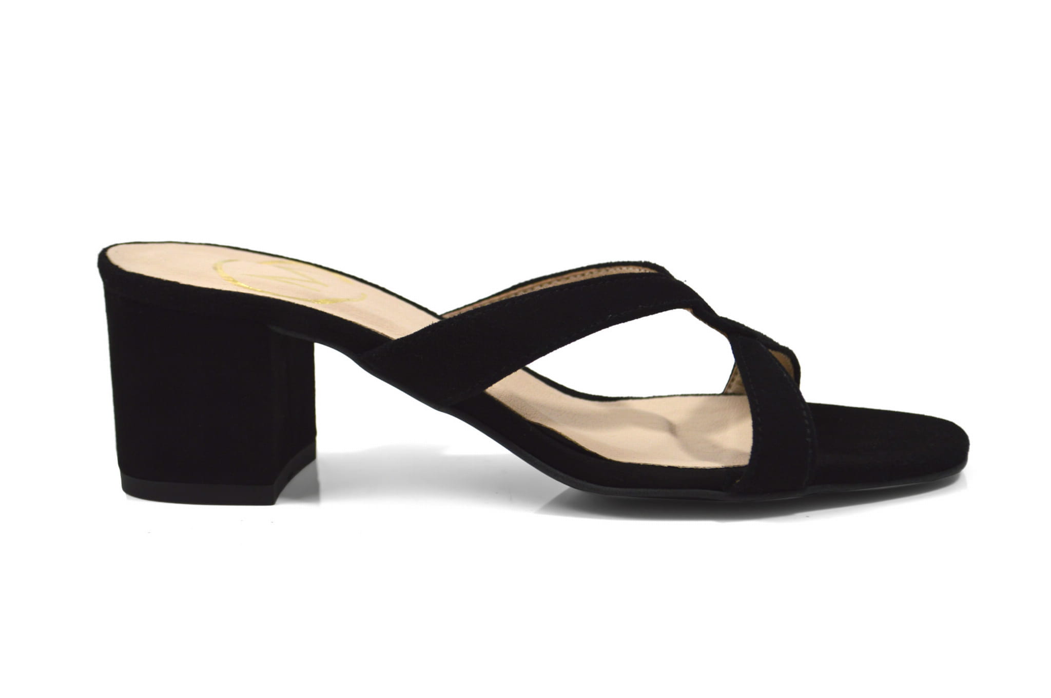 Czarne klapki skórzane zamsz na klocku