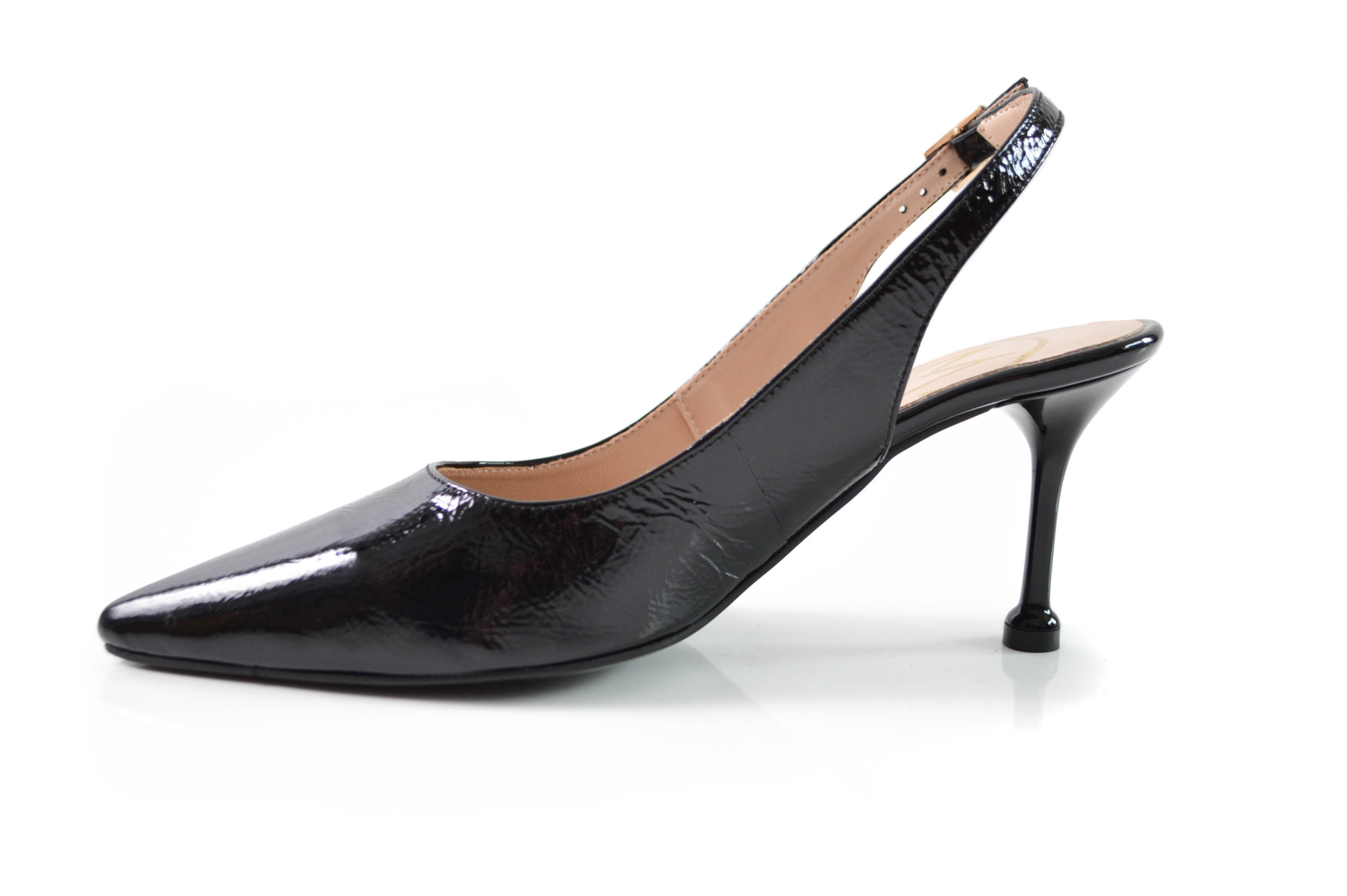 Naturalna skóra lakierowana zapewnia trwałość, komfort noszenia oraz efektowny wygląd przez wiele sezonów. Czółenka damskie w szpic z odkrytą piętą to połączenie klasycznej elegancji, kobiecej lekkości i nowoczesnego szyku.