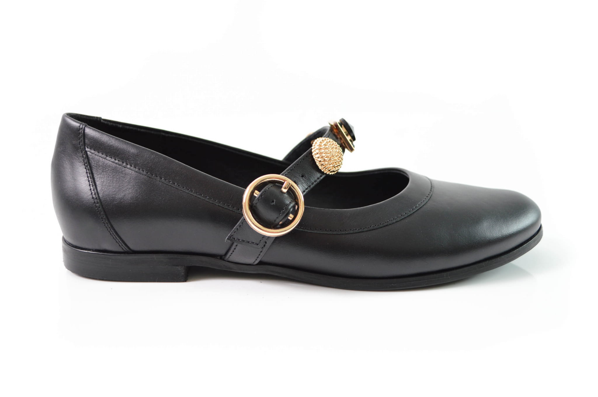 Czarne baleriny z paskiem i złotymi ozdobami – elegancja w codziennym wydaniu