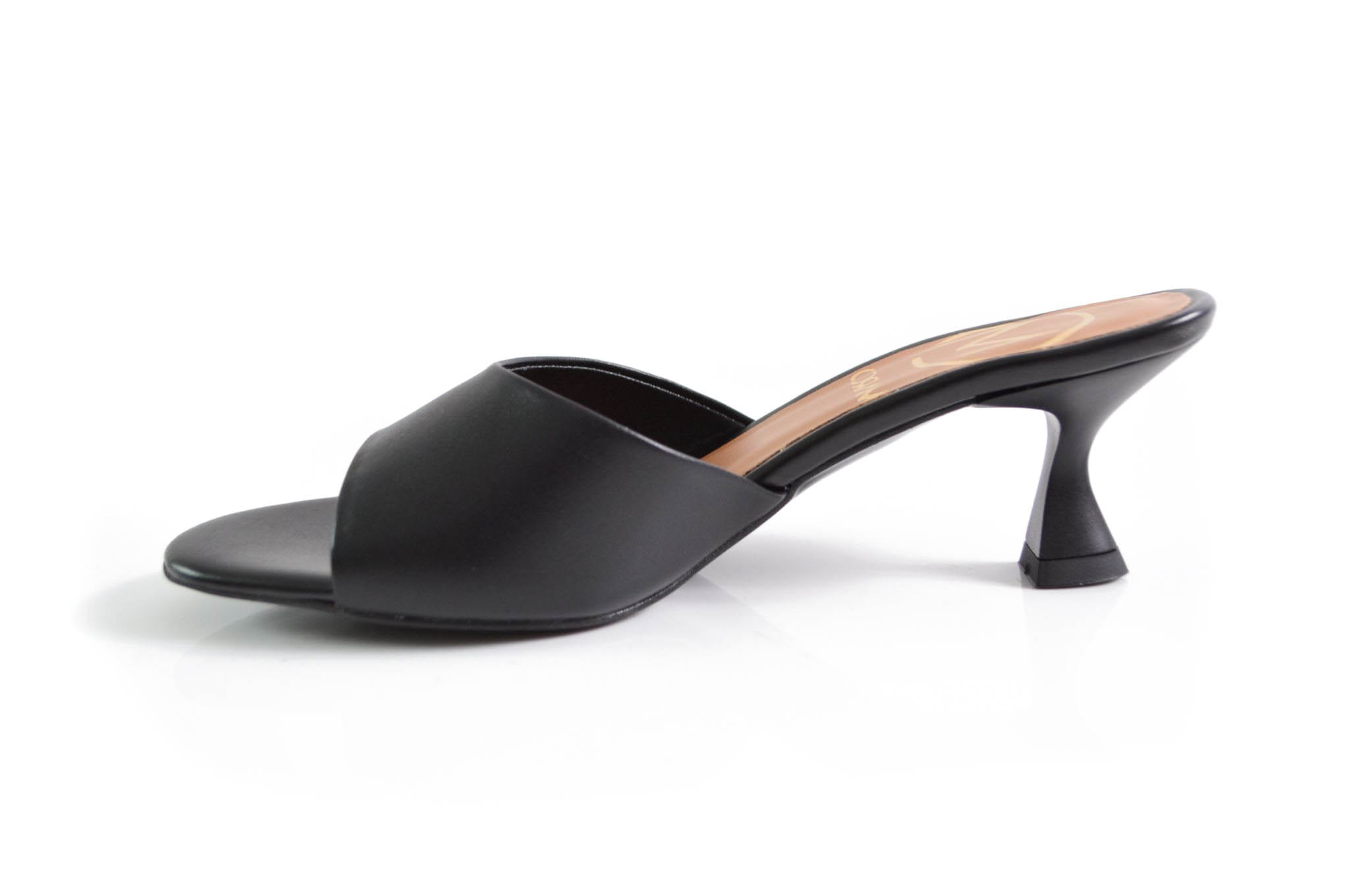 Czarne licowe klapki na rozkloszowanym obcasie – szykowna prostota w nowoczesnym wydaniu