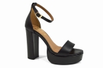 Czarne sandałki skórzane lico wysoki obcas słupek