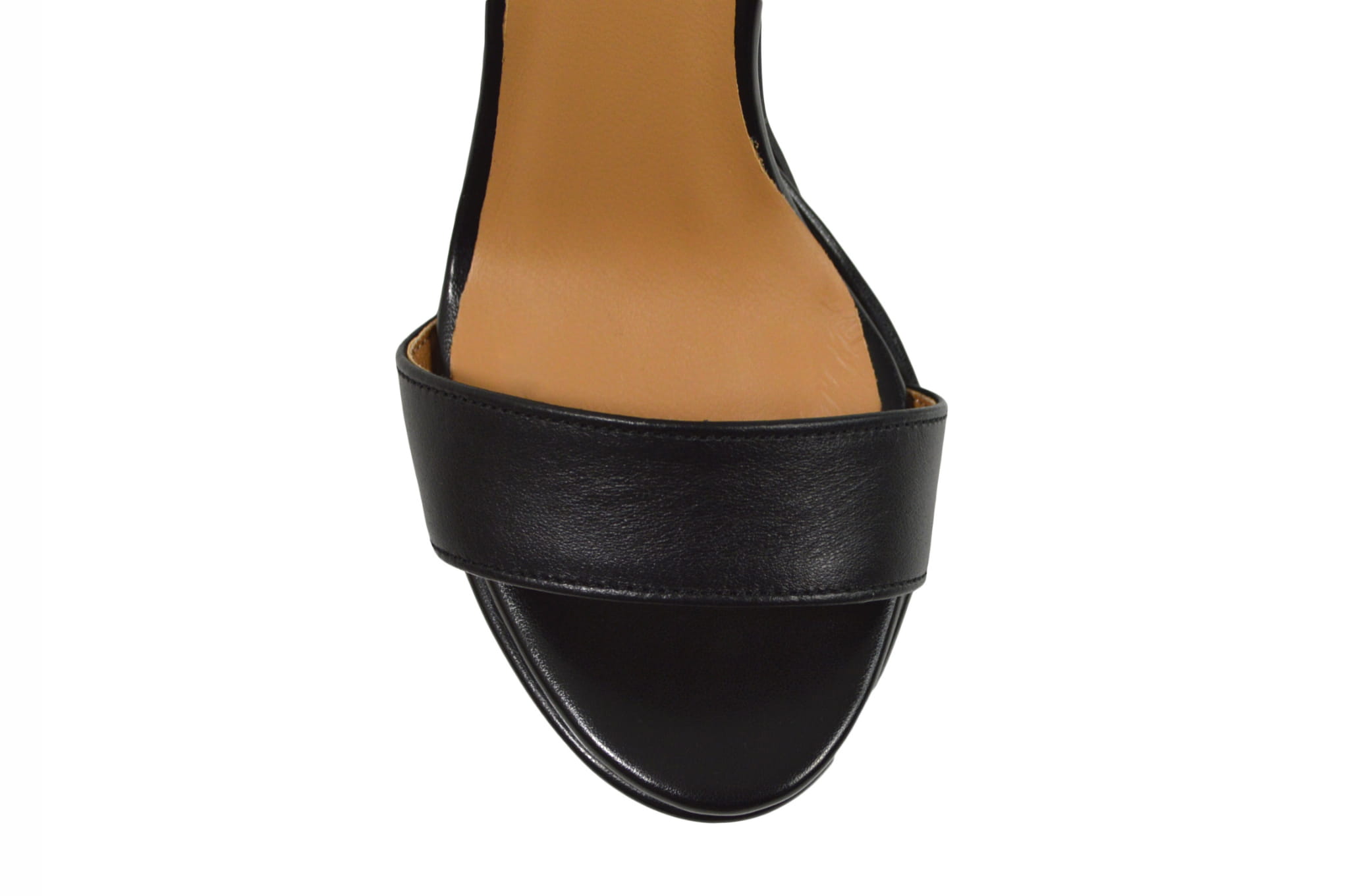 Te czarne sandałki na słupku to idealne połączenie klasyki i nowoczesności. Wykonane z naturalnej skóry licowej, zapewniają doskonałą trwałość oraz wygodę. Ich elegancka forma na stabilnym, skórzanym obcasie o wysokości 11,5 cm, wyróżnia się subtelnym wyglądem, który pasuje do wielu różnych stylizacji. Dzięki okrągłemu noskowi i starannie dobranym materiałom, te sandałki są zarówno komfortowe, jak i modne.