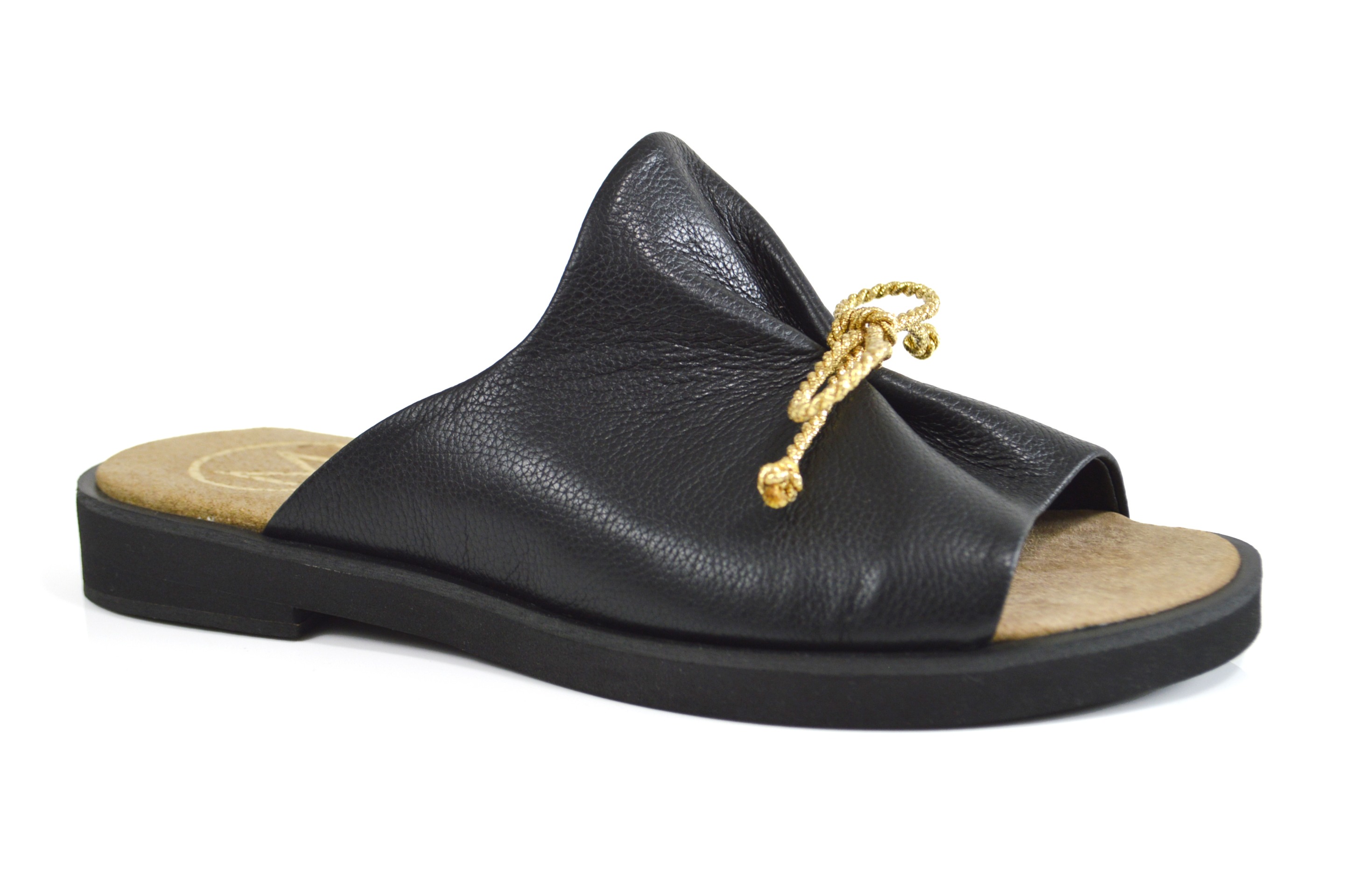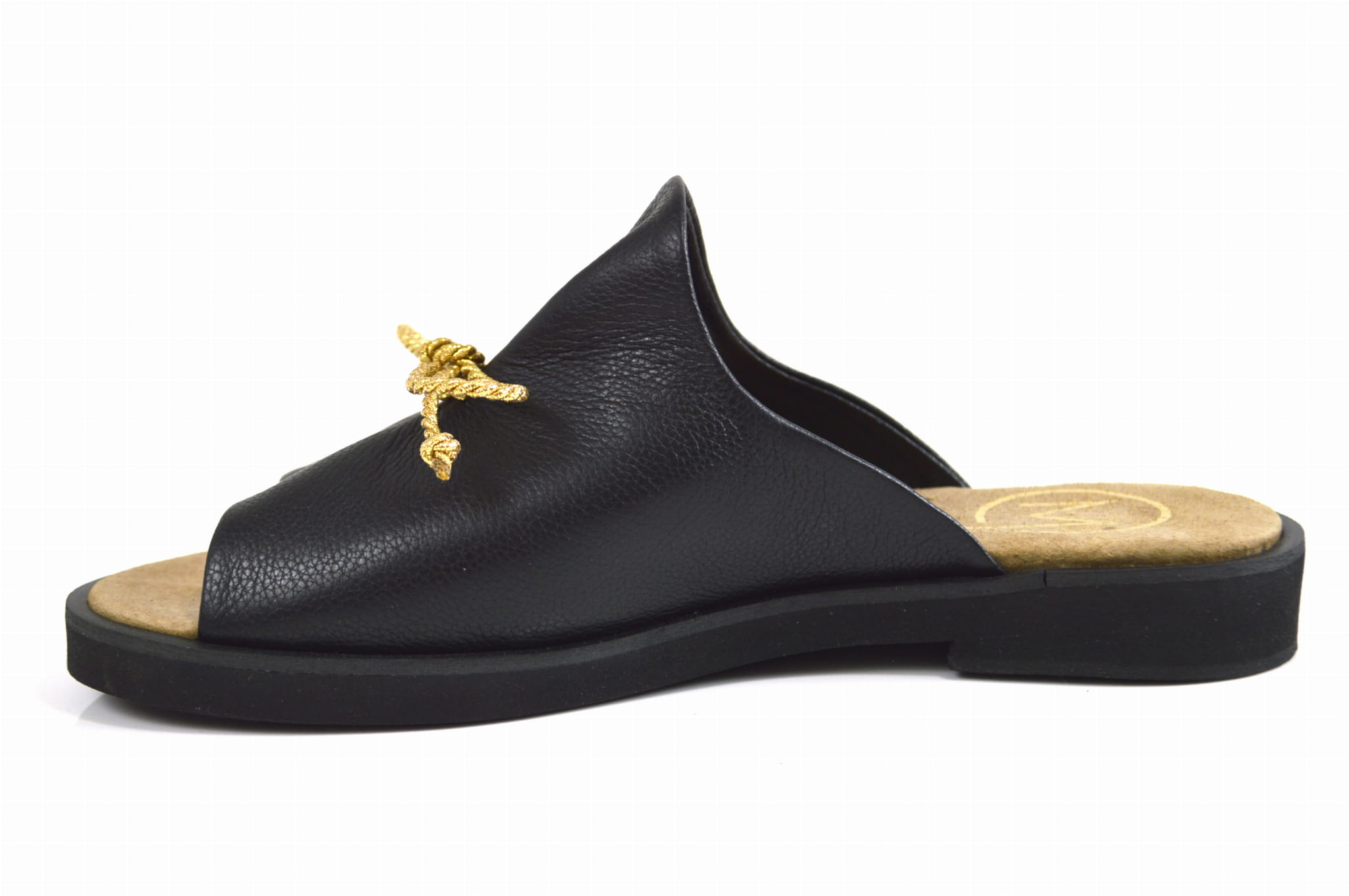 Czarne skórzane klapki licowe z ozdobą