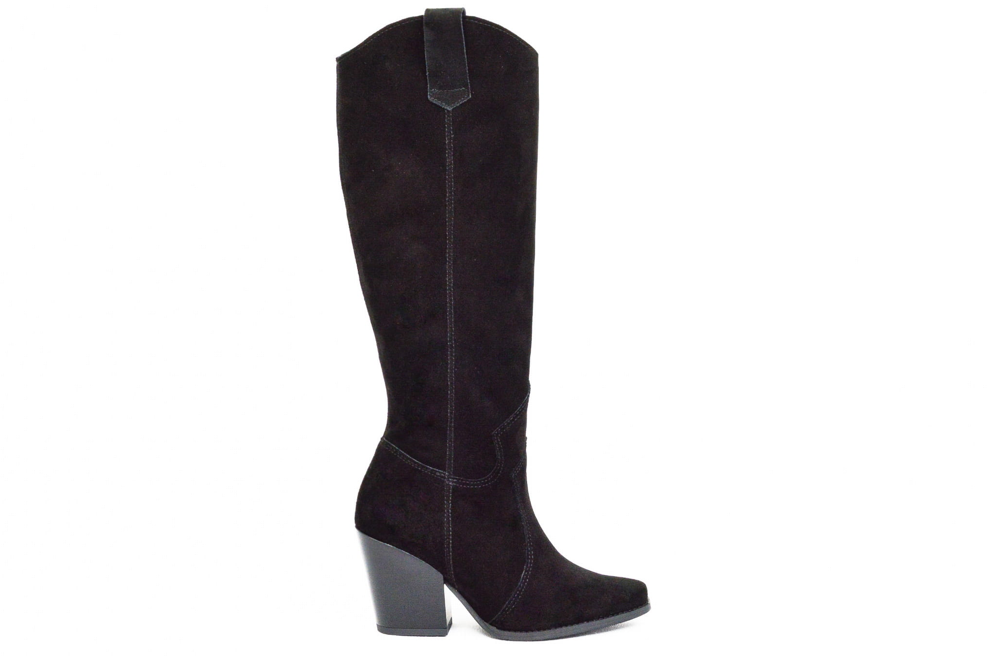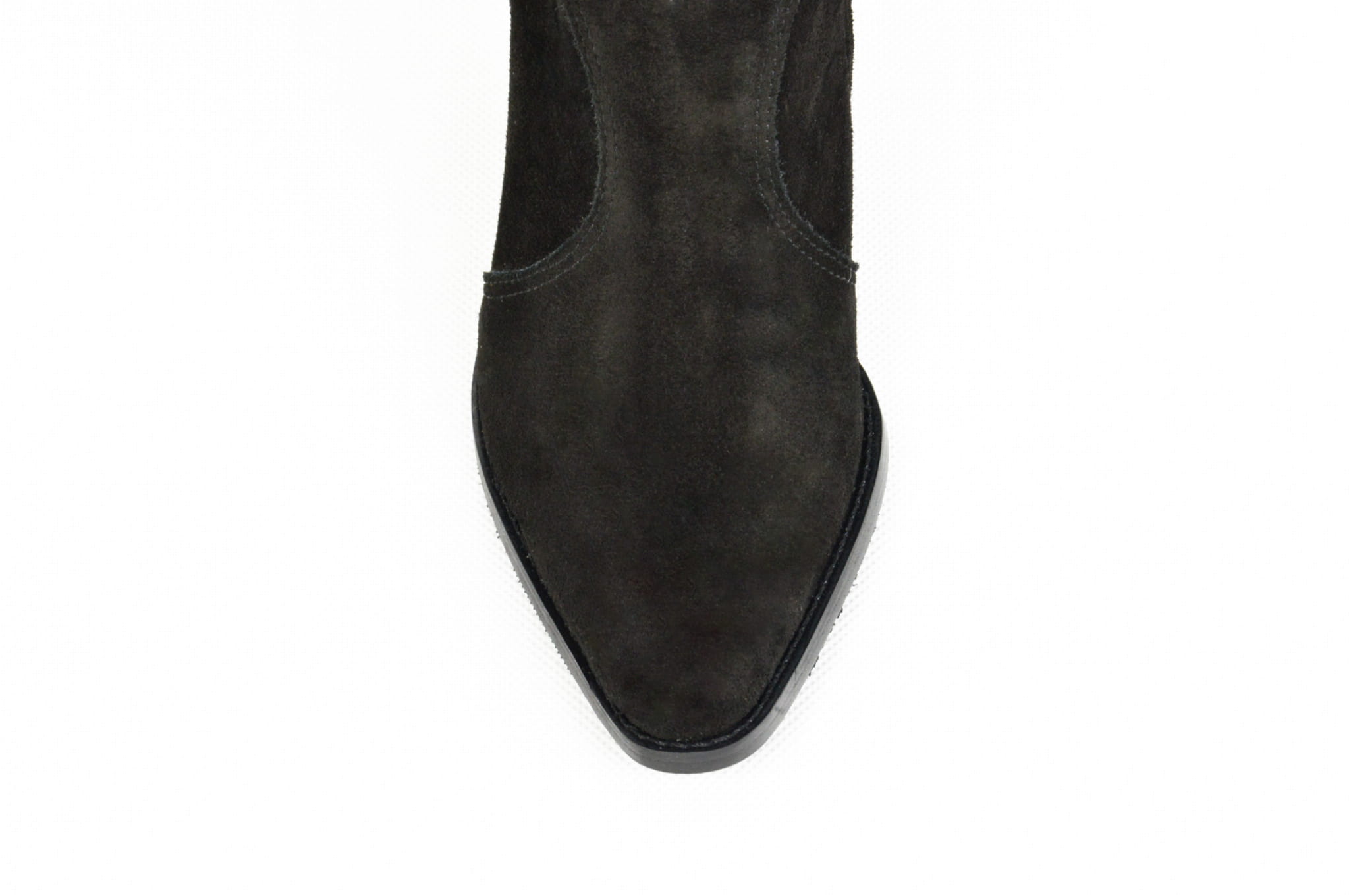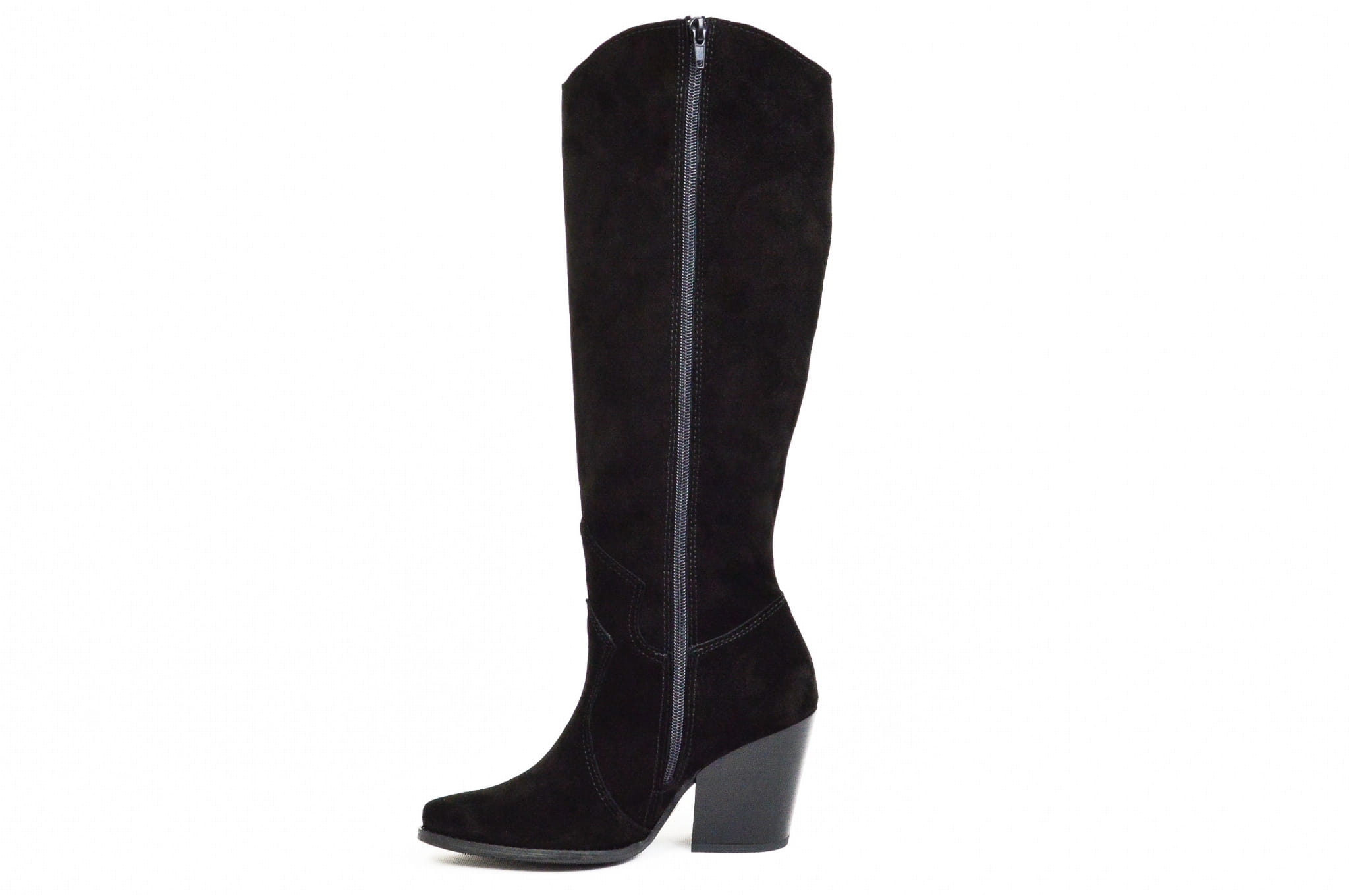 Czarne skórzane kowbojki kozaki stabilny obcas słupek zamszowe ostry czubek