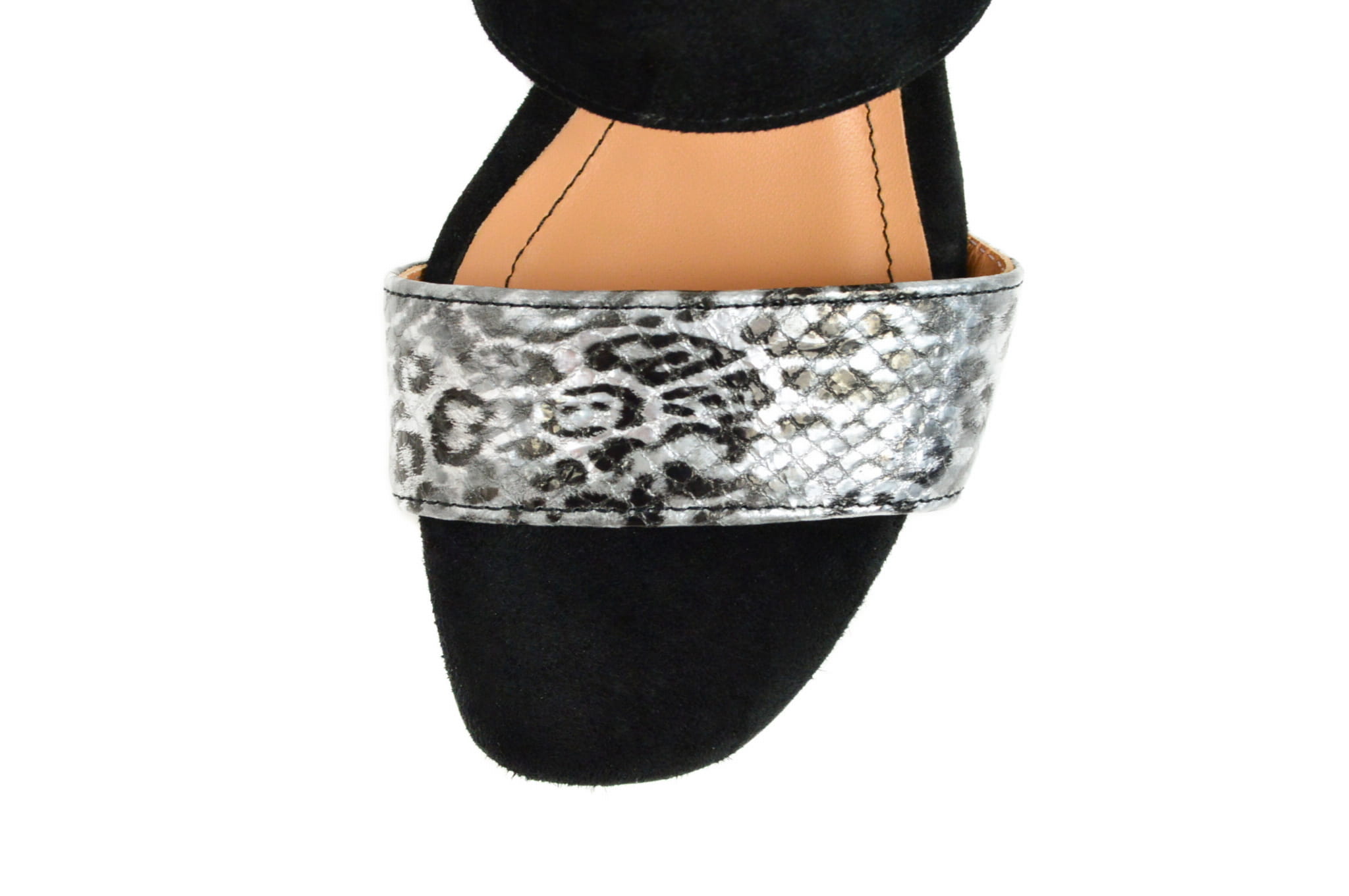 Czarne srebrne sandałki ze skóry zamszowej dla kobiet obcas niski klocek