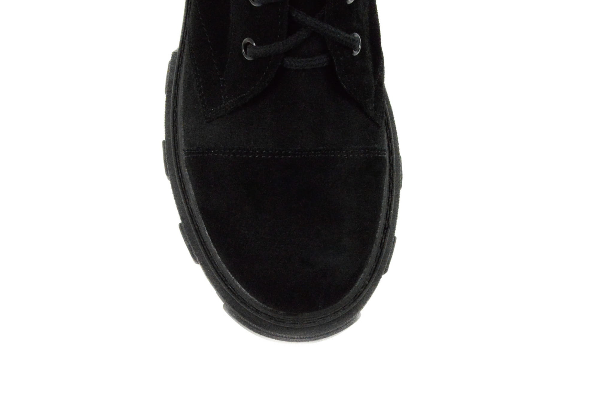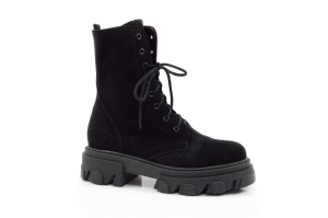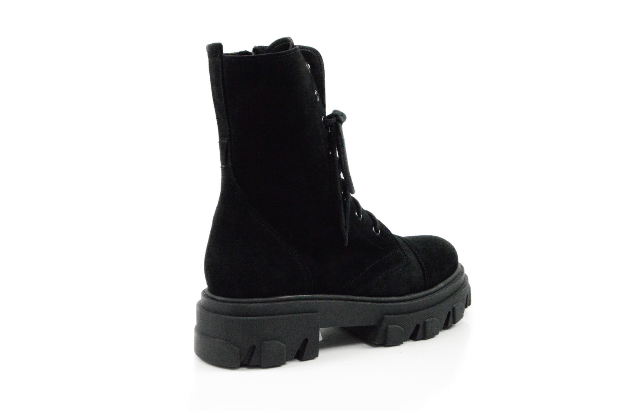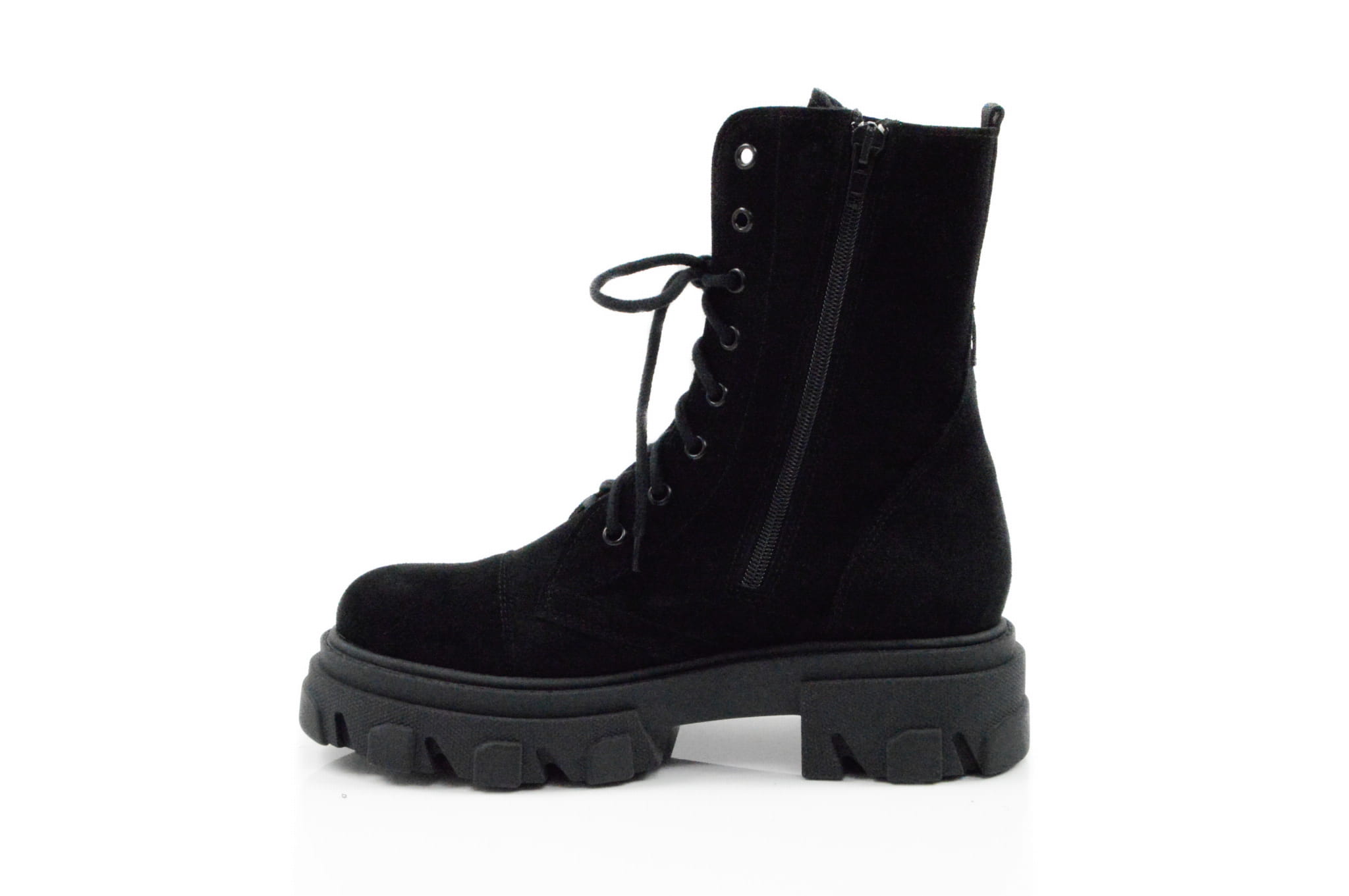 Czarne welurowe botki damskie gruba wysoka podeszwa sznurowane i na zamek skóra naturalna