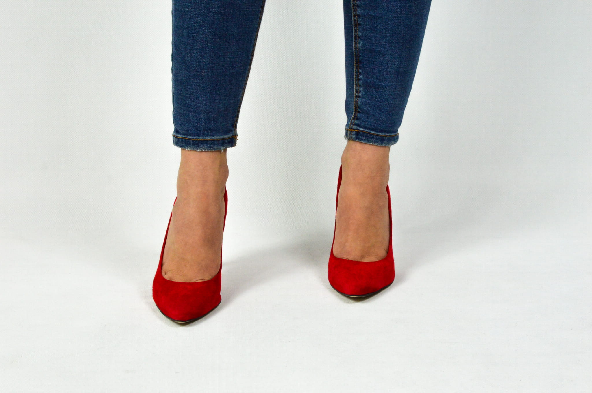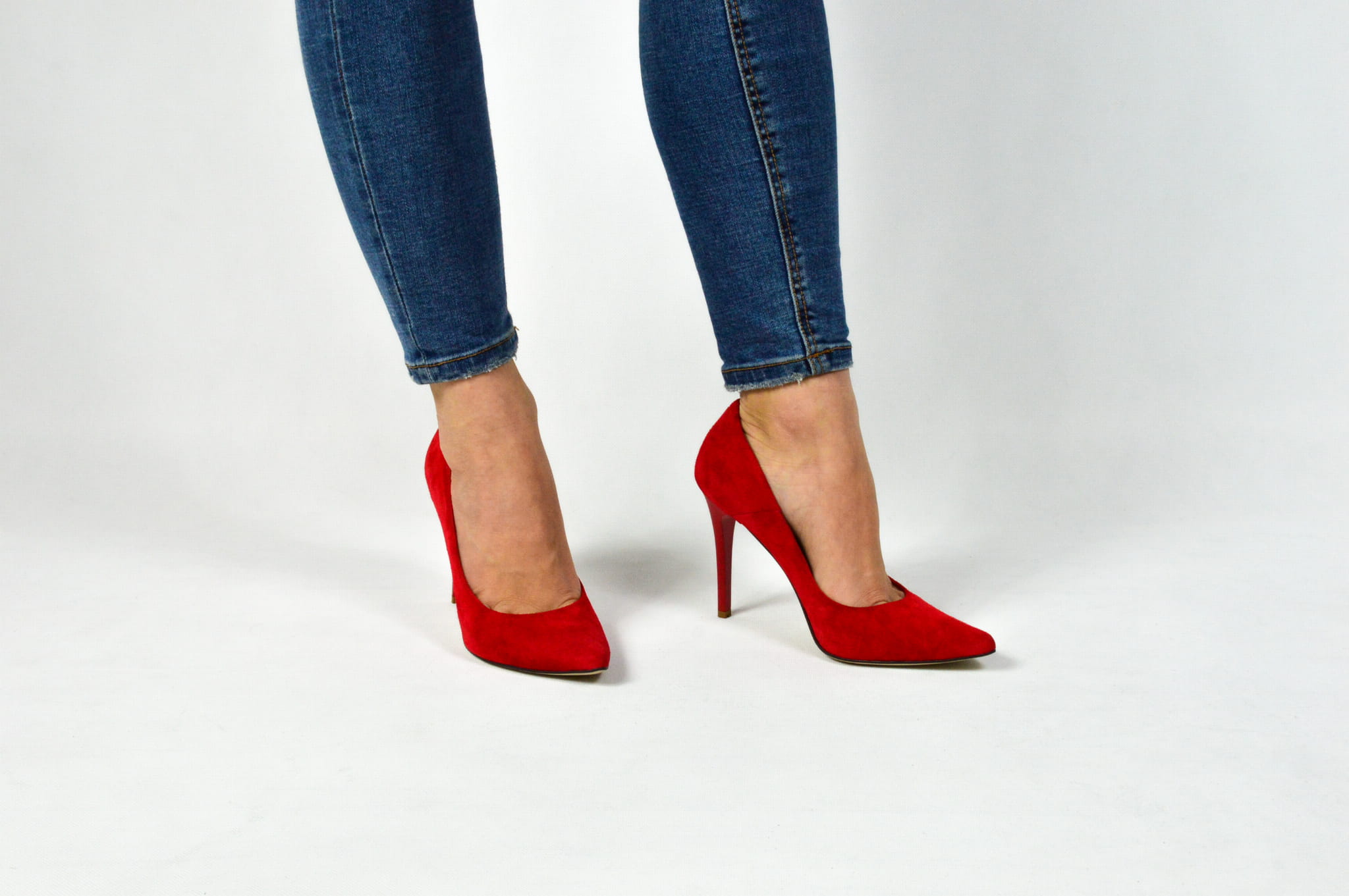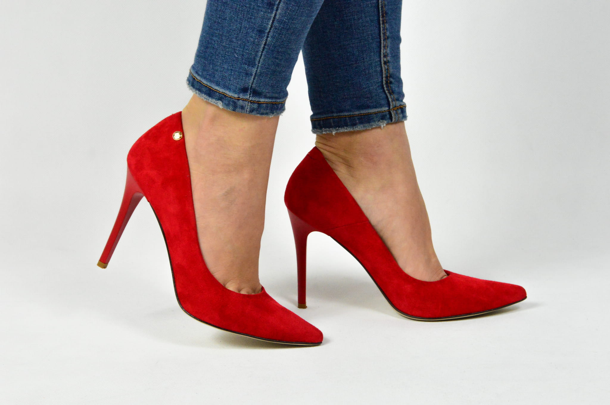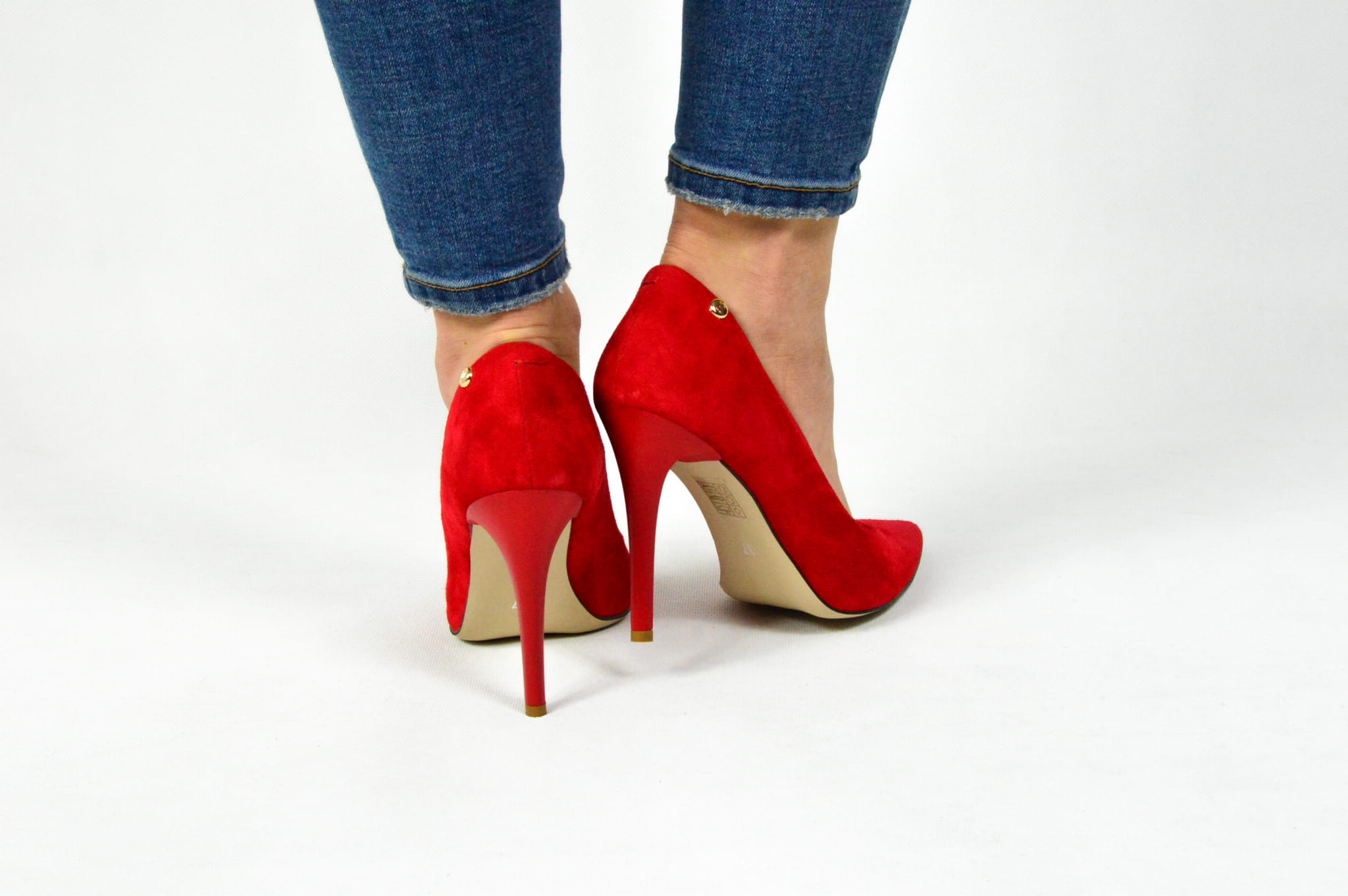 Czerwone czółenka skórzane zamszowe na szpilce