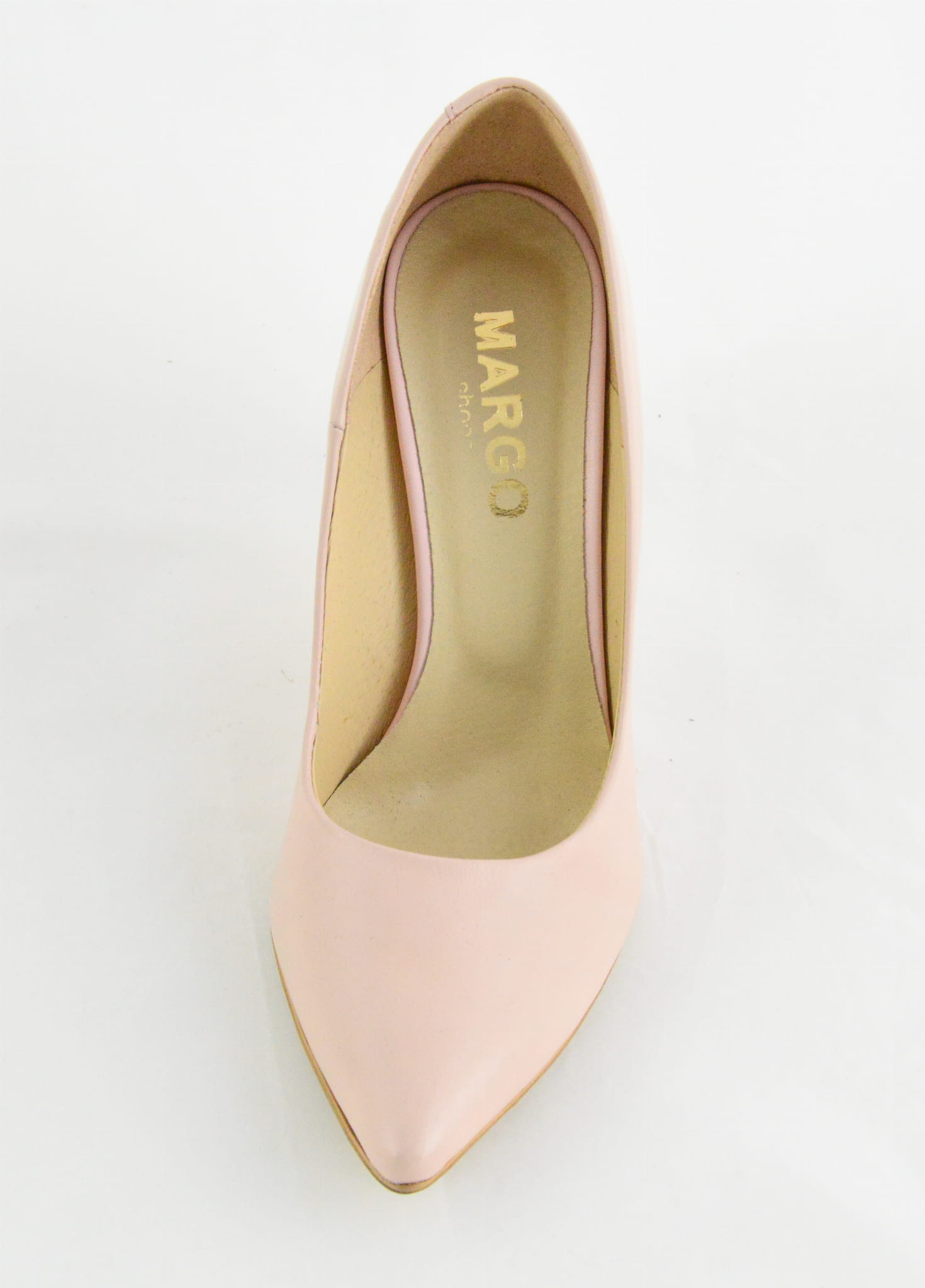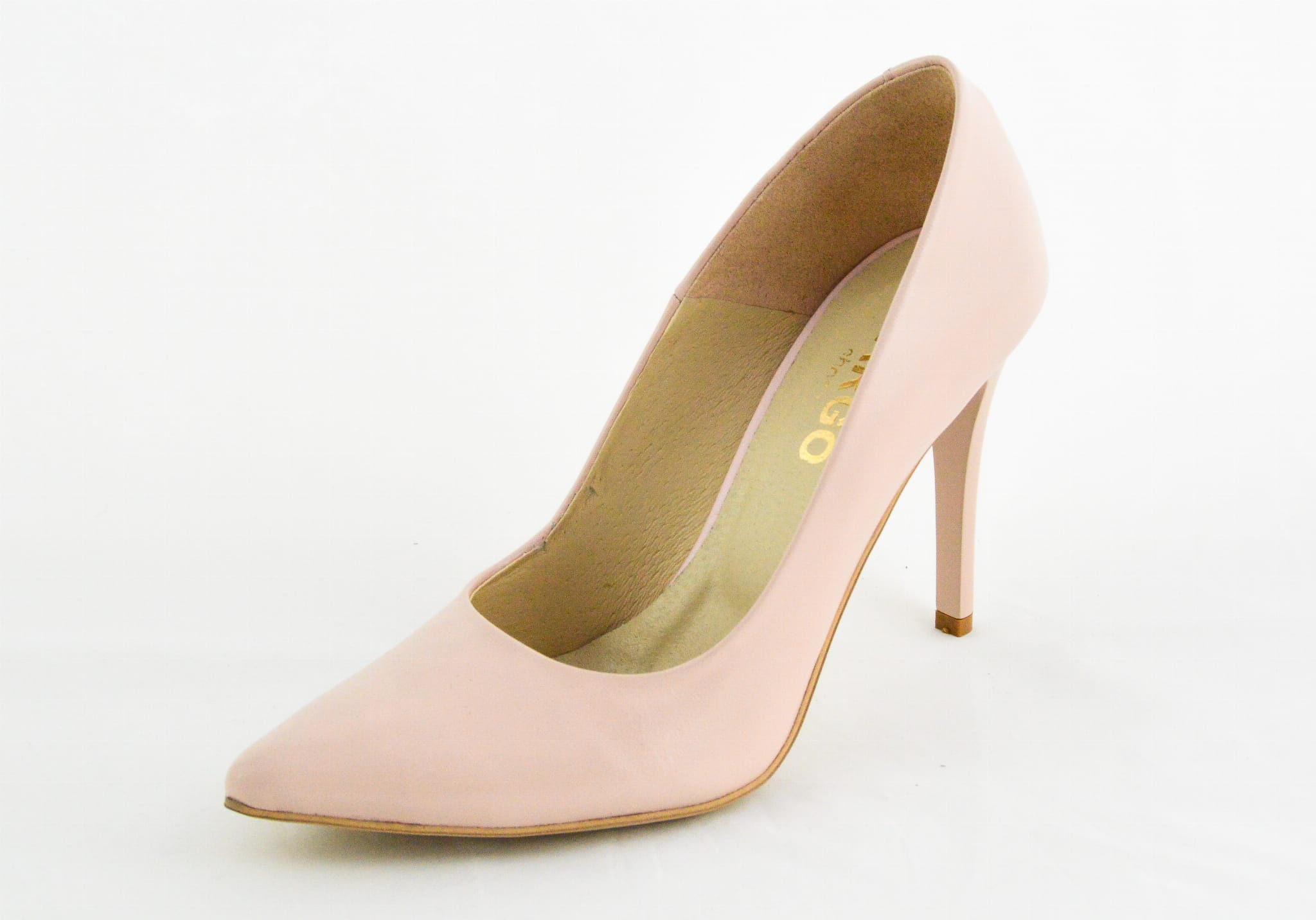 Eleganckie pudrowe czółenka skórzane na szpilce