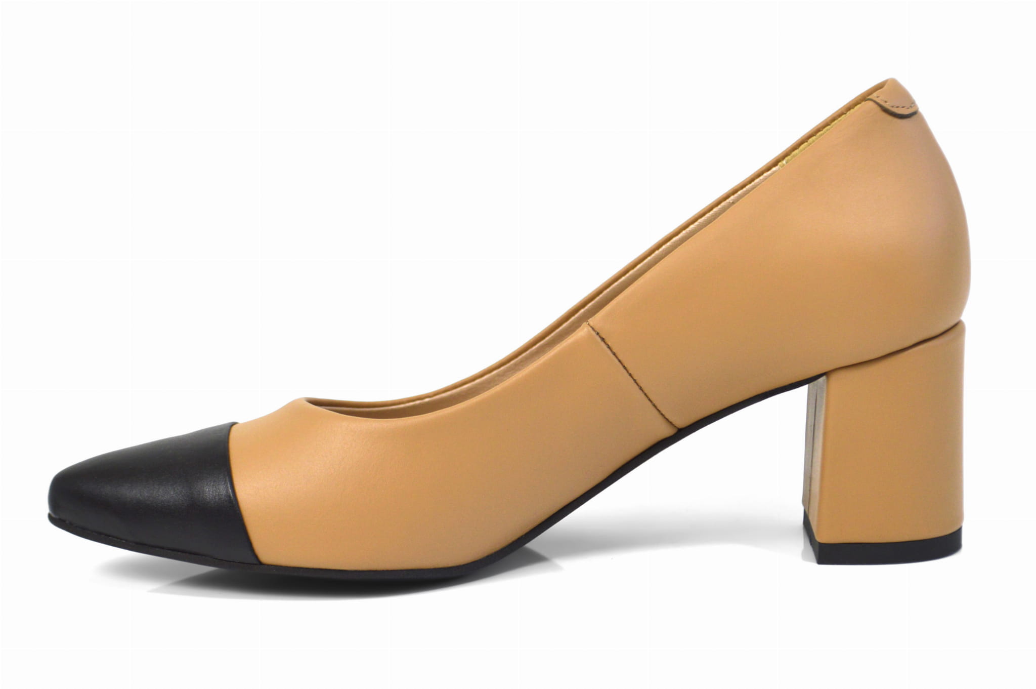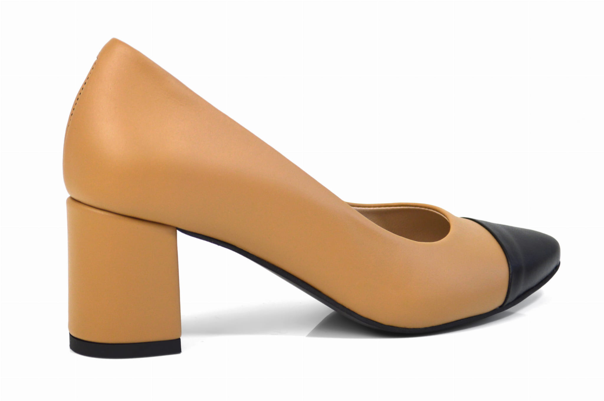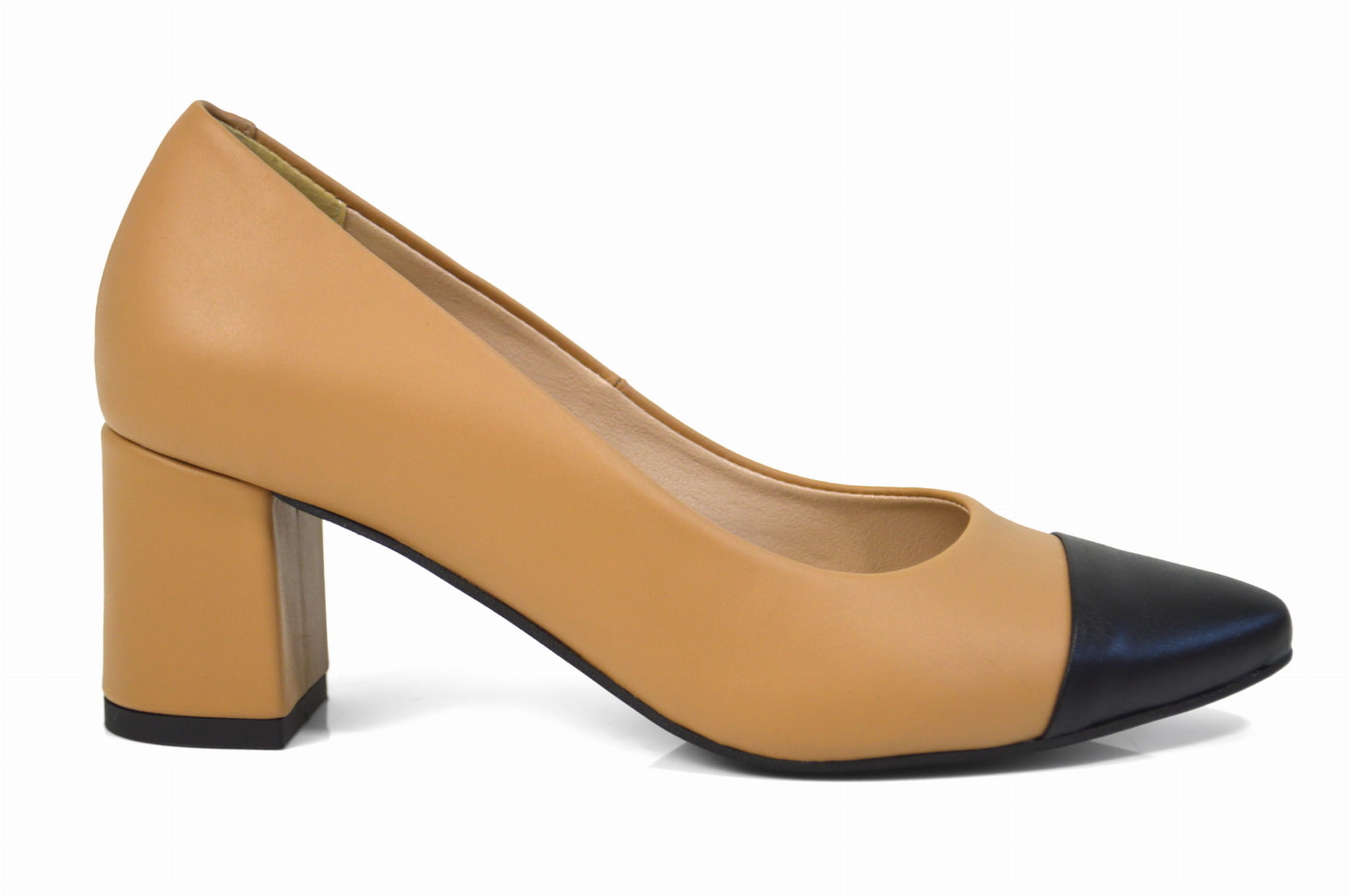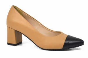 Jasne brązowe czółenka skórzane lico na klocku