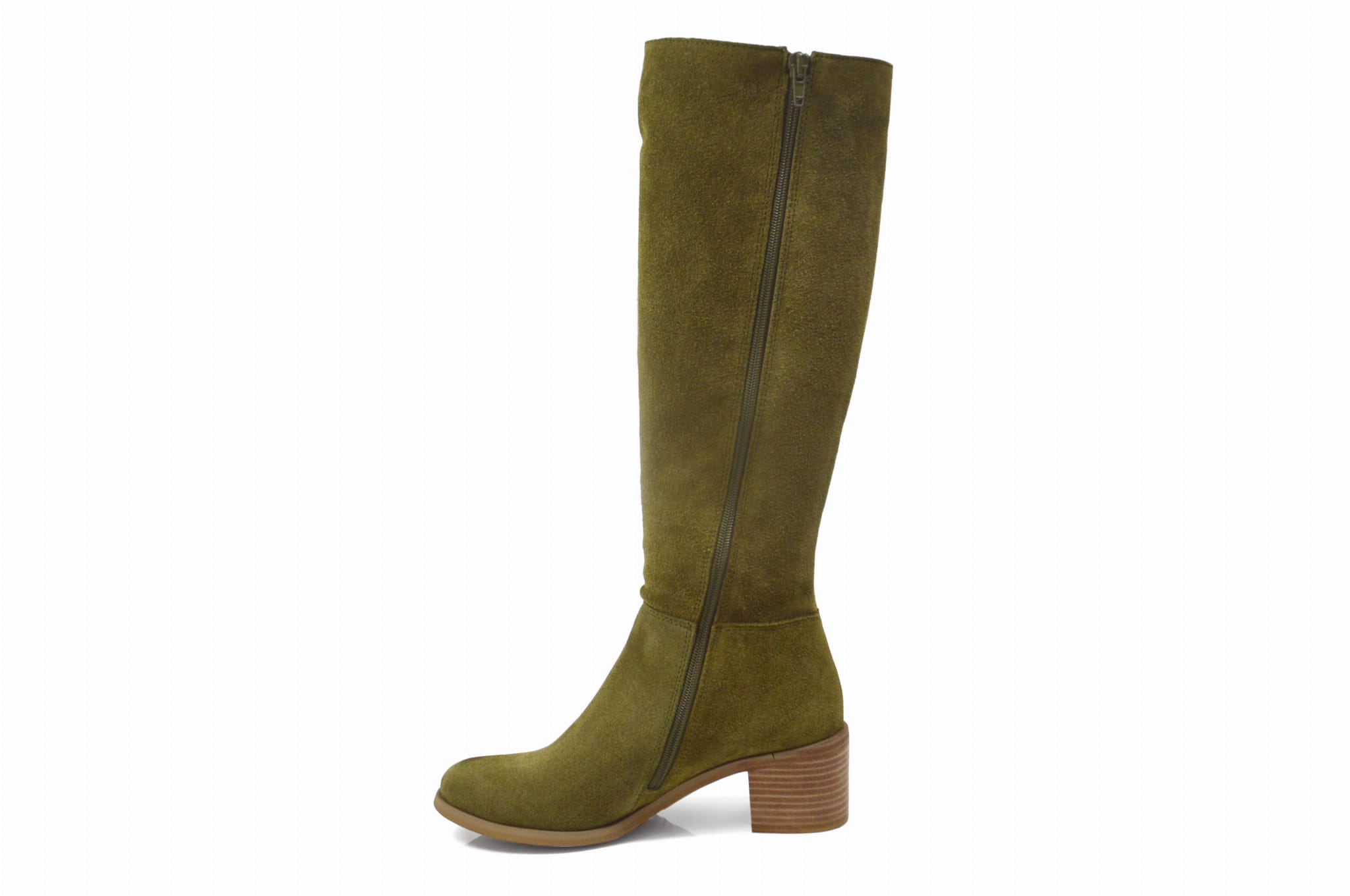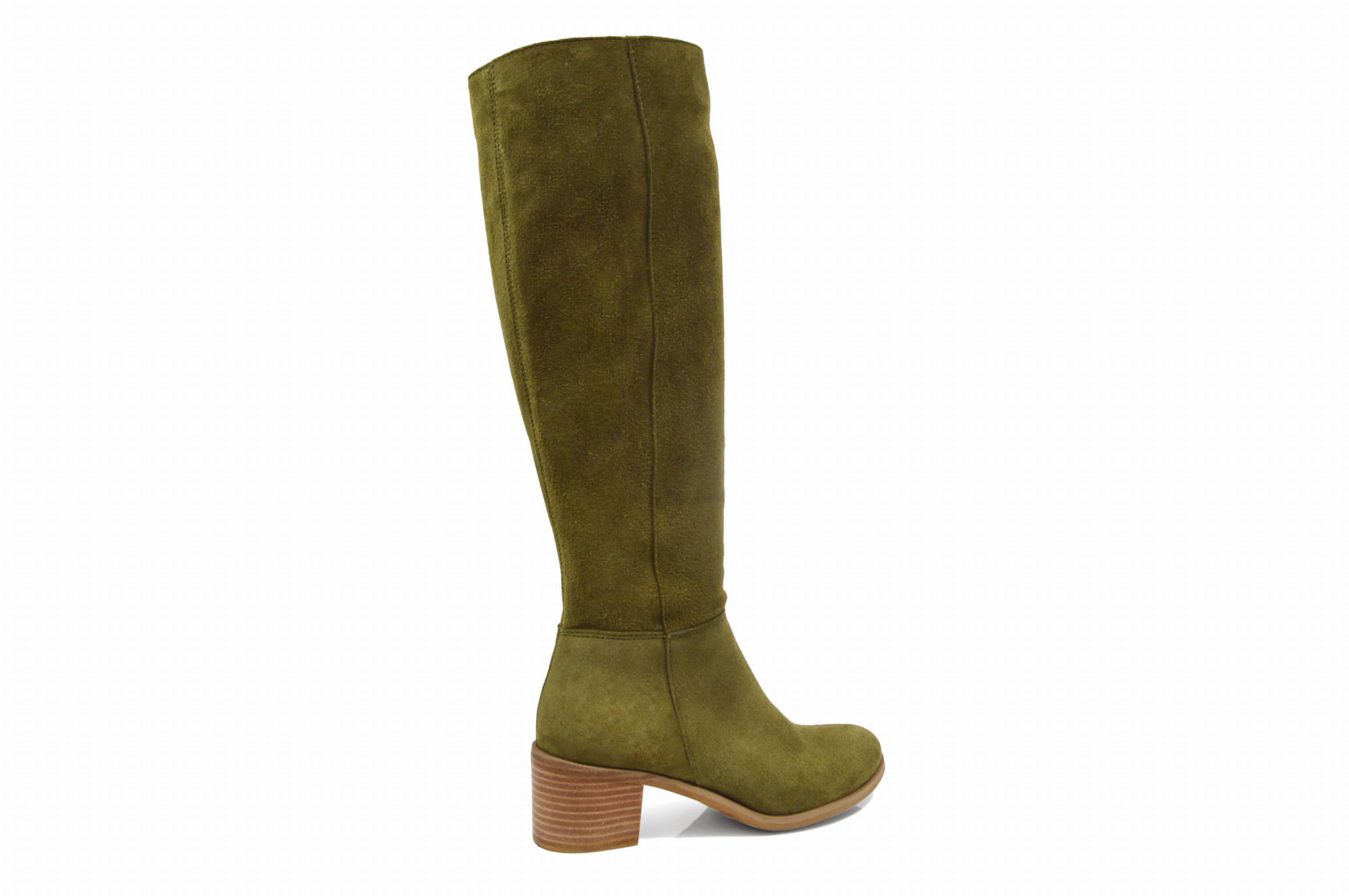 Khaki kozaki skórzane welurowe na klocku