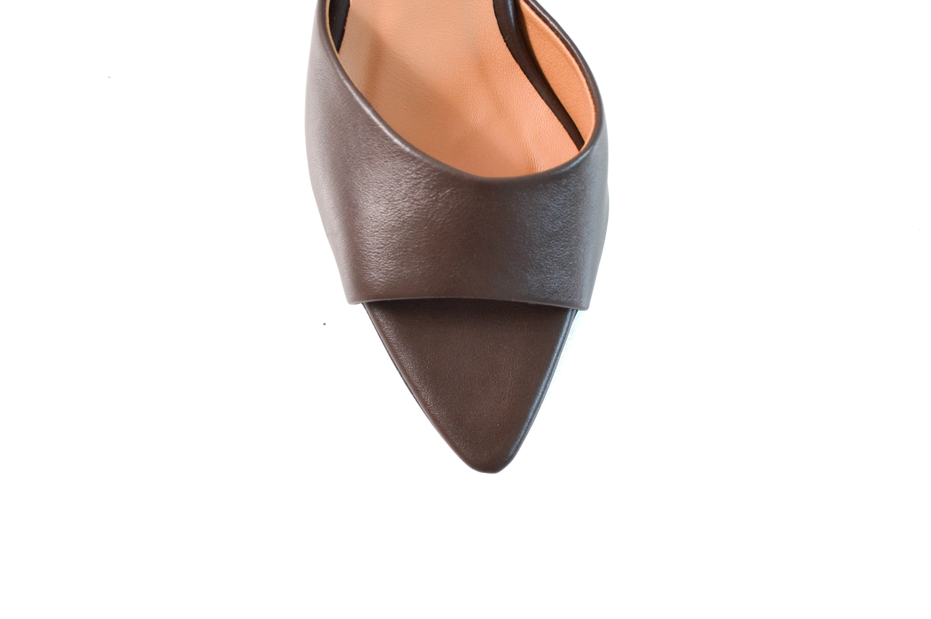 Czekoladowe klapki skórzane z ostrym noskiem – stylowy detal na każdą okazję