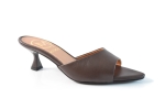 Te wyjątkowe klapki damskie w odcieniu czekoladowego brązu to połączenie nowoczesnego minimalizmu z klasyczną elegancją. Wykonane z wysokiej jakości naturalnej skóry licowej, zachwycają subtelnym połyskiem, trwałością oraz perfekcyjnym wykończeniem. Głęboki kolor czekolady dodaje obuwiu luksusowego charakteru i sprawia, że model wyróżnia się na tle klasycznych propozycji. Rozkloszowana szpilka o wysokości 5 cm zapewnia stabilność i komfort, jednocześnie podkreślając kobiecą sylwetkę. Ostry nosek optycznie wysmukla stopę i nadaje całości eleganckiej lekkości.