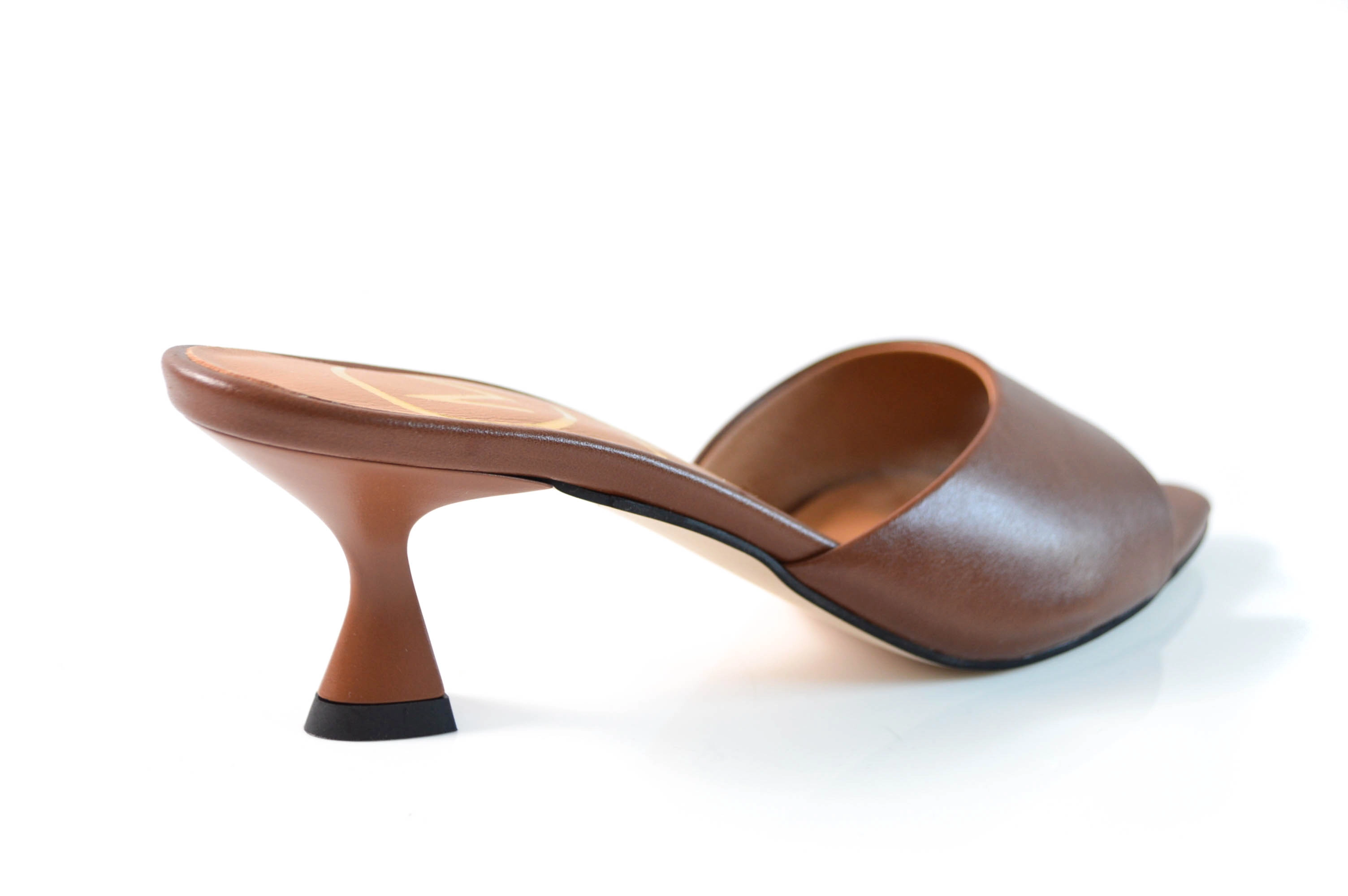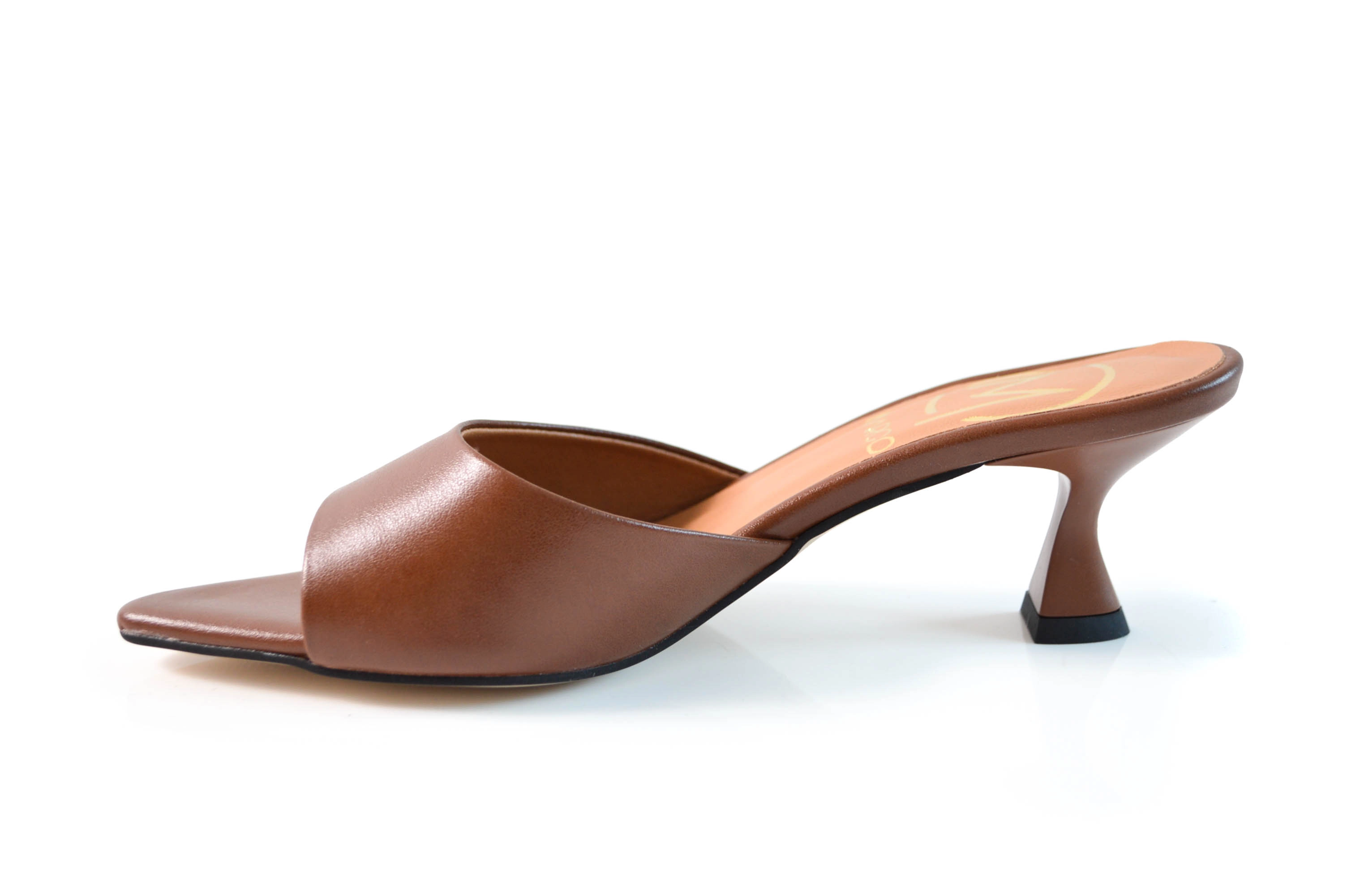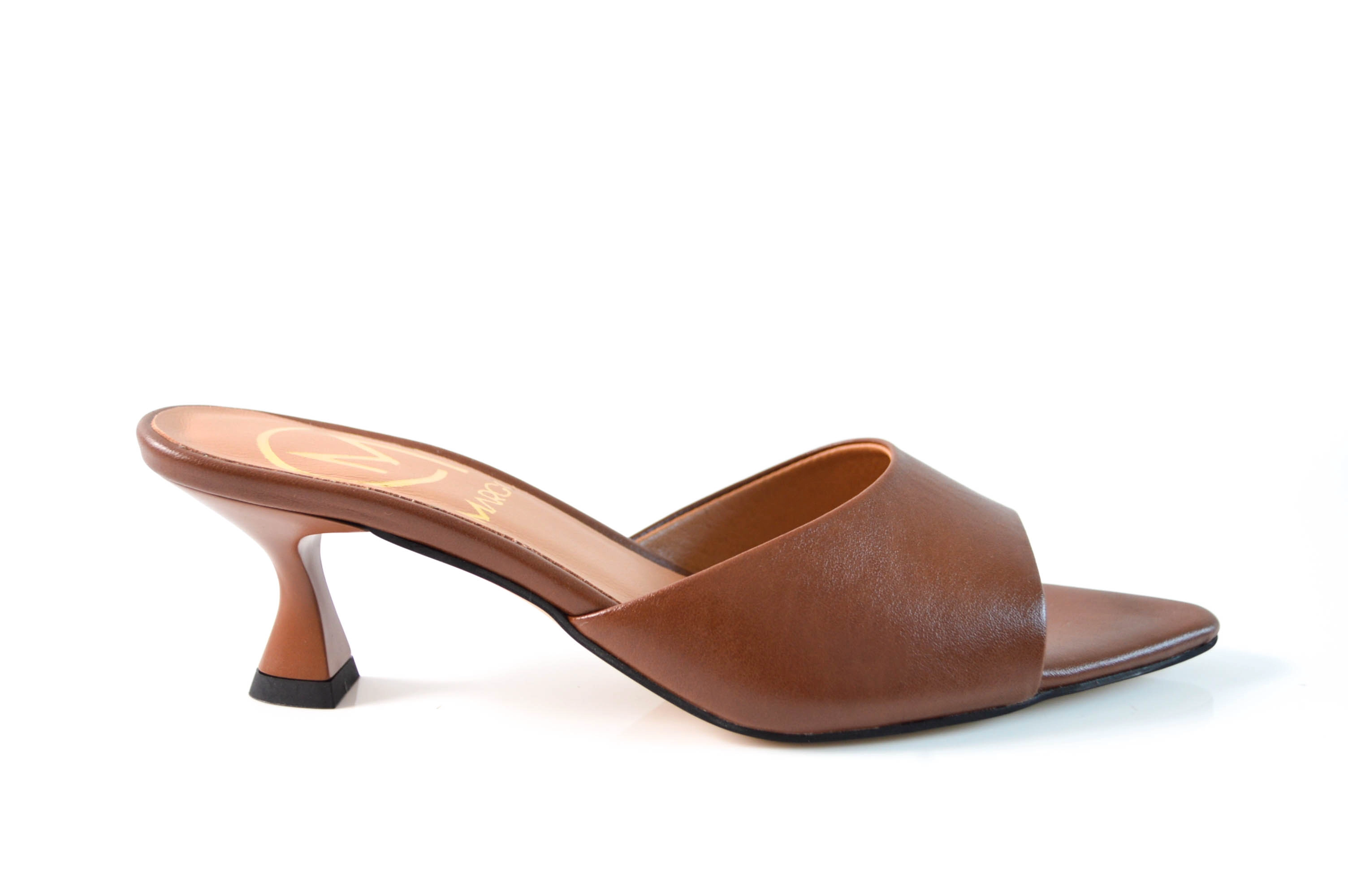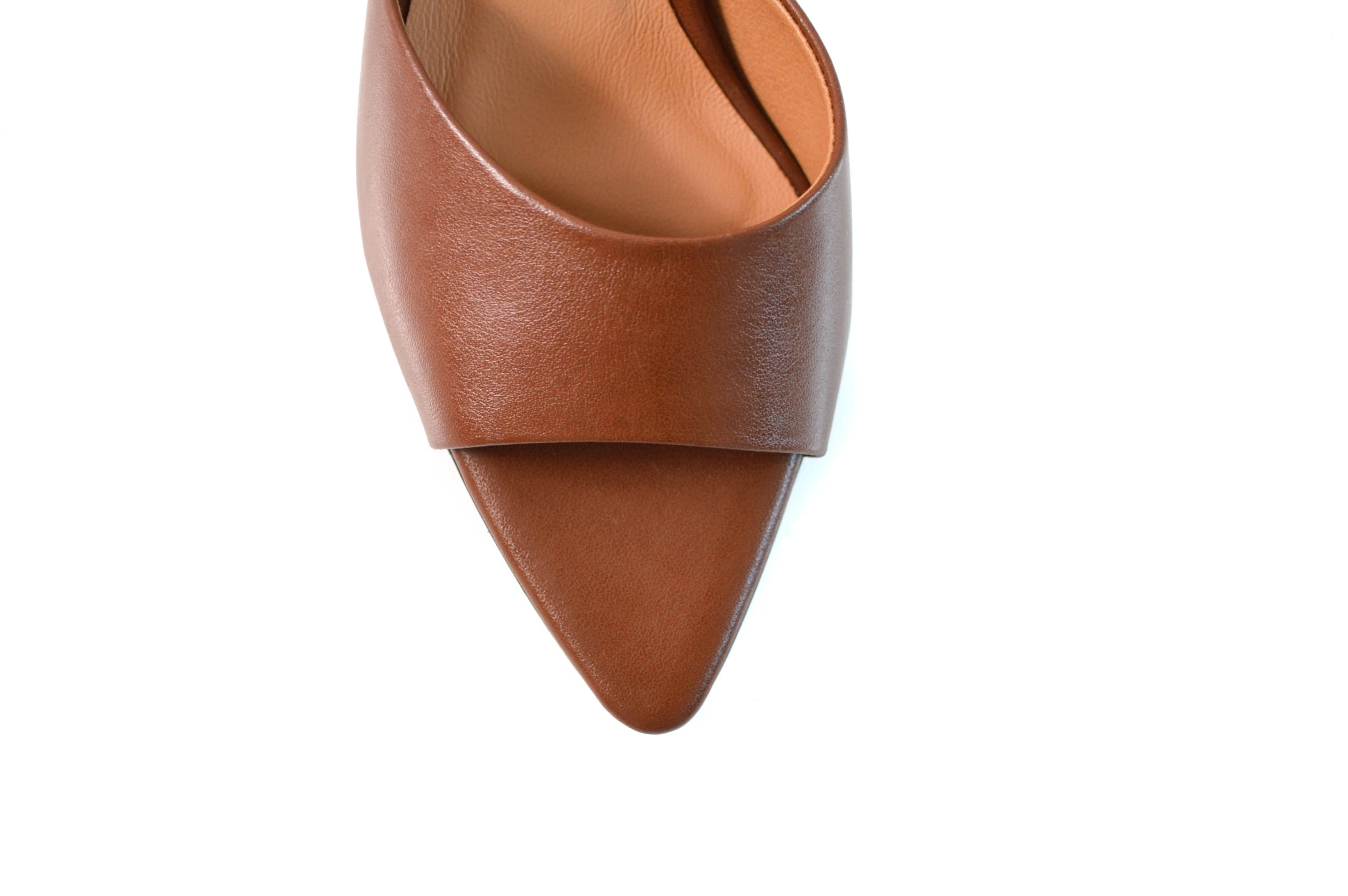 Klapki skórzane w szpic obcas niska szpilka skóra brązowe lico