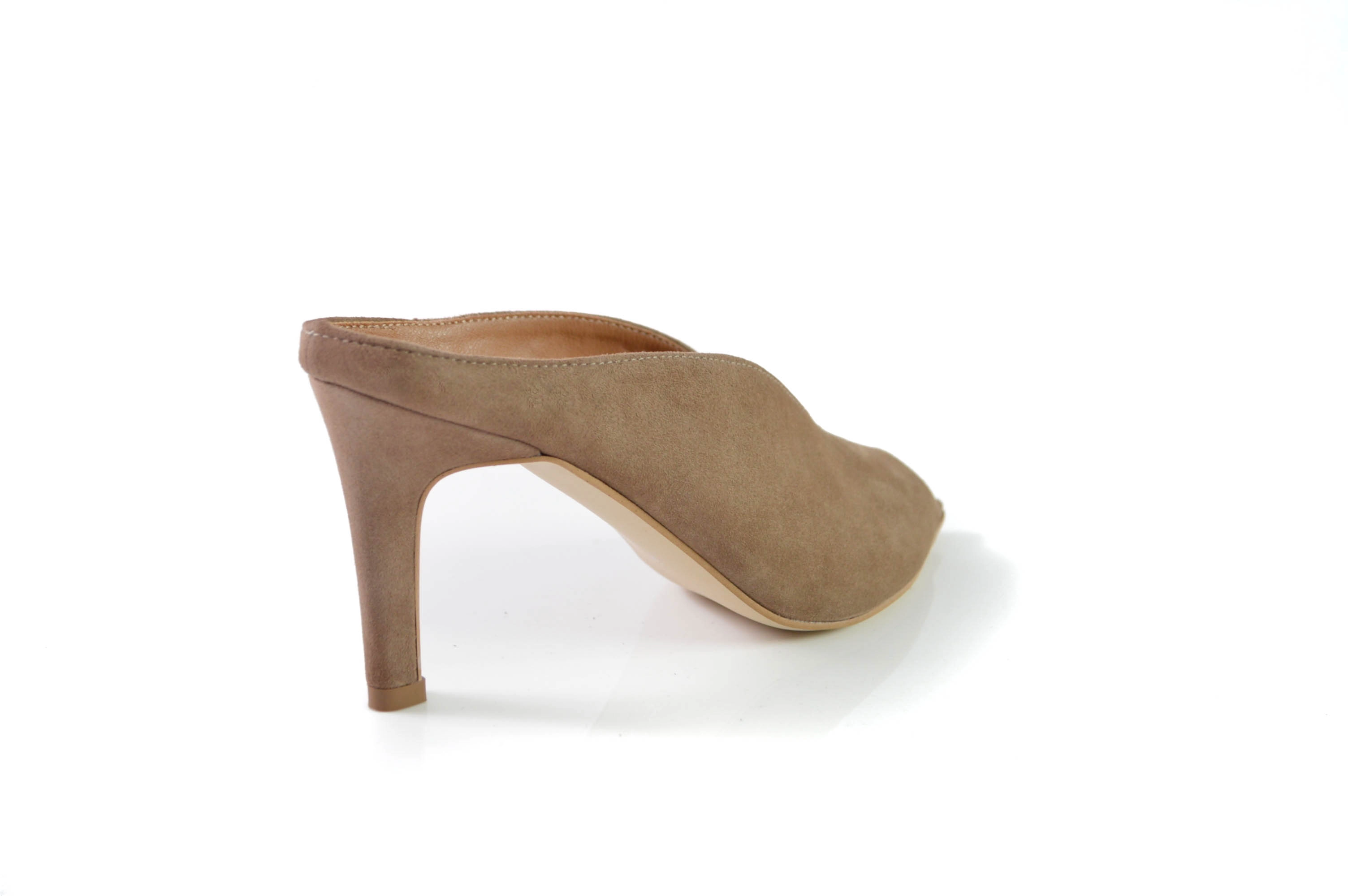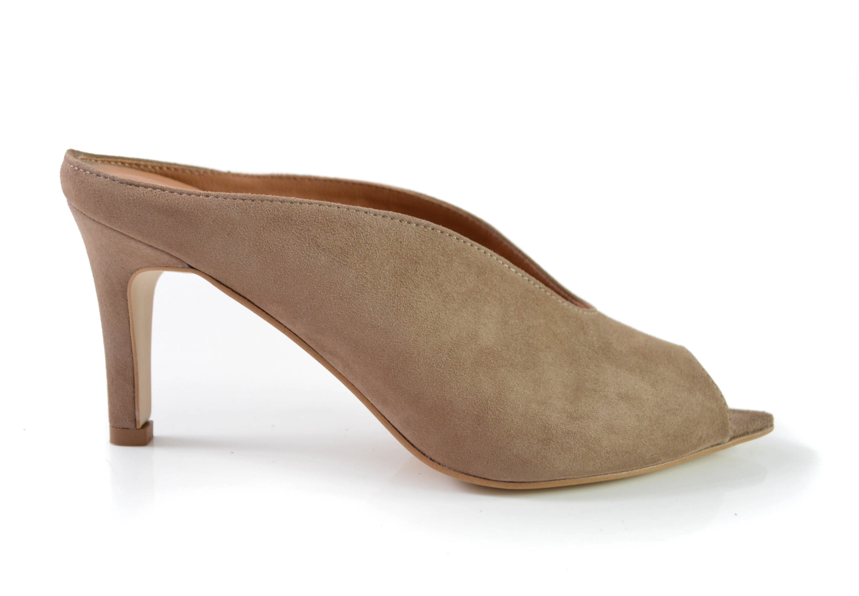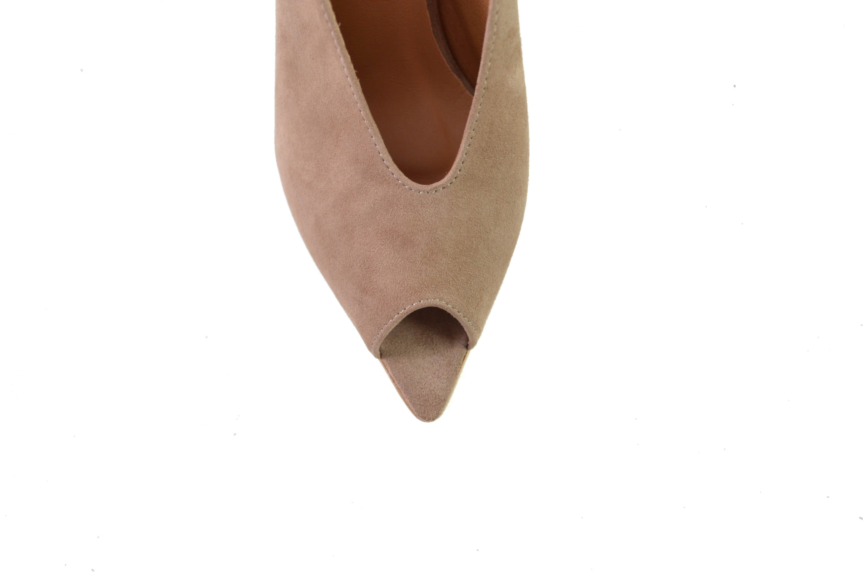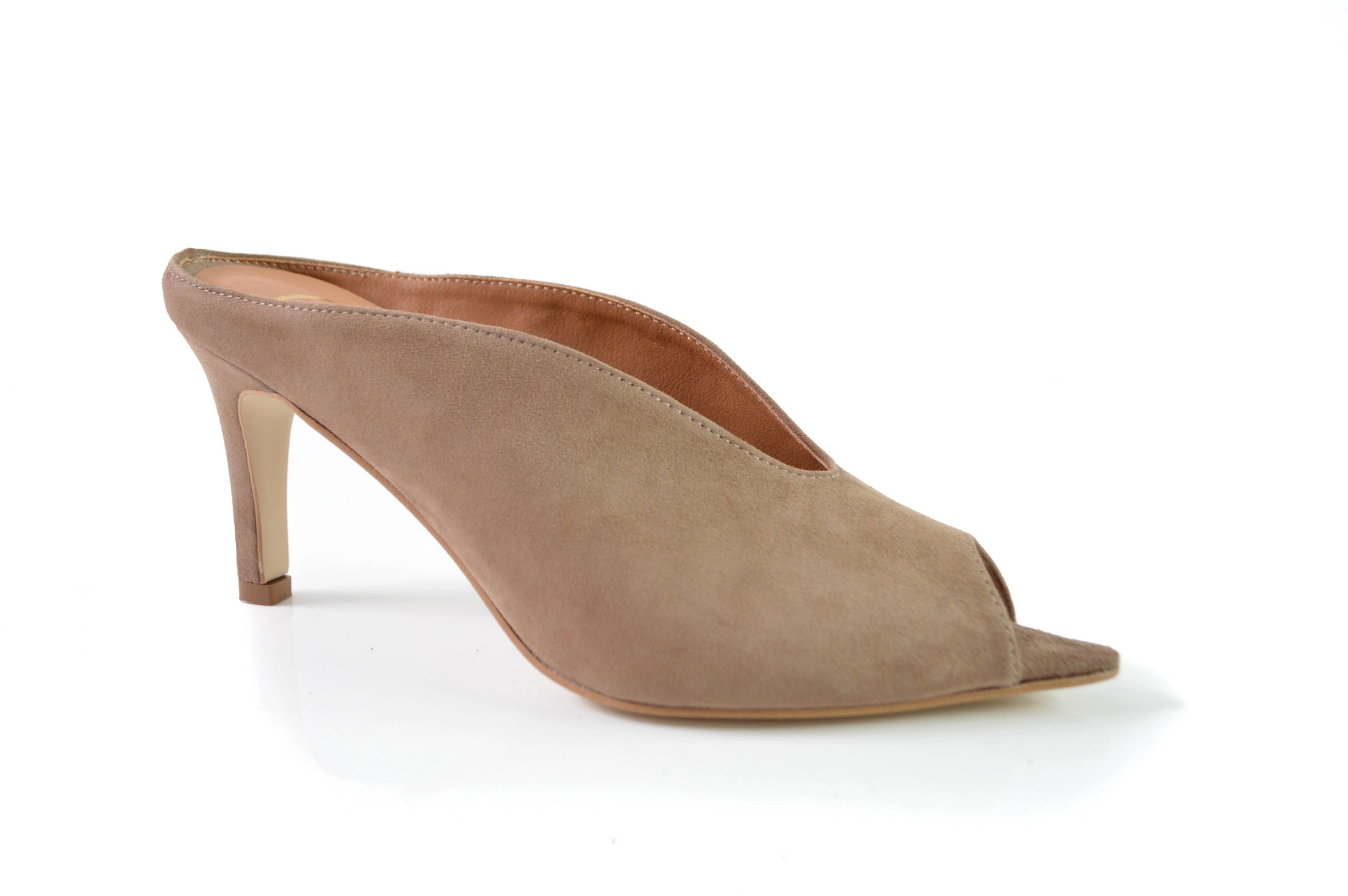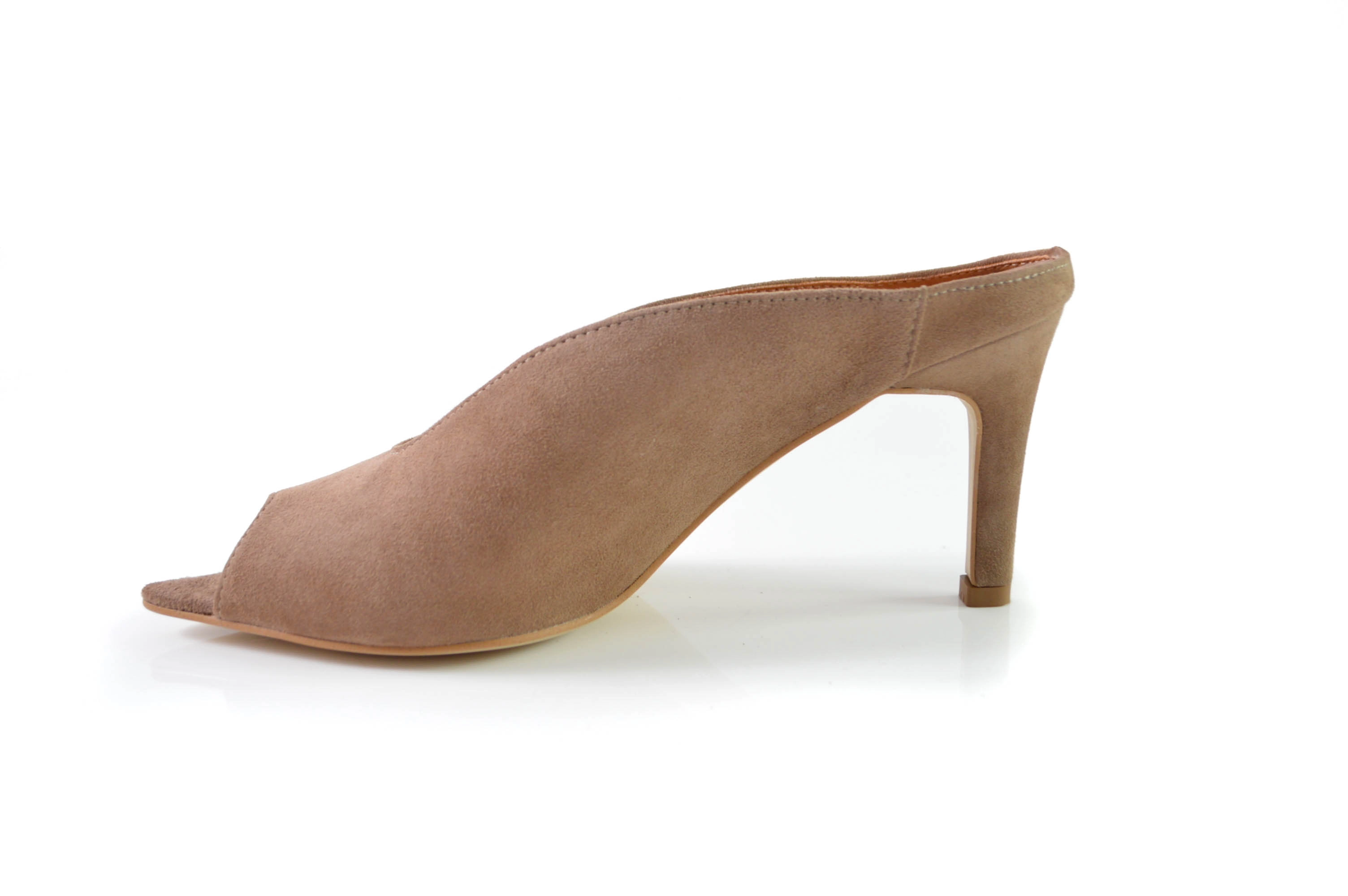 Klapki skórzane w szpic obcas szpilka skóra zamszowa cappuccino