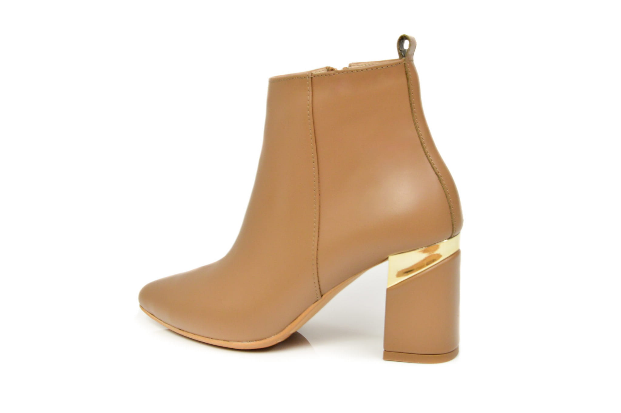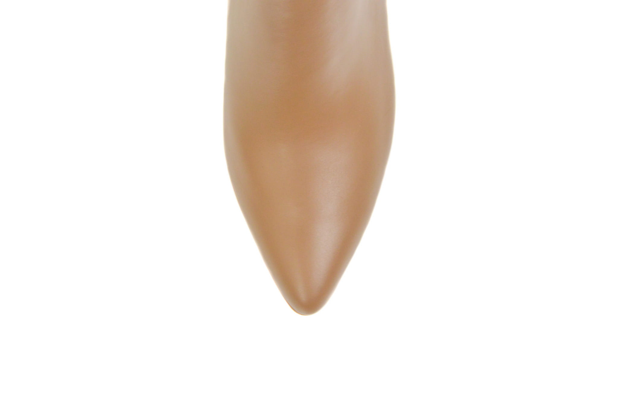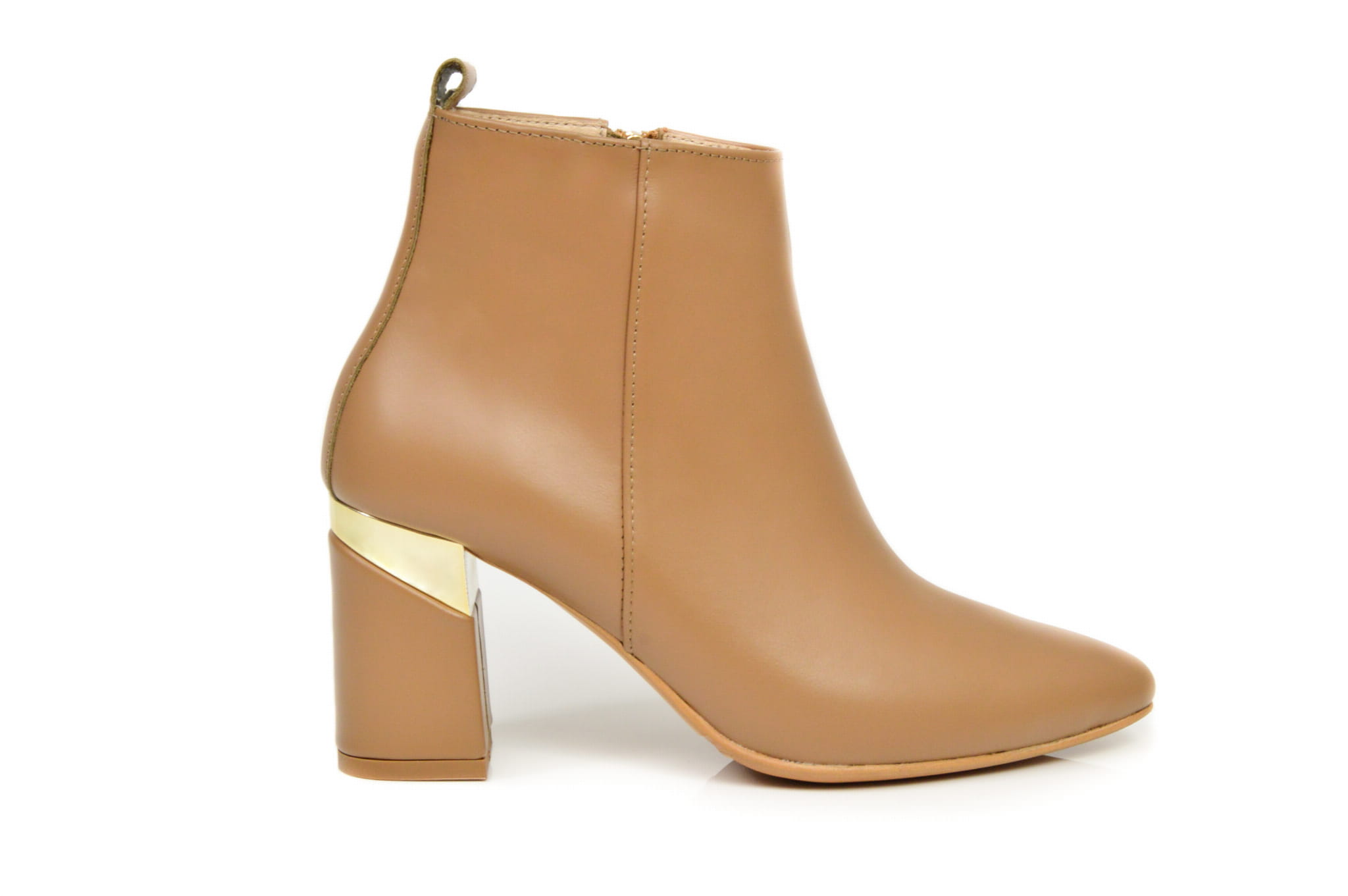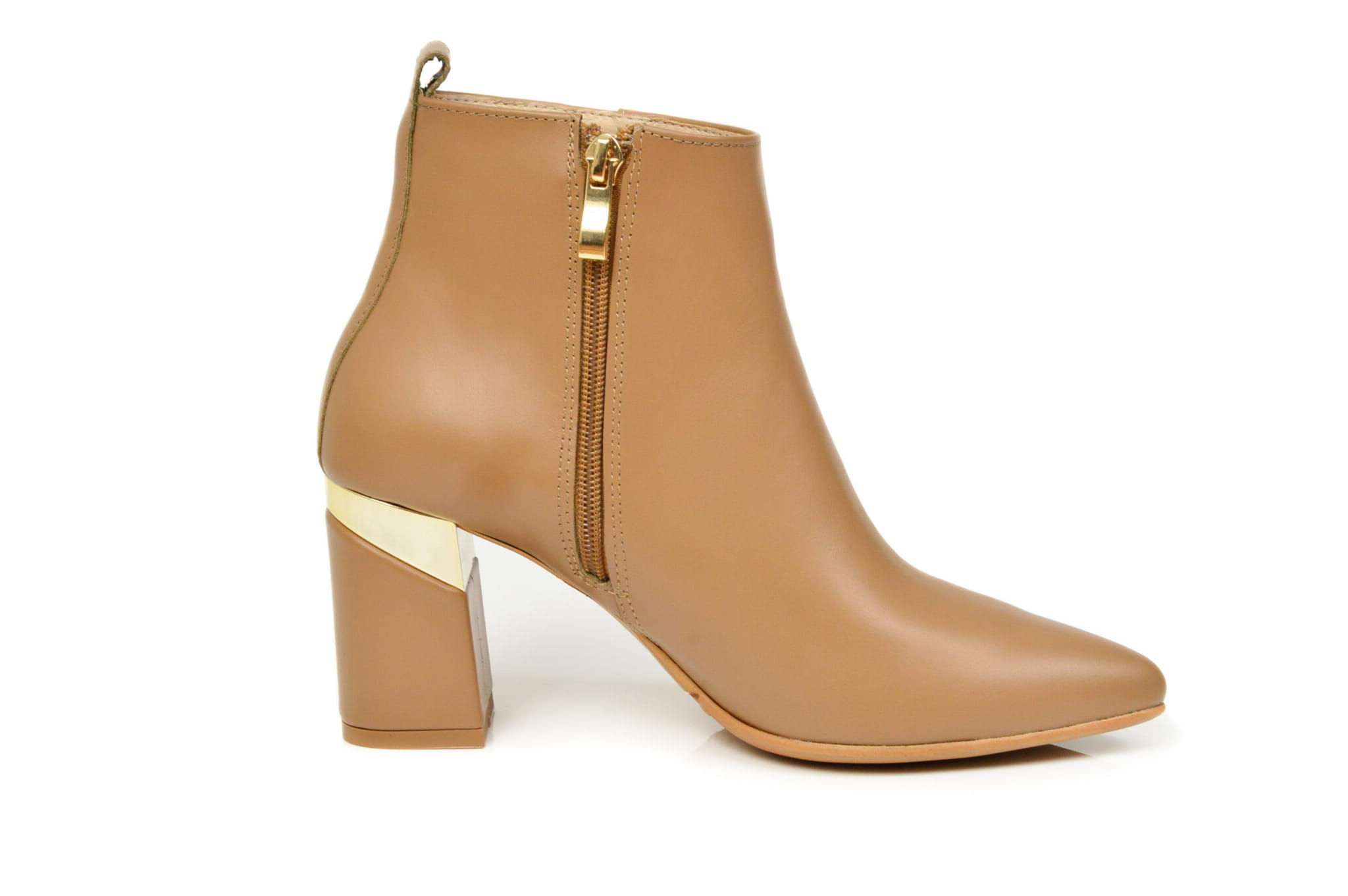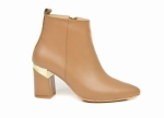 Koniakowe botki ze skóry naturalnej licowej z metalowym obcasem słupkiem w szpic