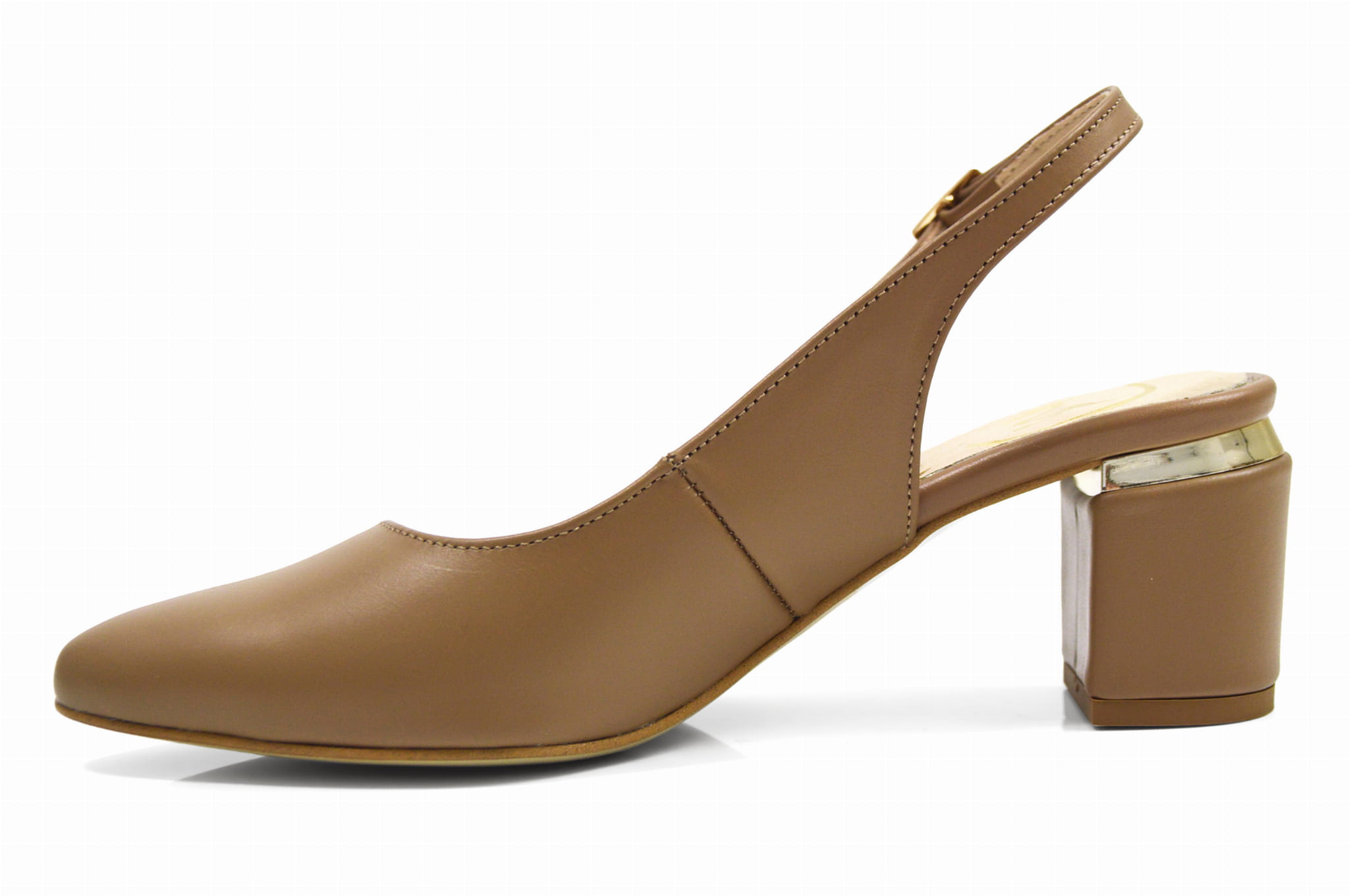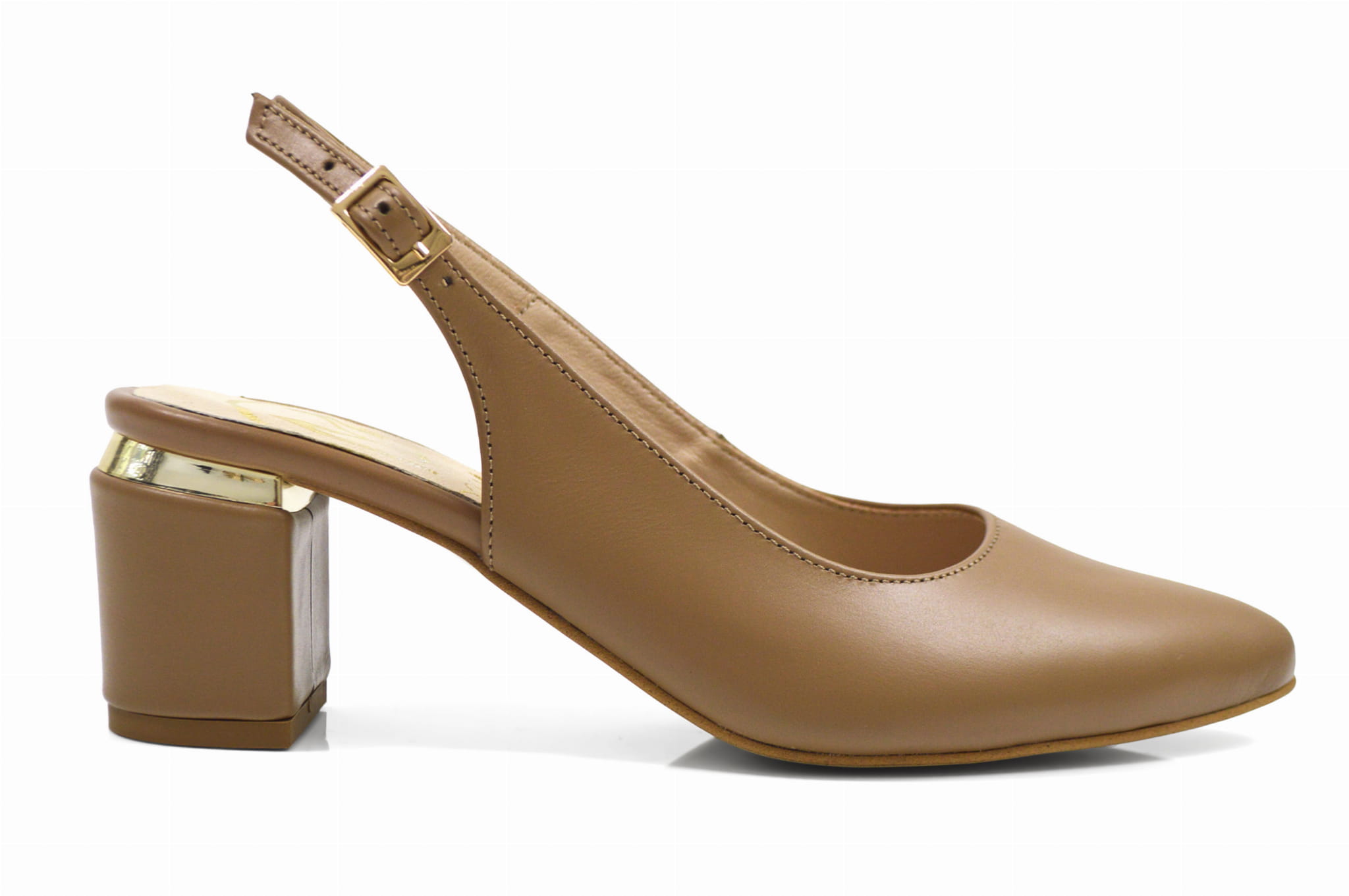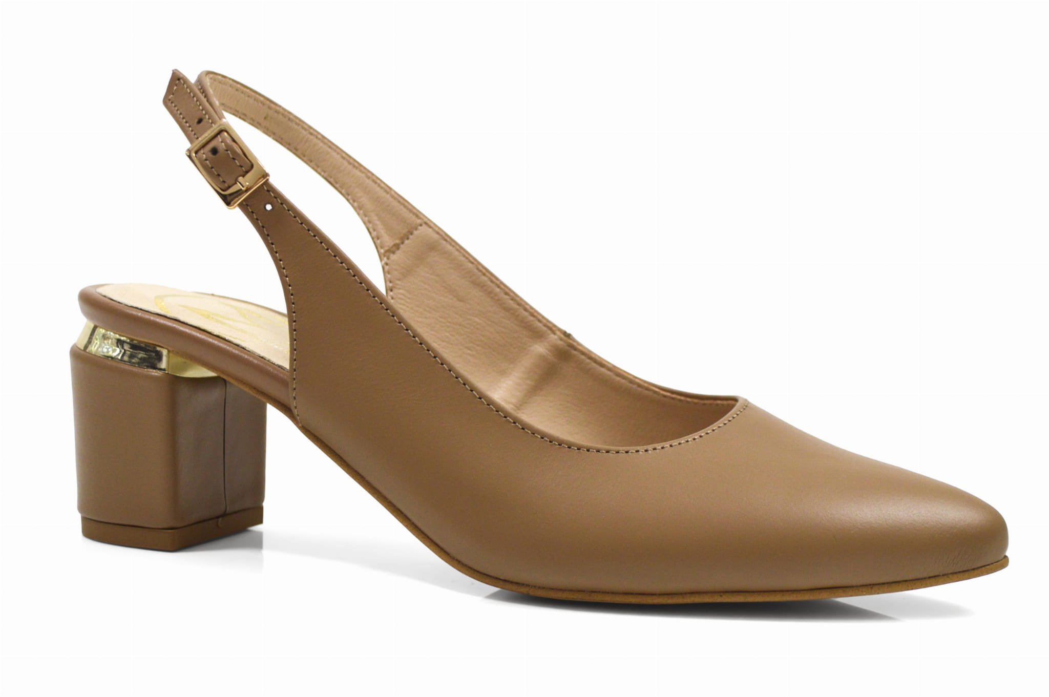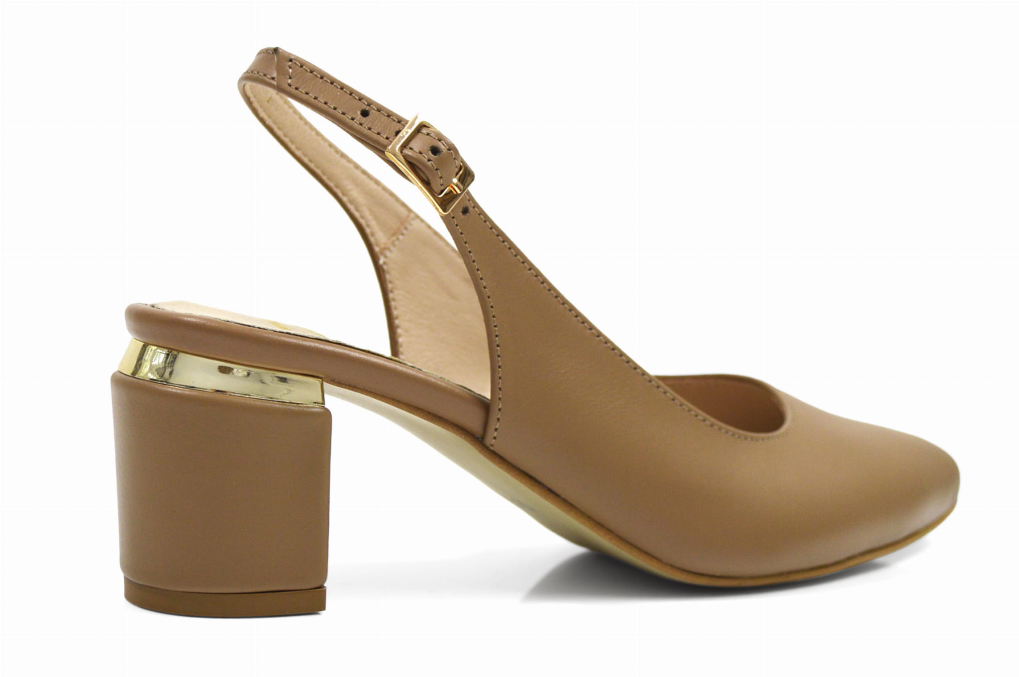 Koniakowe czółenka skórzane na klocku bez pięty
