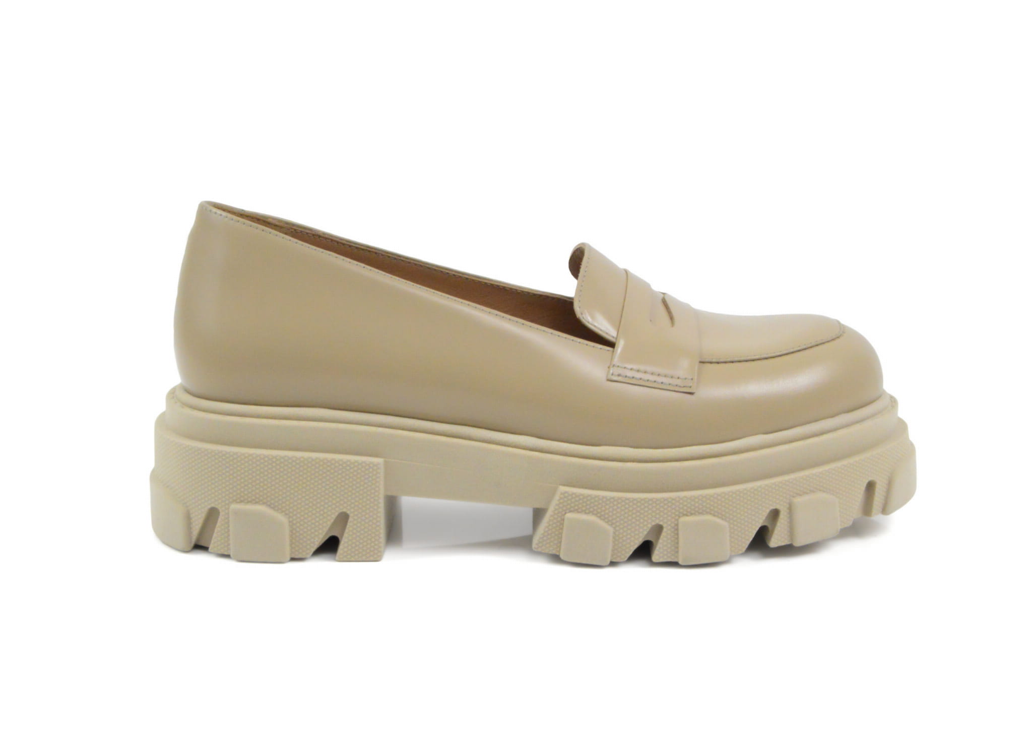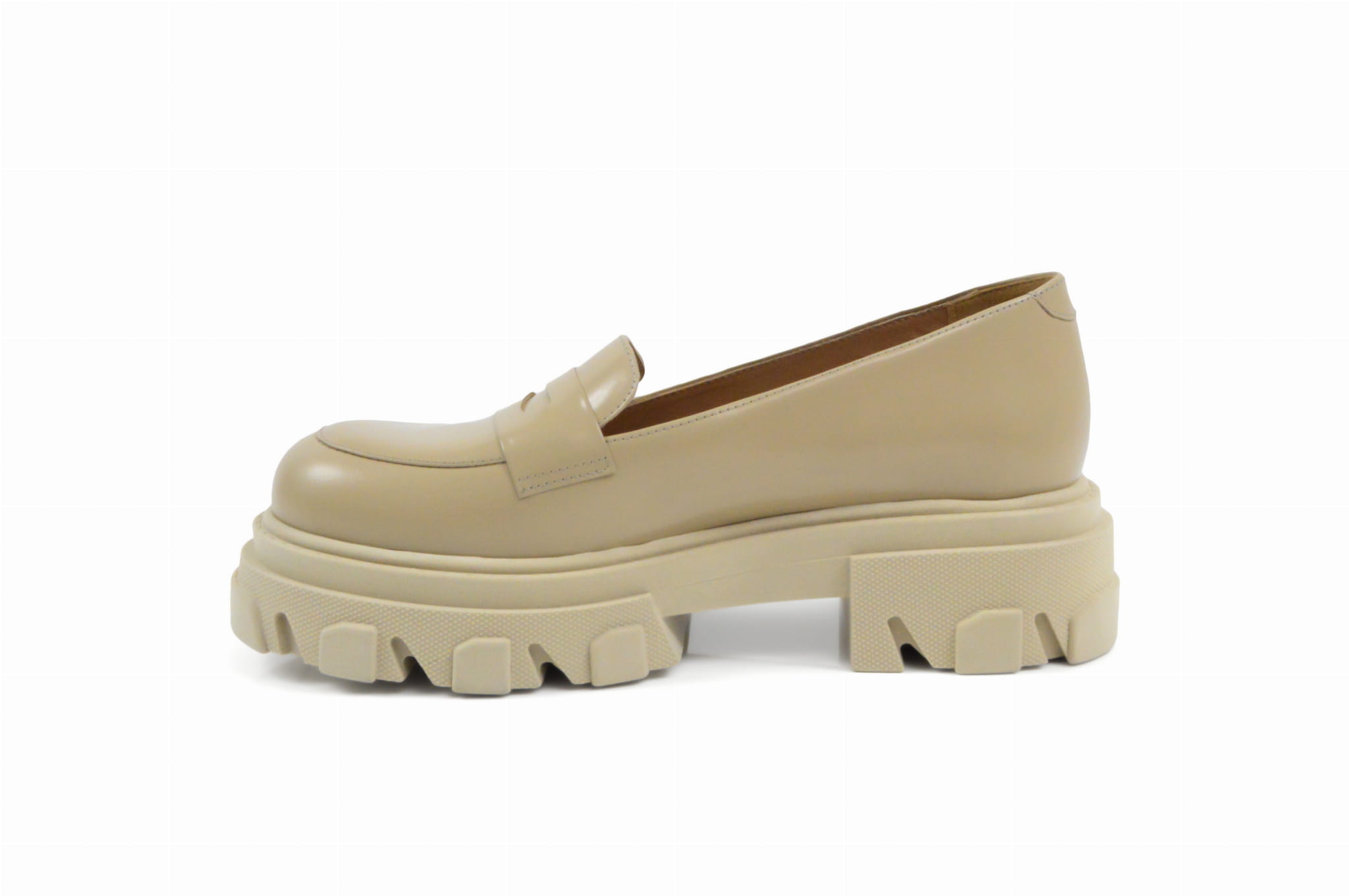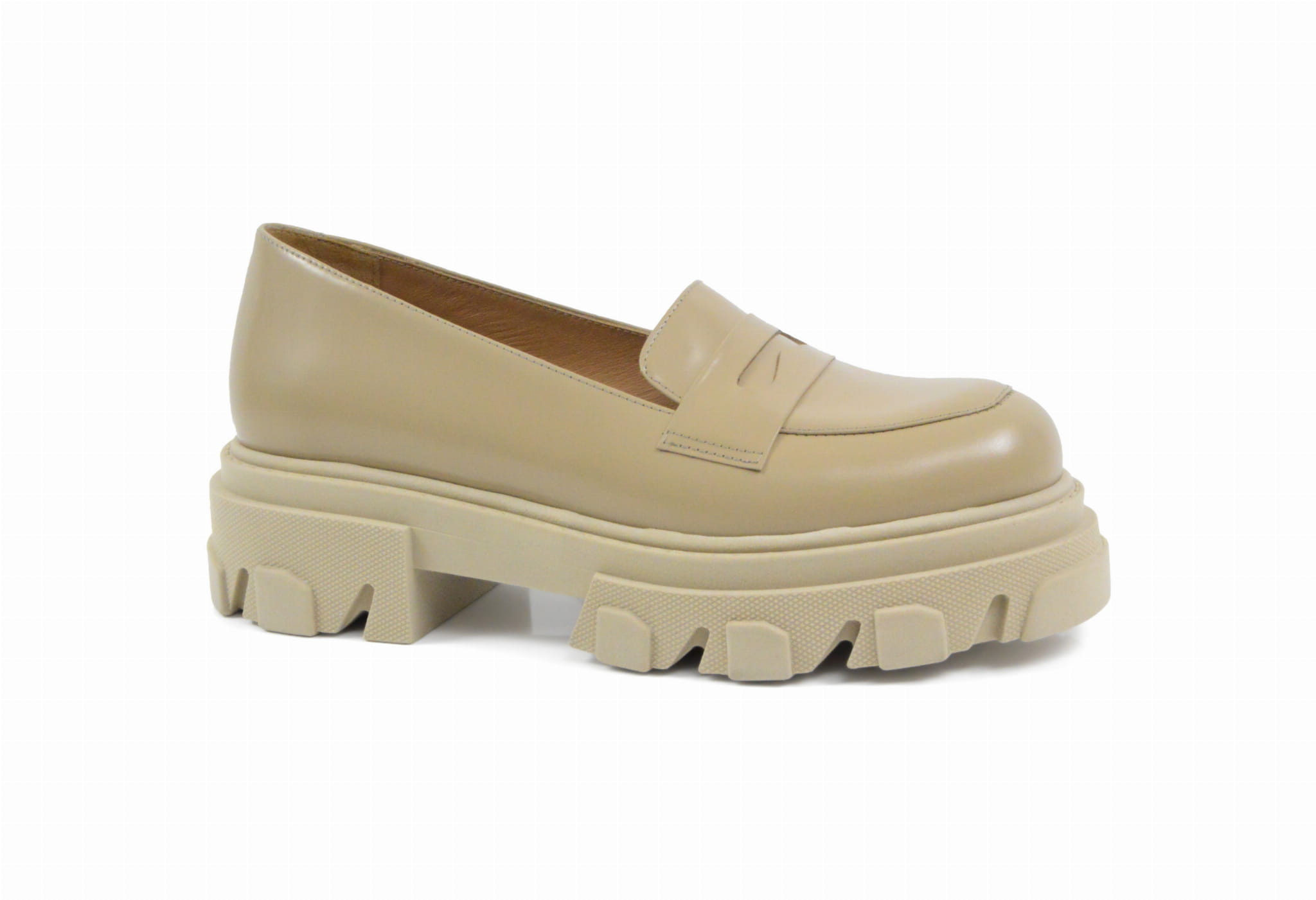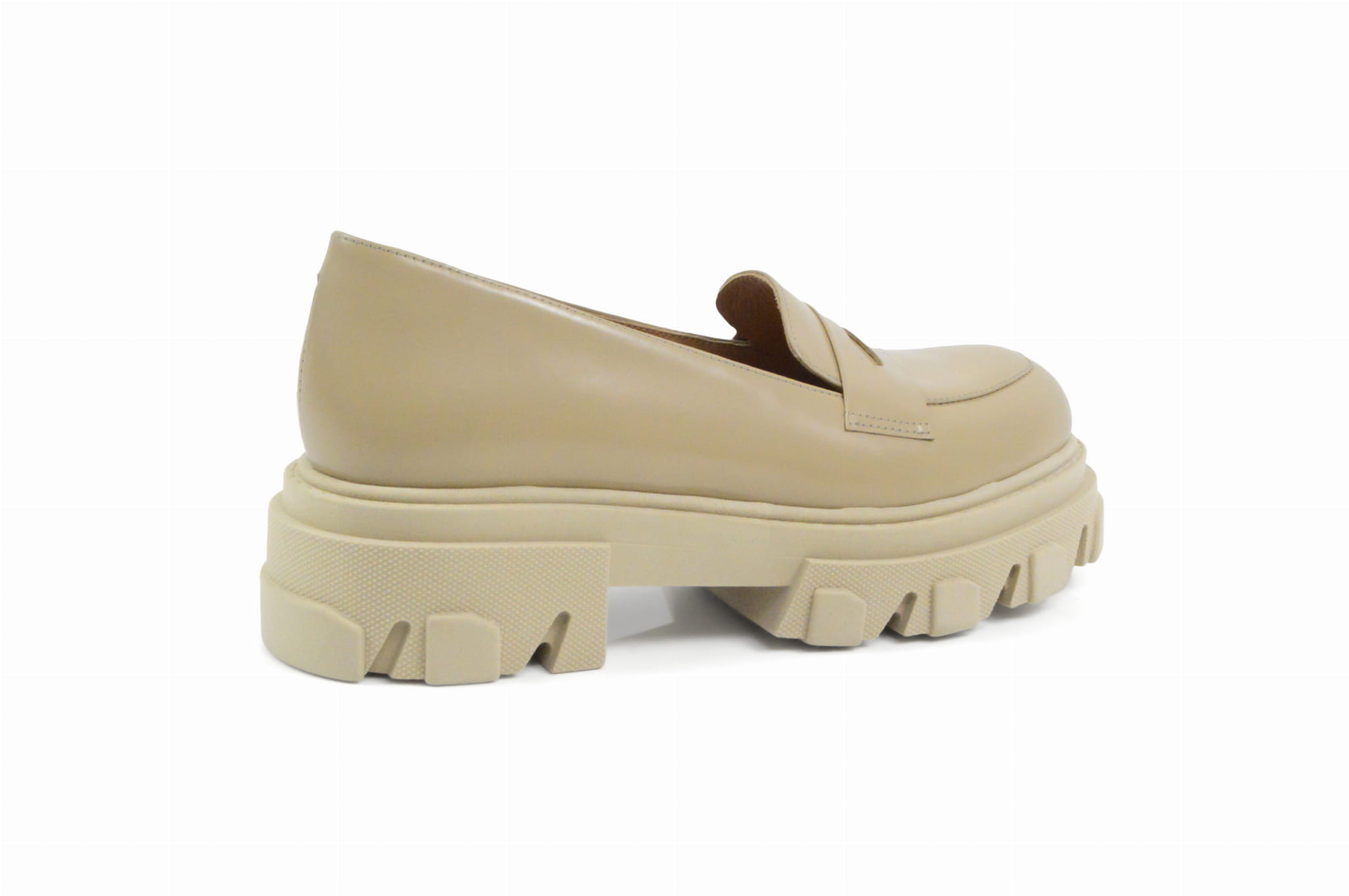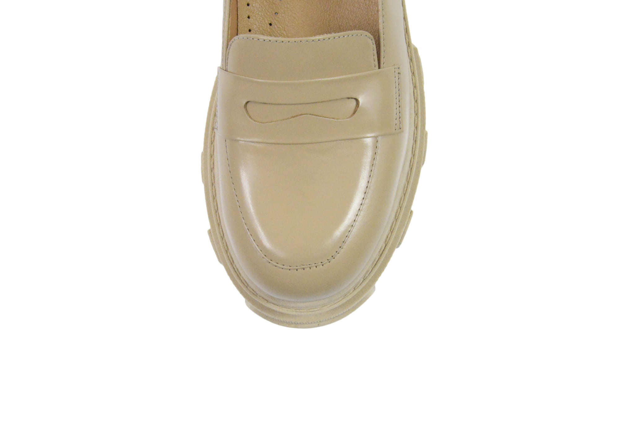 Koniakowe mokasyny na grubej podeszwie ze skóry naturalnej