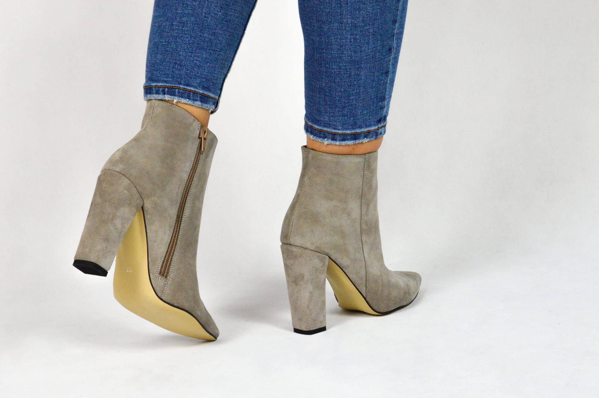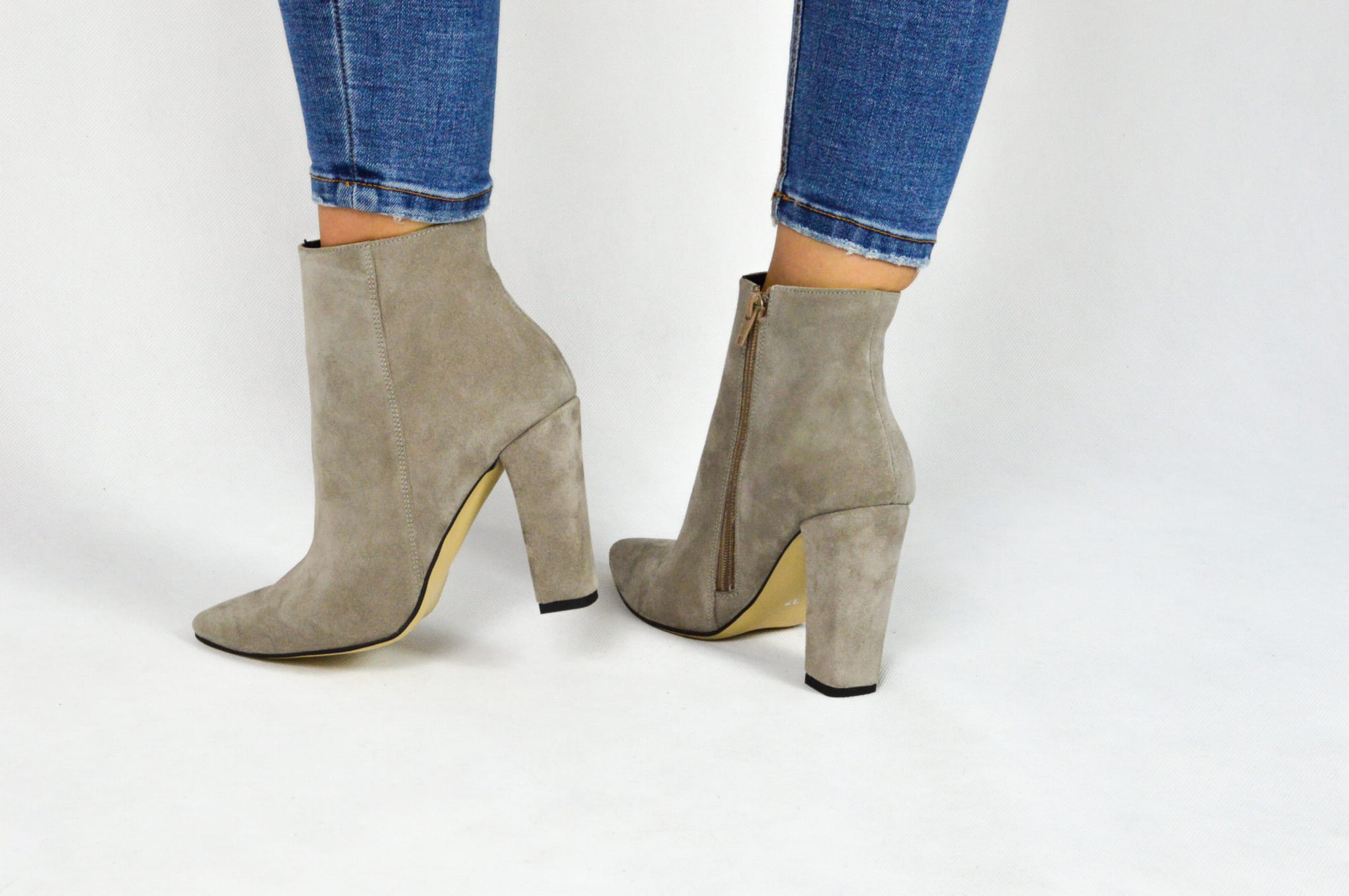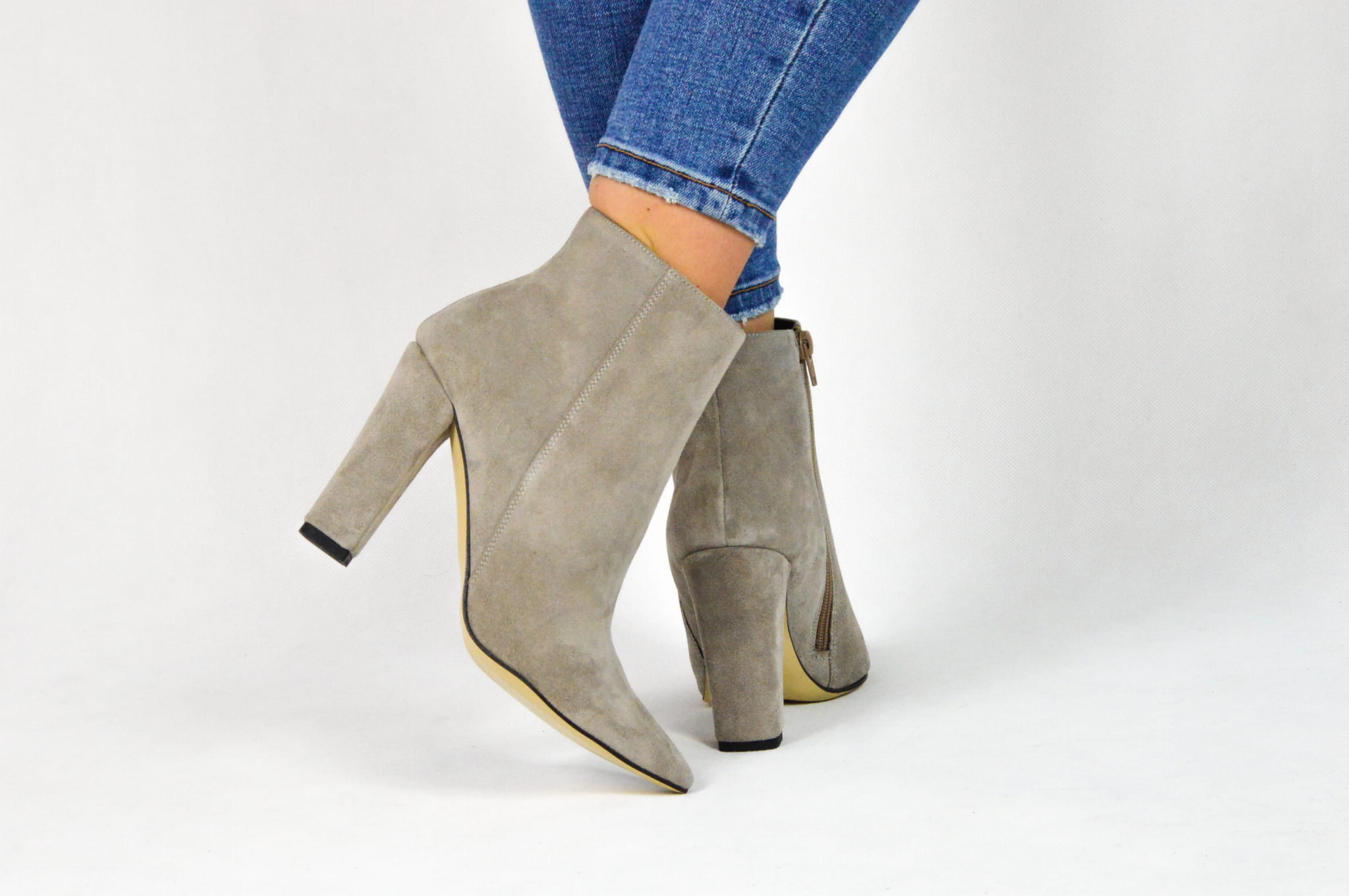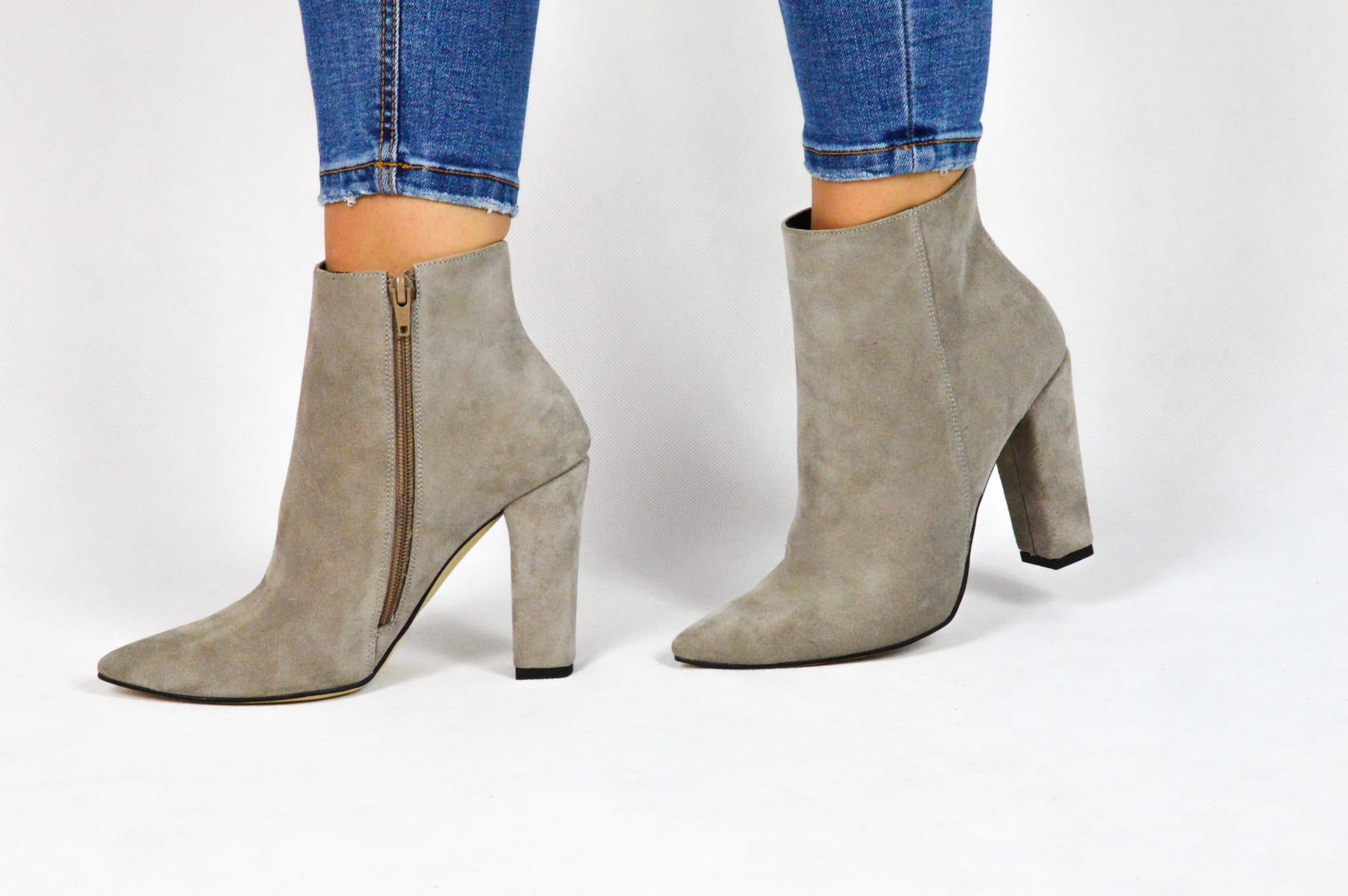 Cappuccino botki damskie – eleganckie obuwie wykonane z włoskiej skóry naturalnej typu welur. Botki marki MargoShoes zapinane są na zamek błyskawiczny od wewnętrznej strony cholewki. Zastosowany obcas typu słupek o wysokości 10 cm oraz szpiczasty kształt noska dodają im szyku i komfortu noszenia. Wysokość cholewki wynosząca 10 cm sprawia, że będą idealnym dopełnieniem do wszystkich jesiennych i zimowych stylizacji. Produkt w 100% polski, wykonany z najwyższej jakości materiałów.