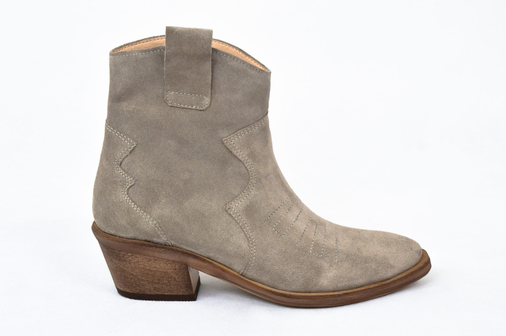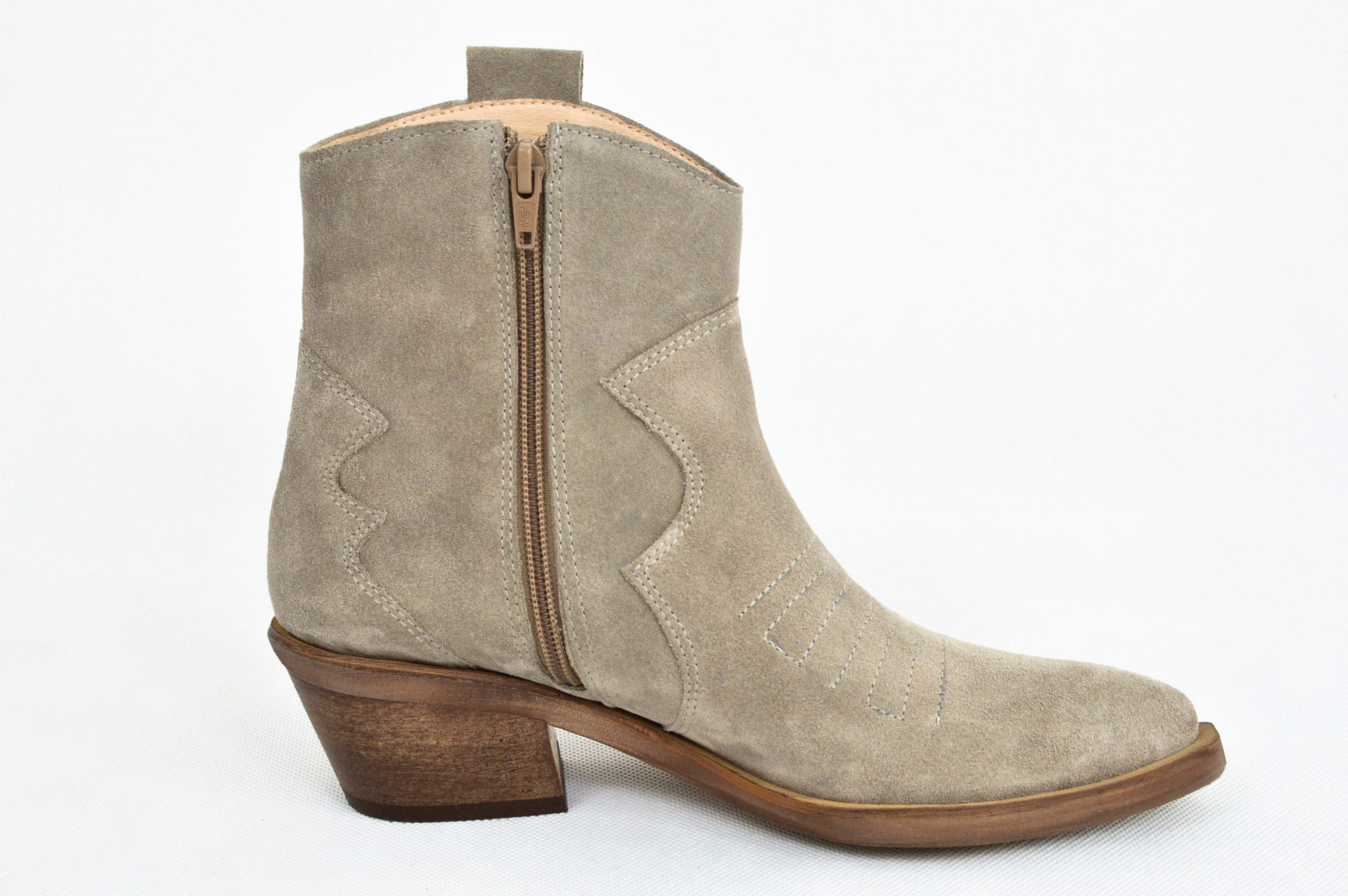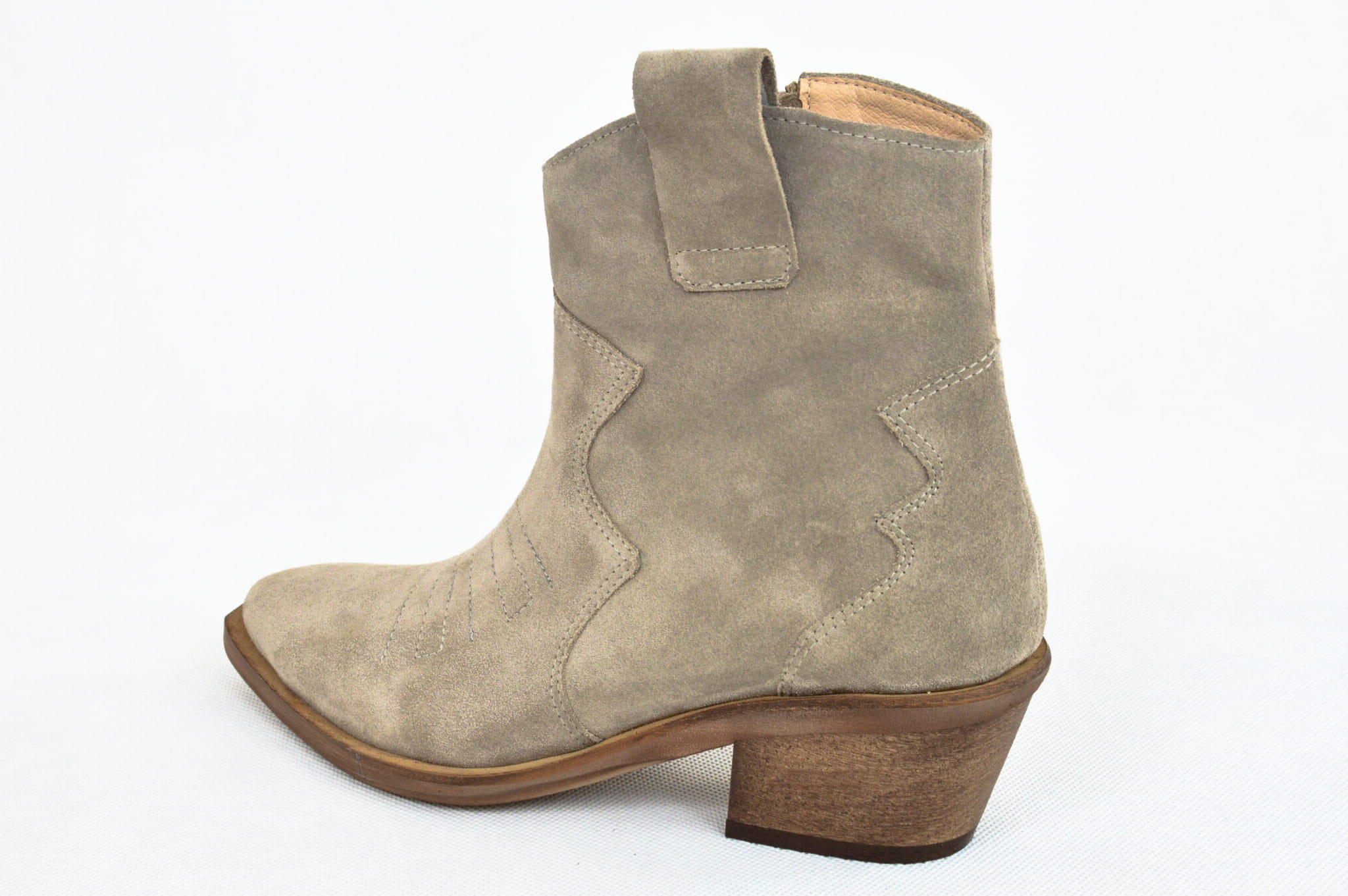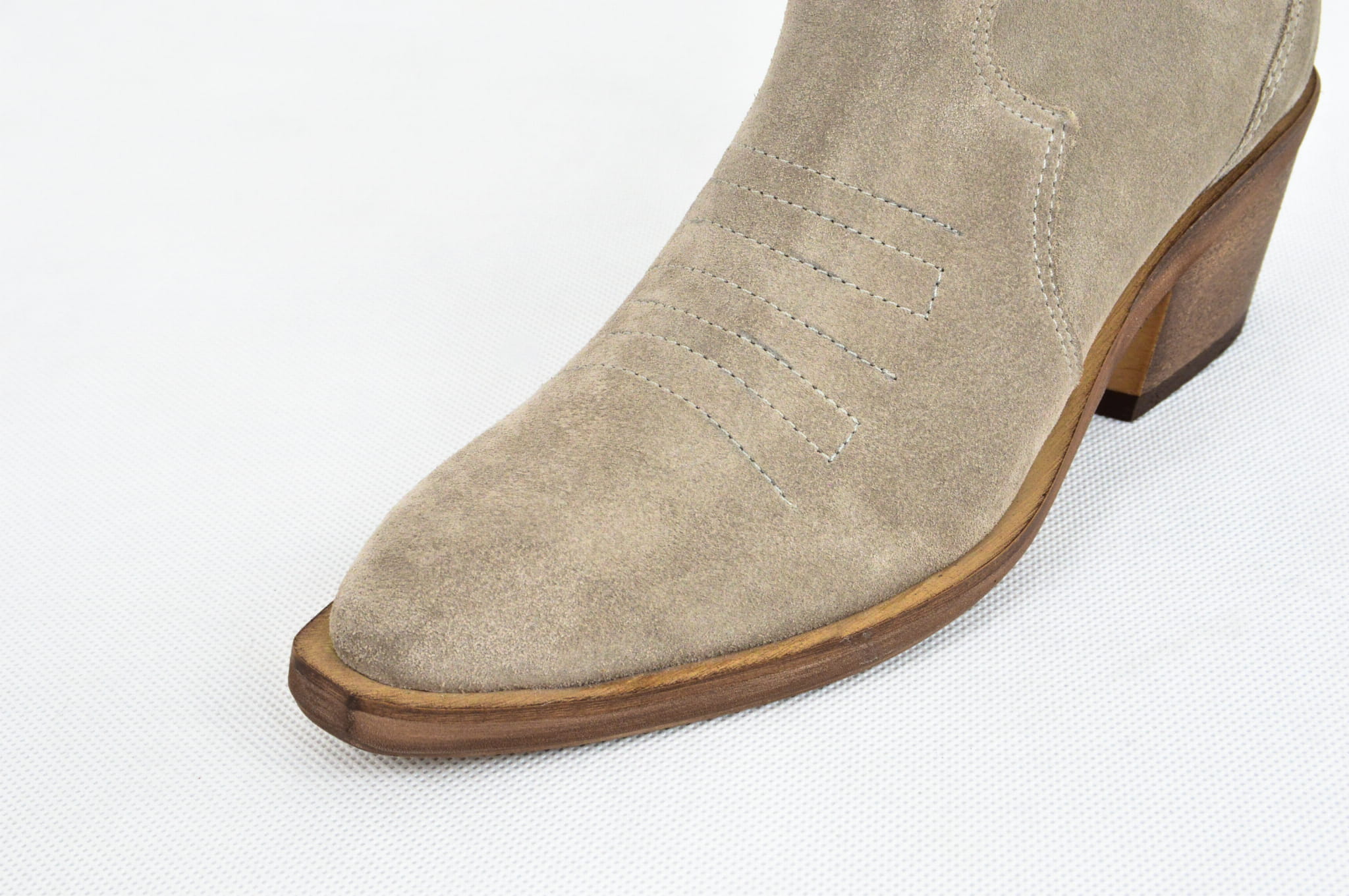MargoShoes cappuccino jasne beżowe kowbojki kowboje botki na niskim obcasie ostry czubek skóra naturalna zamsz skórzane kowbojki