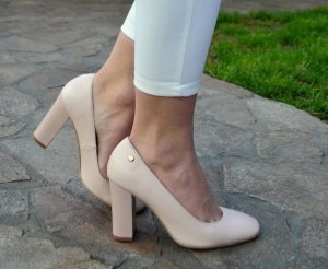 Czółenka na słupku w beżowym kolorze – must have każdej kobiety