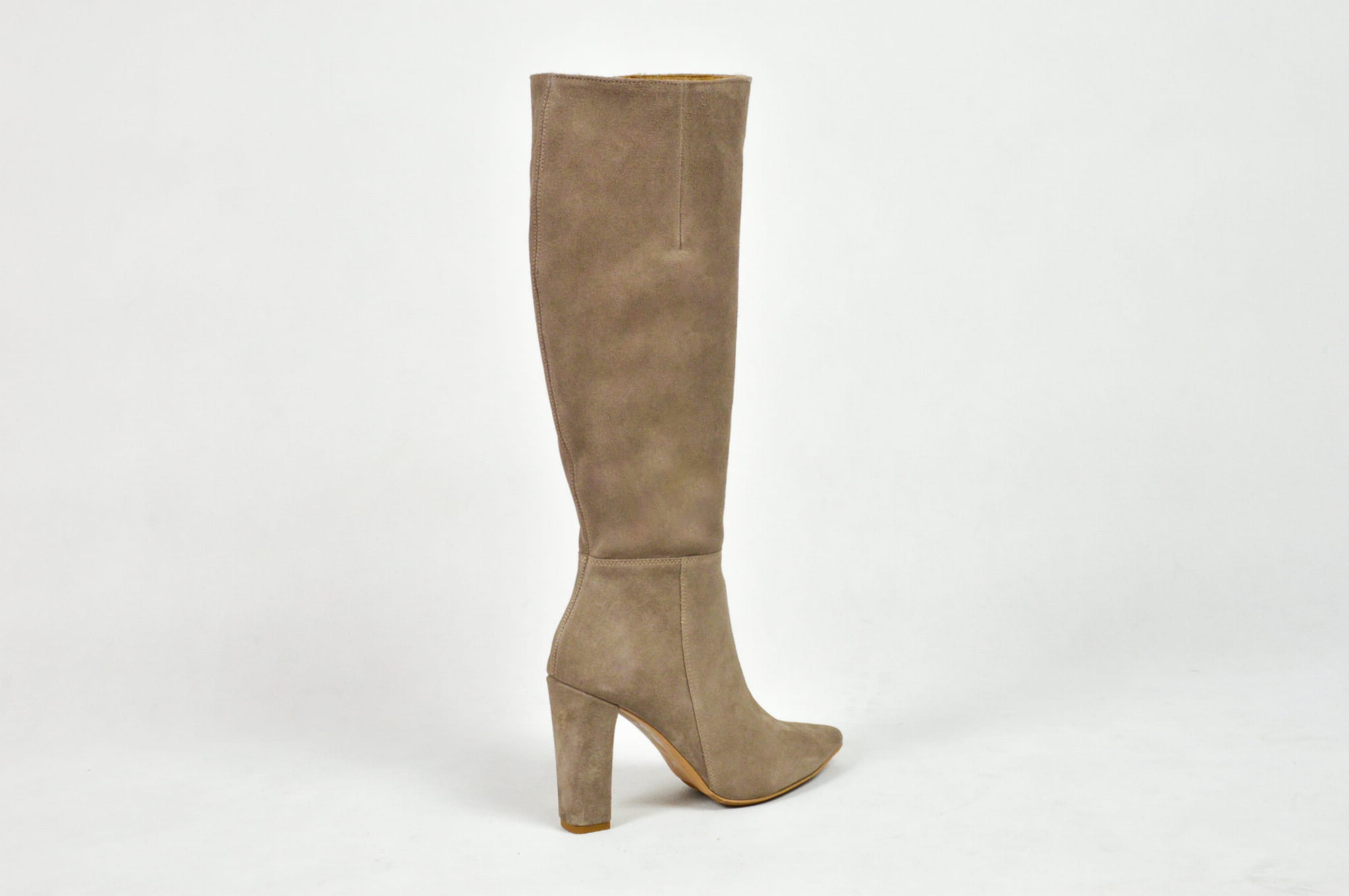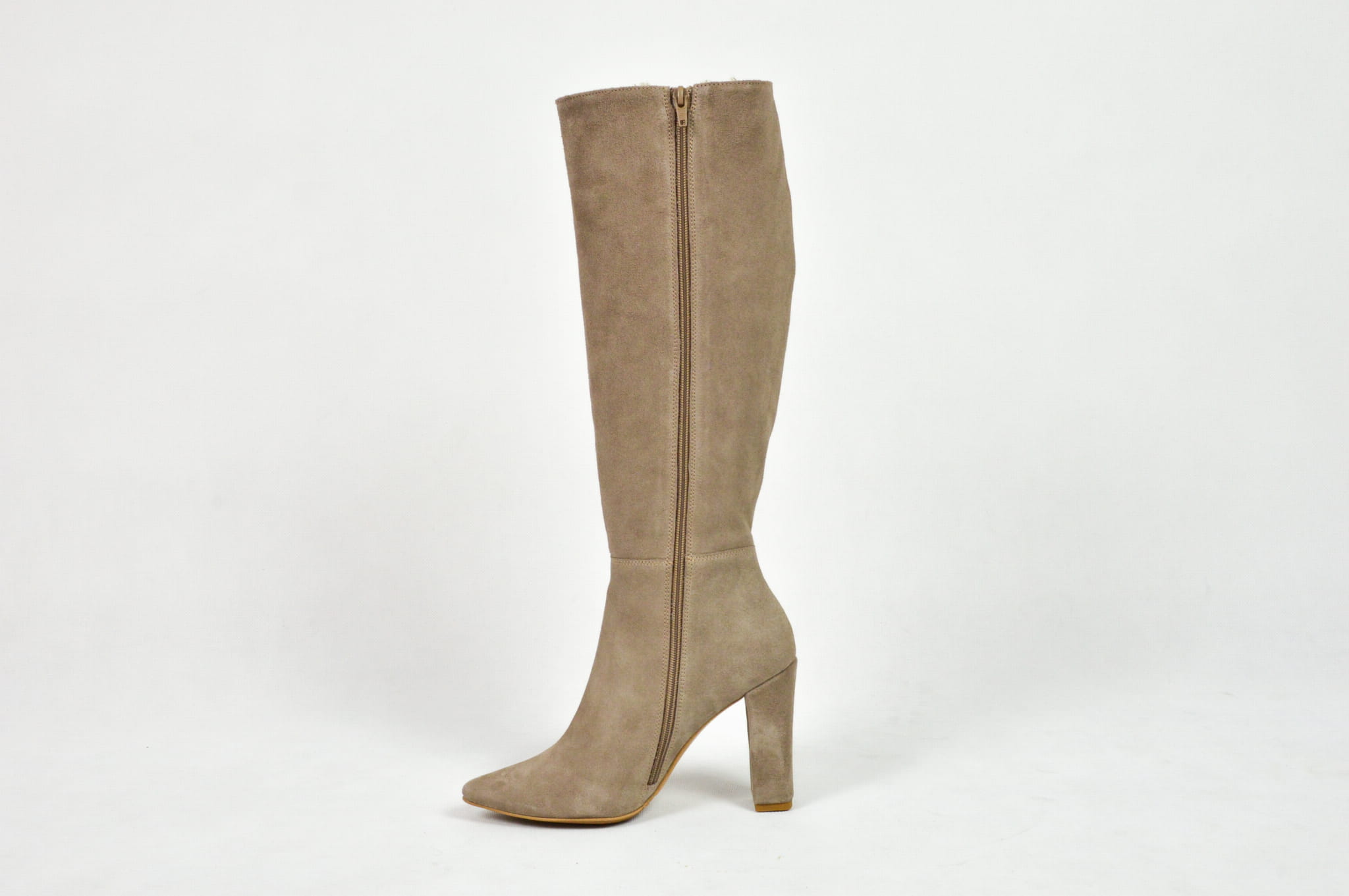 Kozaki damskie w kolorze cappuccino, polskiej marki MargoShoes, to połączenie elegancji i wygody. Wykonane z wysokiej jakości włoskiej skóry naturalnej welurowej, zapinane na zamek po wewnętrznej stronie cholewki. Buty wyposażone w stabilny obcas typu słupek o wysokości 10 cm oraz ostry nos, co dodaje im stylowego charakteru. Doskonałe dopełnienie jesiennych i zimowych stylizacji, zapewniające komfort przez cały dzień.