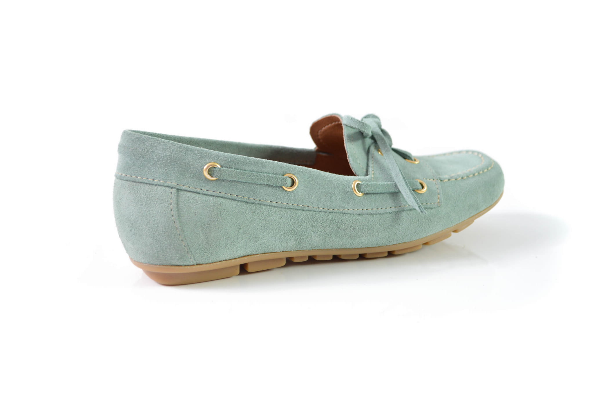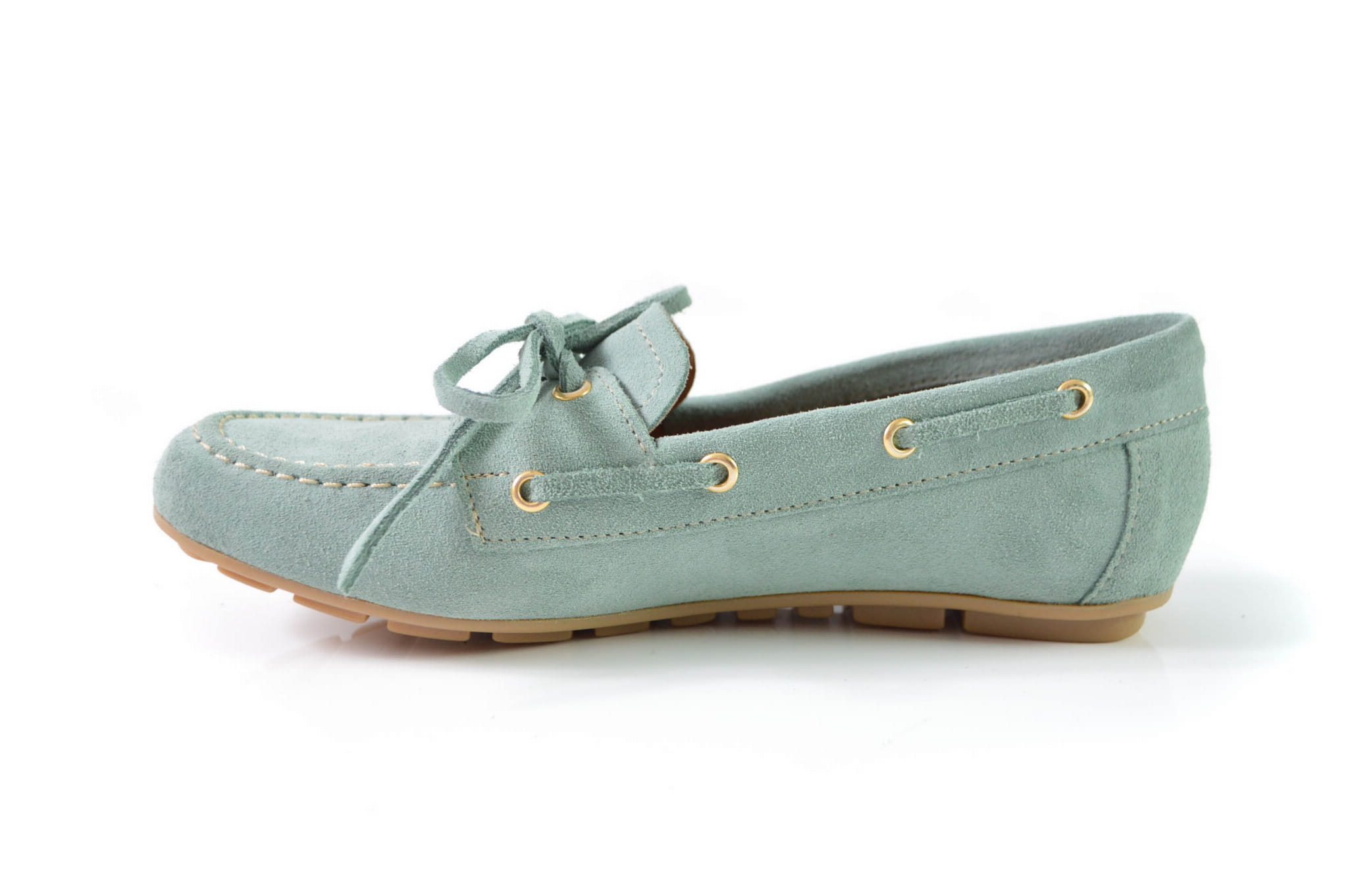 Te miętowe mokasyny to połączenie codziennego komfortu z delikatną, kobiecą elegancją. Wykonane z wysokiej jakości naturalnej skóry zamszowej, zachwycają wyjątkową miękkością i starannym wykończeniem. Elastyczna podeszwa gwarantuje wygodę na każdym kroku, a ozdobne wiązanie i subtelne złote oczka dodają całości lekkości i świeżego charakteru.