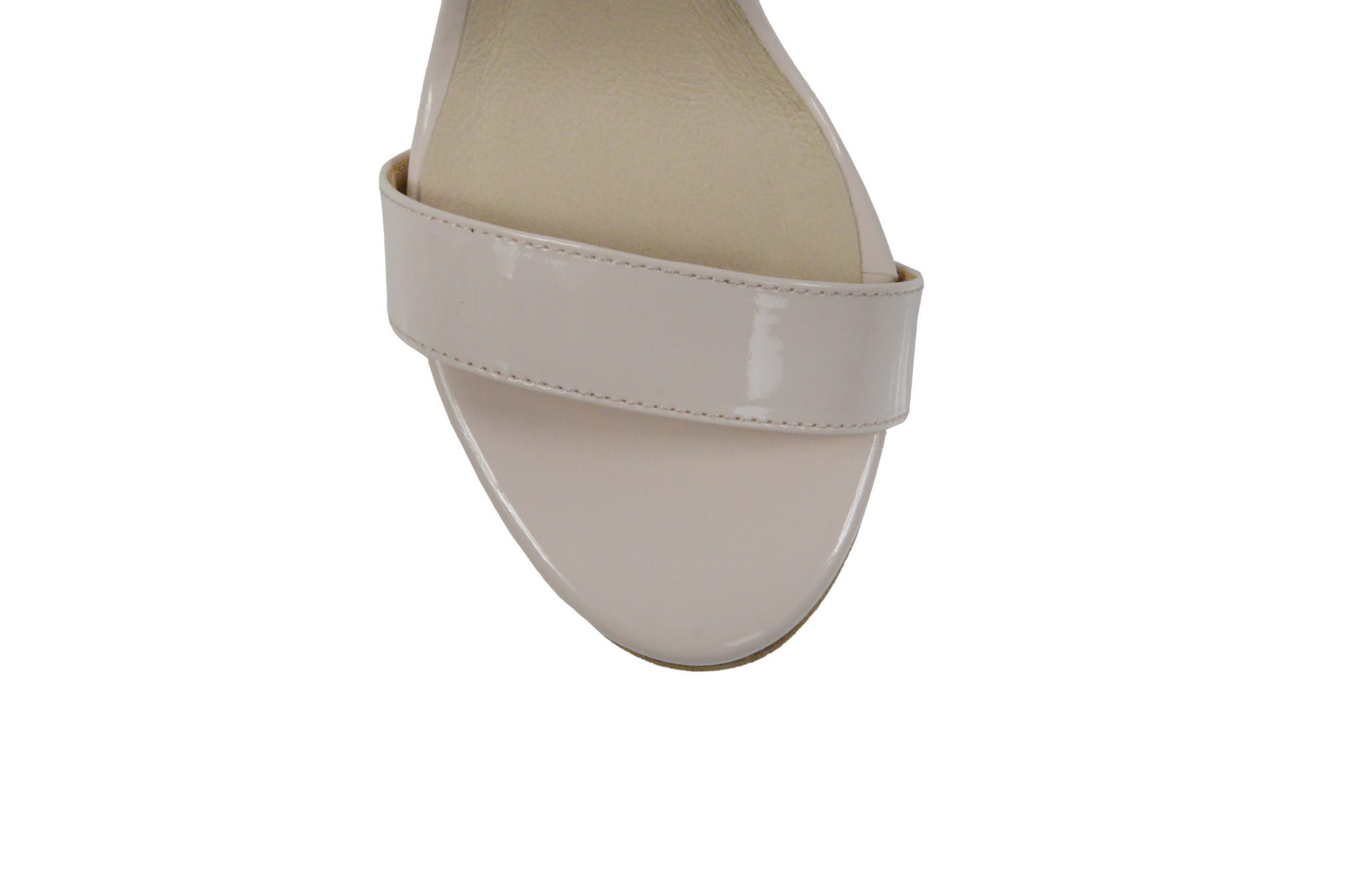 Pudrowe lakierowane sandałki szpilki na obcasie 10 cm podwyższenie platforma skóra naturalna MargoShoes