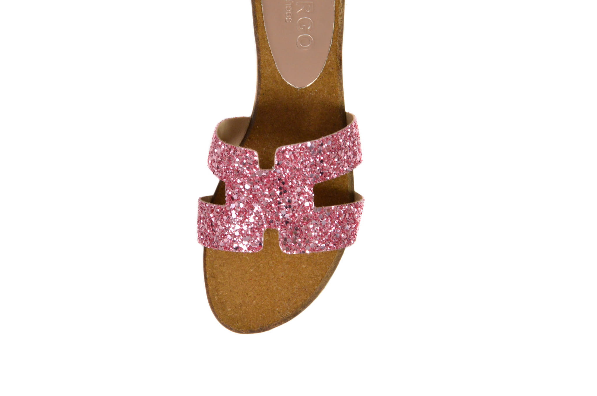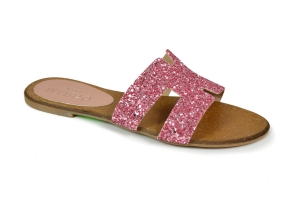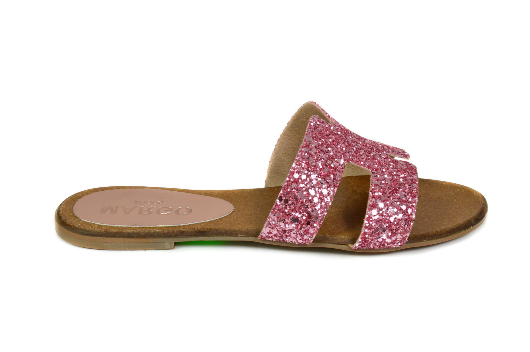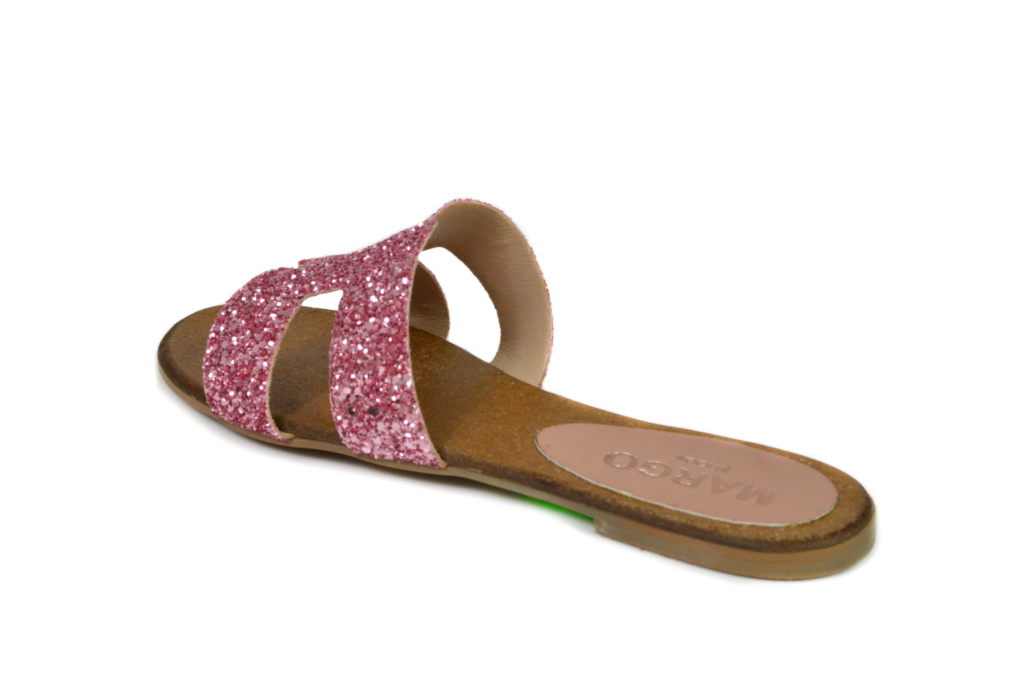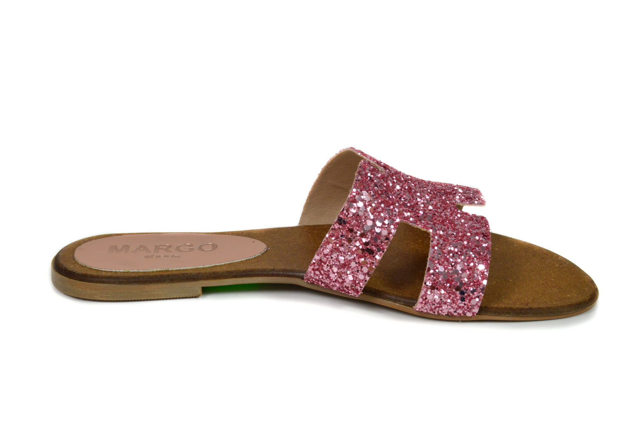 Różowe klapki damskie, wykonane ze skóry naturalnej. Buty polskiej produkcji marki MargoShoes. W klapkach zastosowano płaską podeszwę.