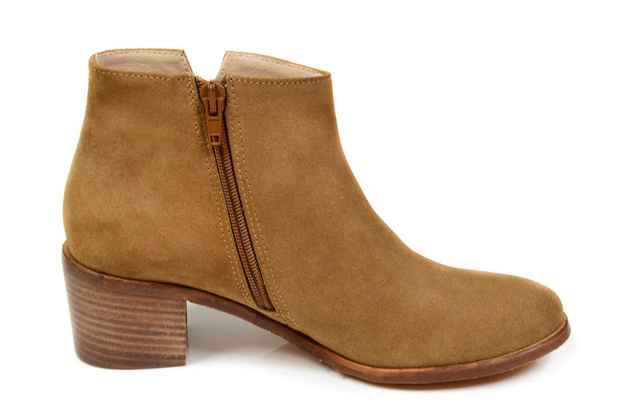 Rude botki na niskim obcasie ze skóry naturalnej zamszowej